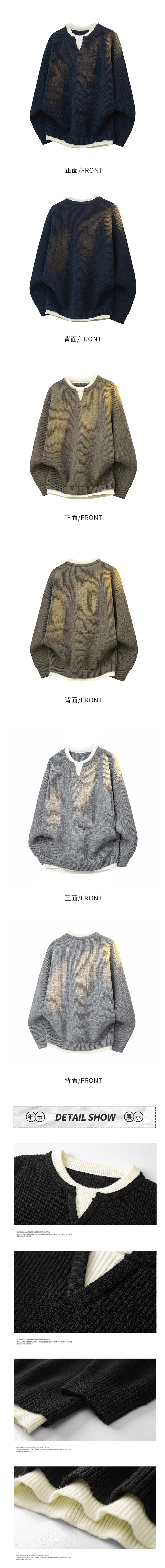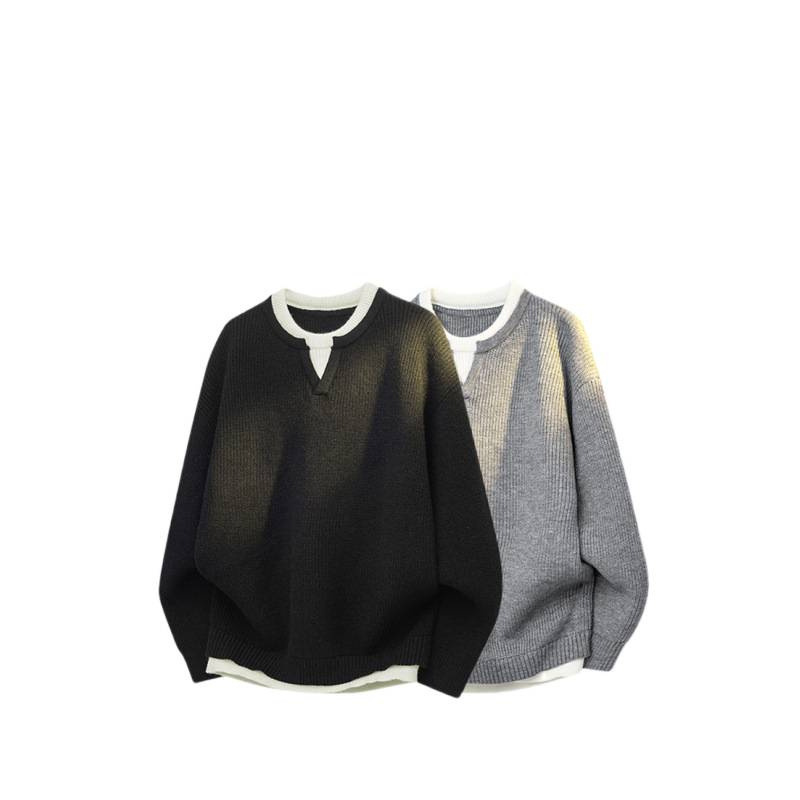 真维斯假两件同款针织毛衣男慵懒风套头线衣外套宽松内搭打底精纺
