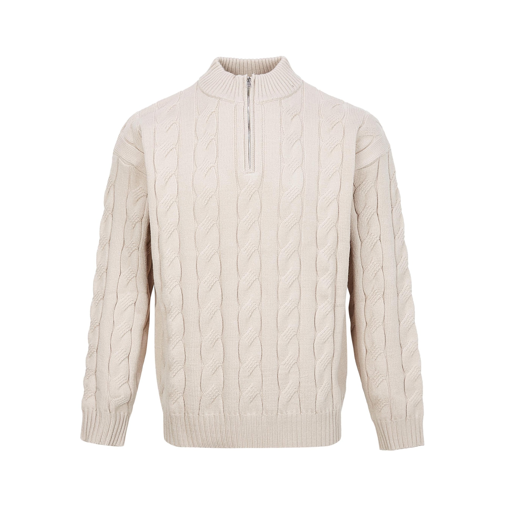 MADEEXTREME 松弛感老钱麻花纹粗针英伦半拉链重磅针织衫毛衣男女