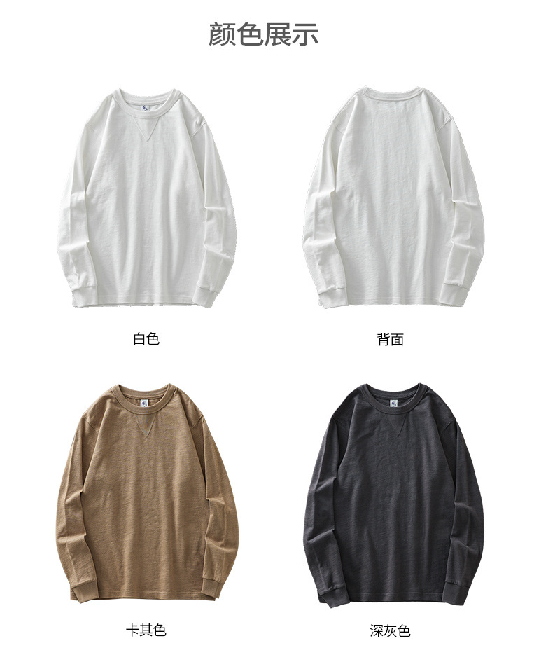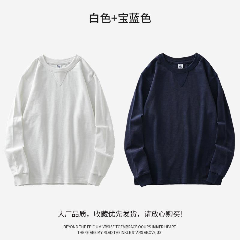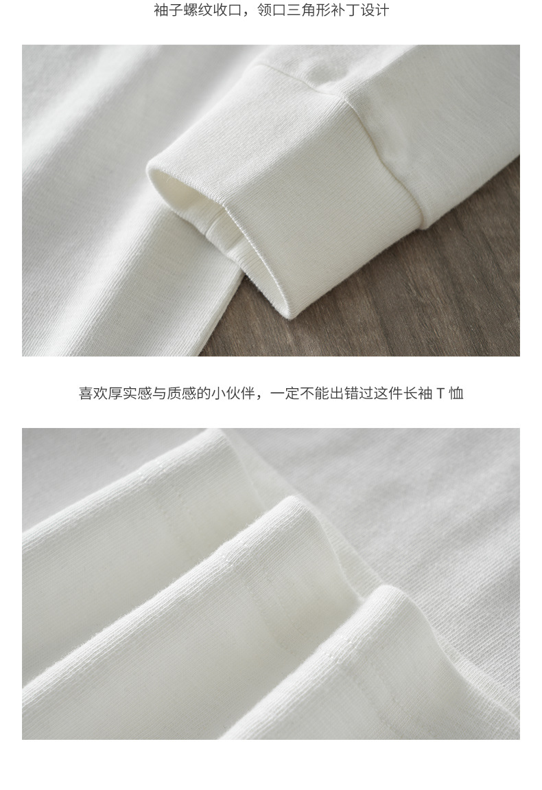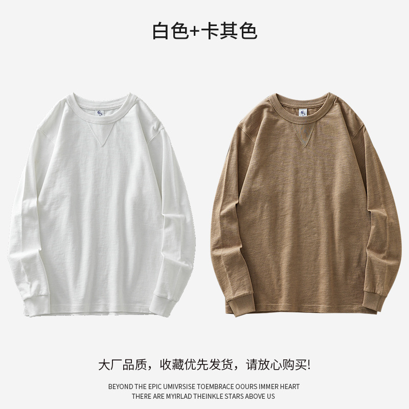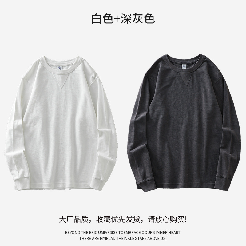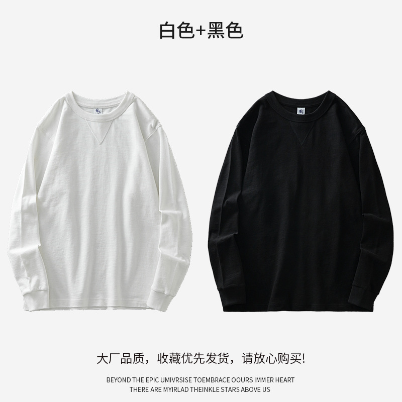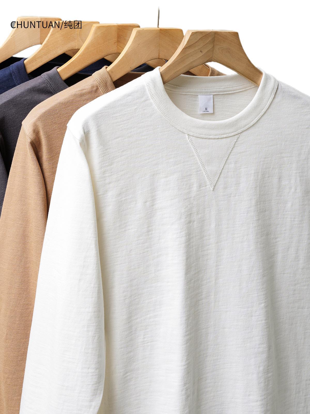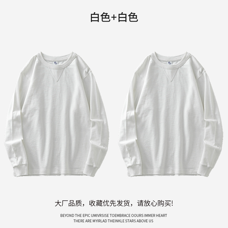 重磅棉长袖恤男春秋宽松厚实圆领卫衣三本针纯白色打底衫