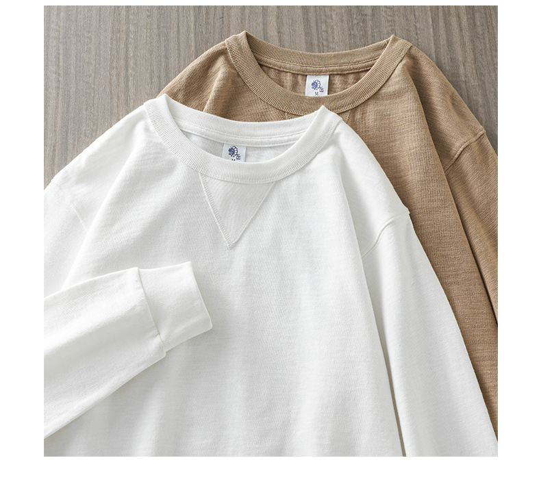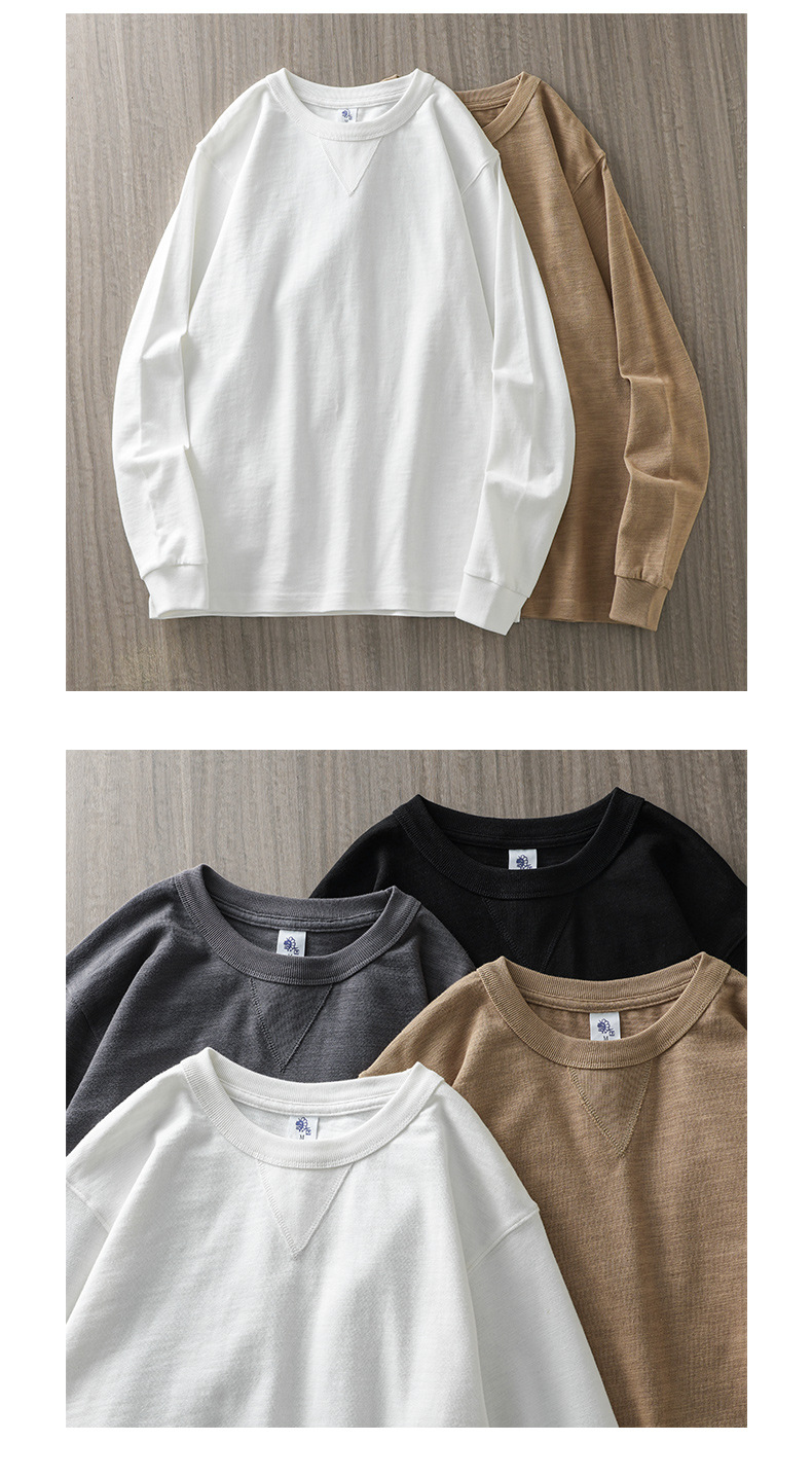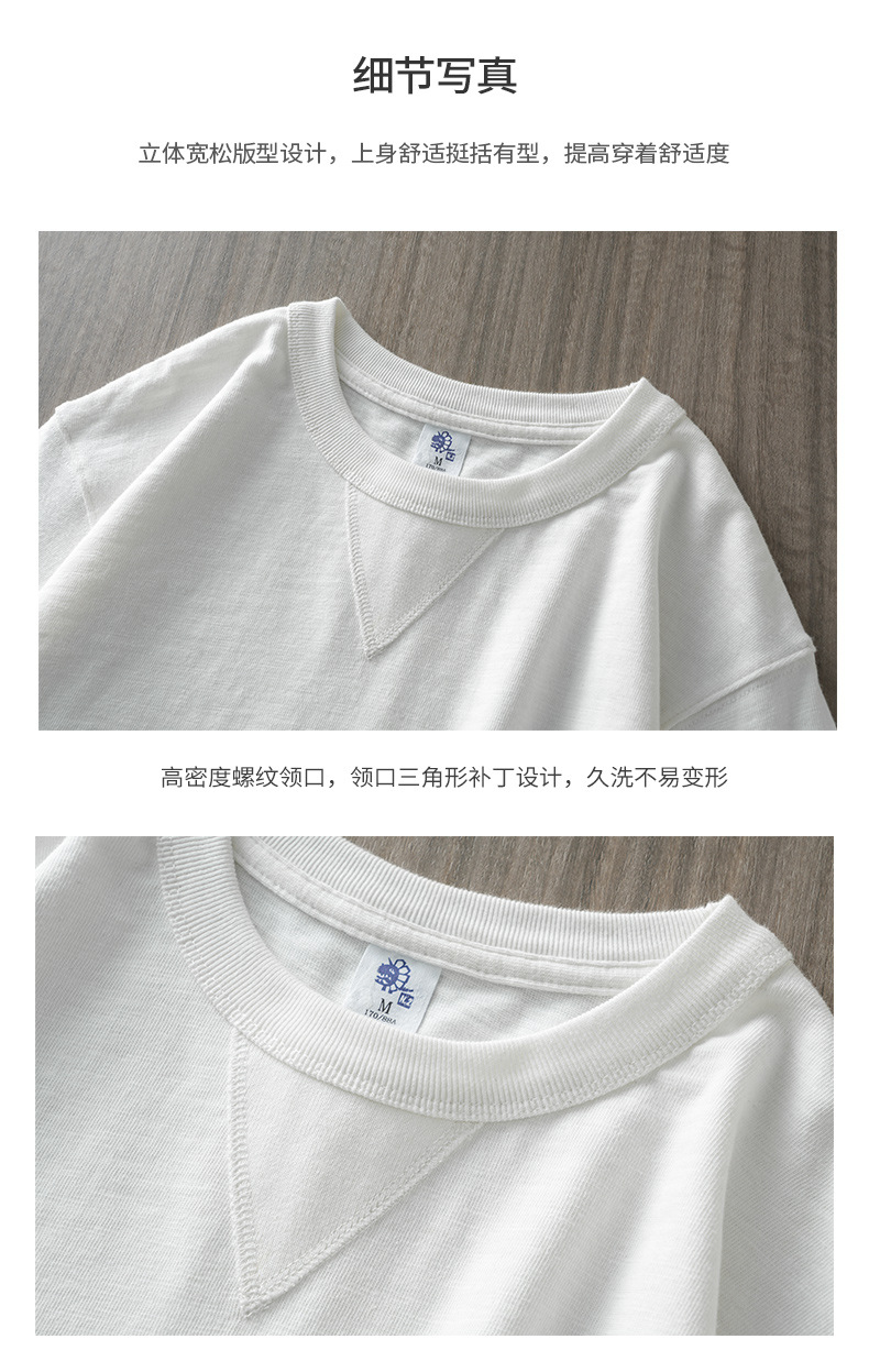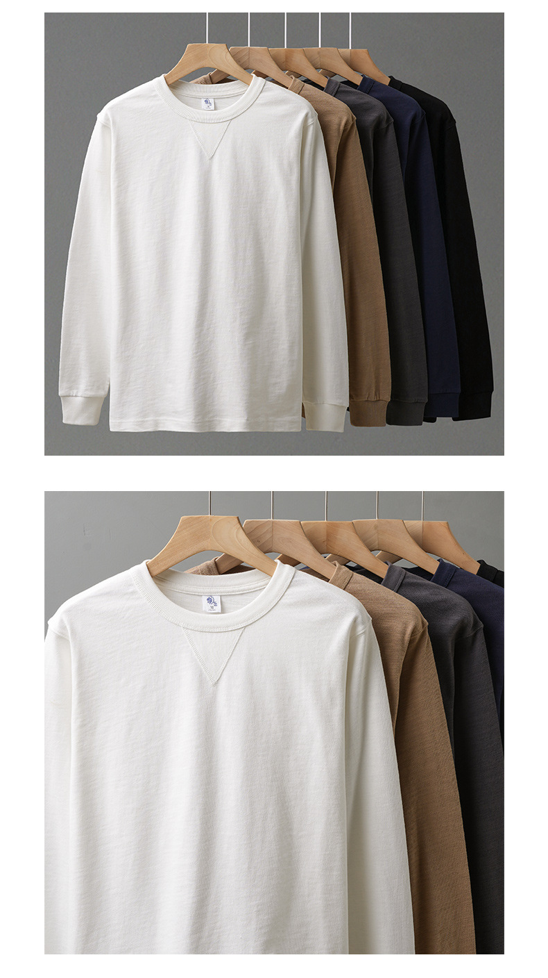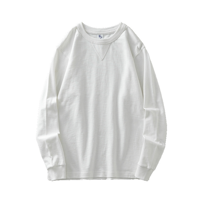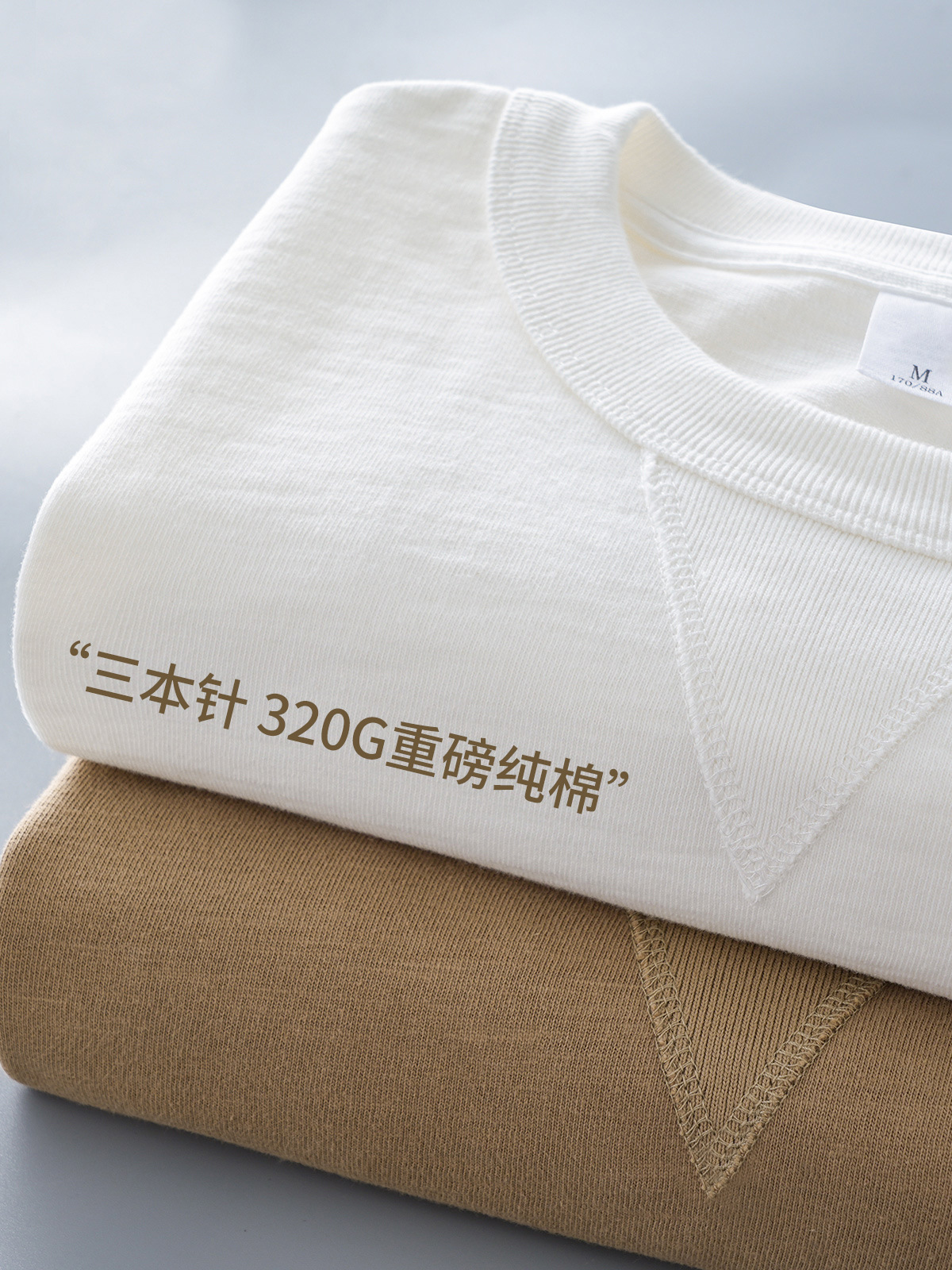 重磅棉长袖恤男春秋宽松厚实圆领卫衣三本针纯白色打底衫