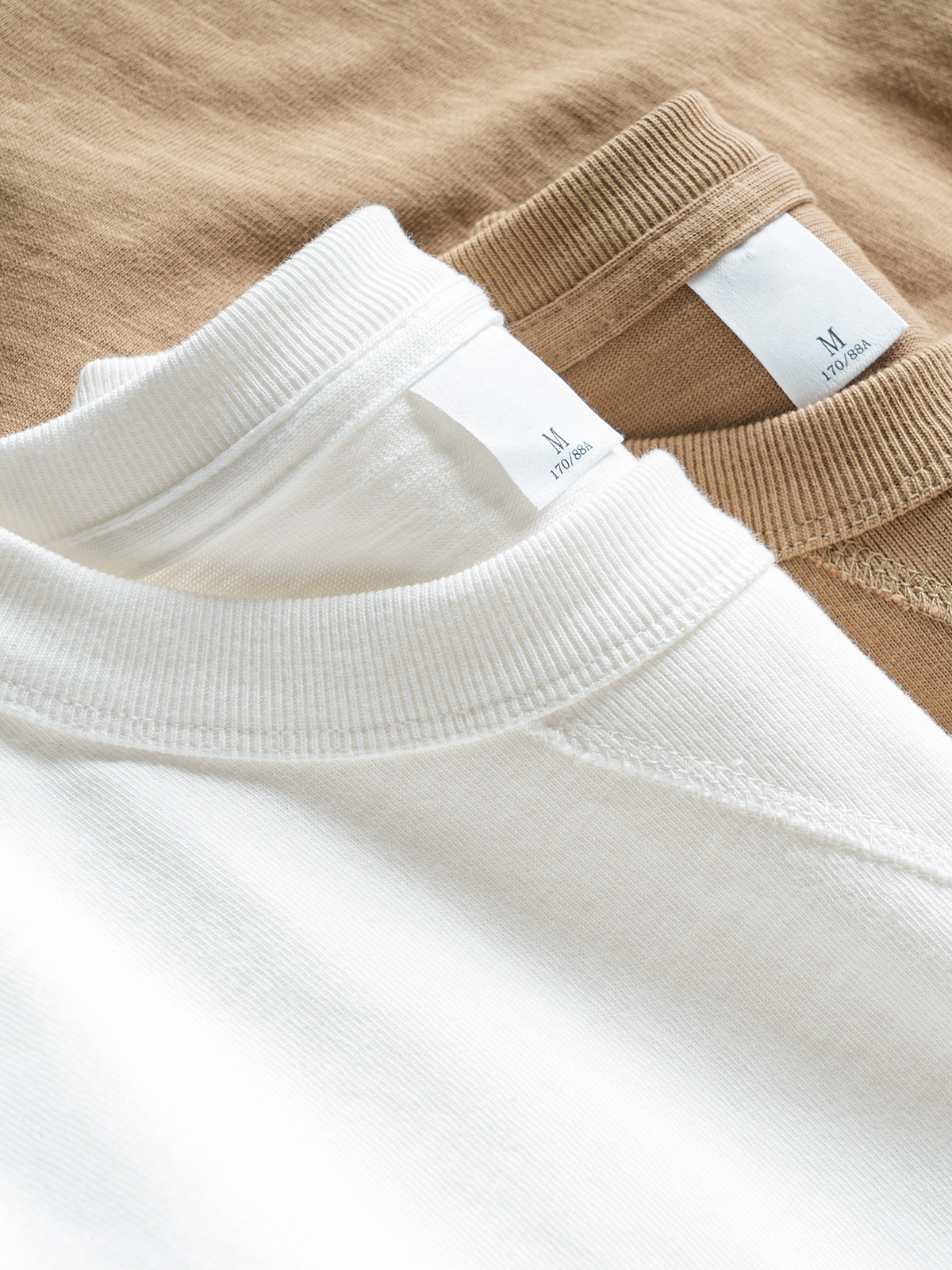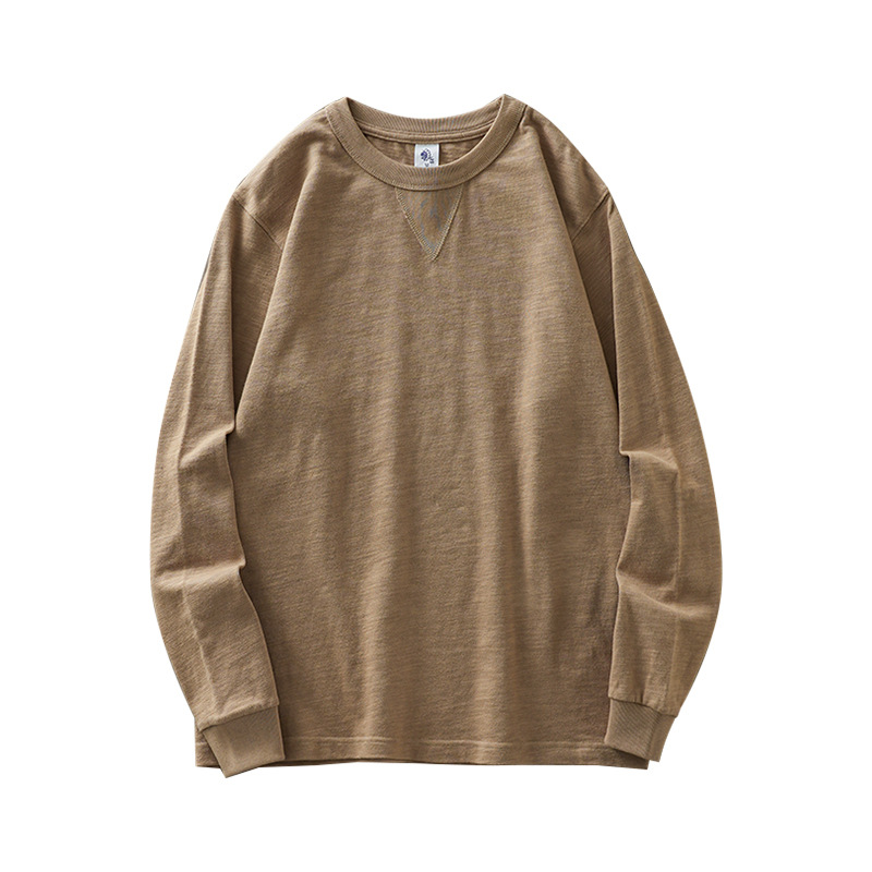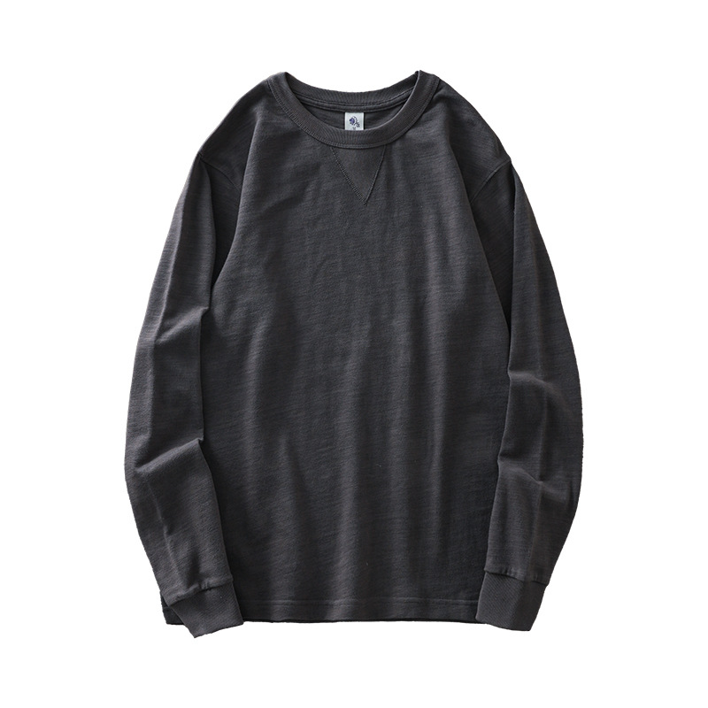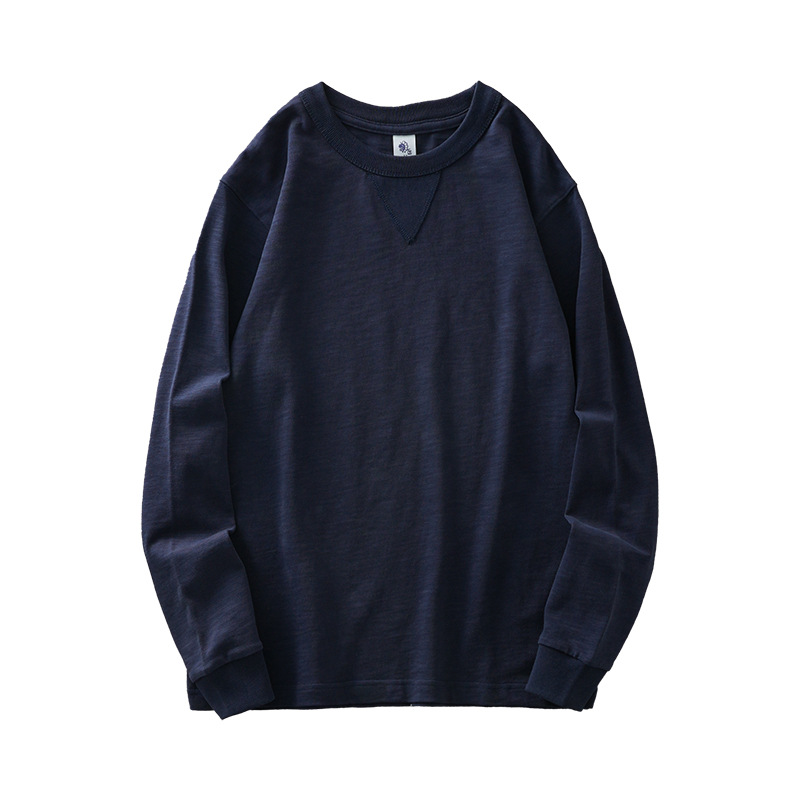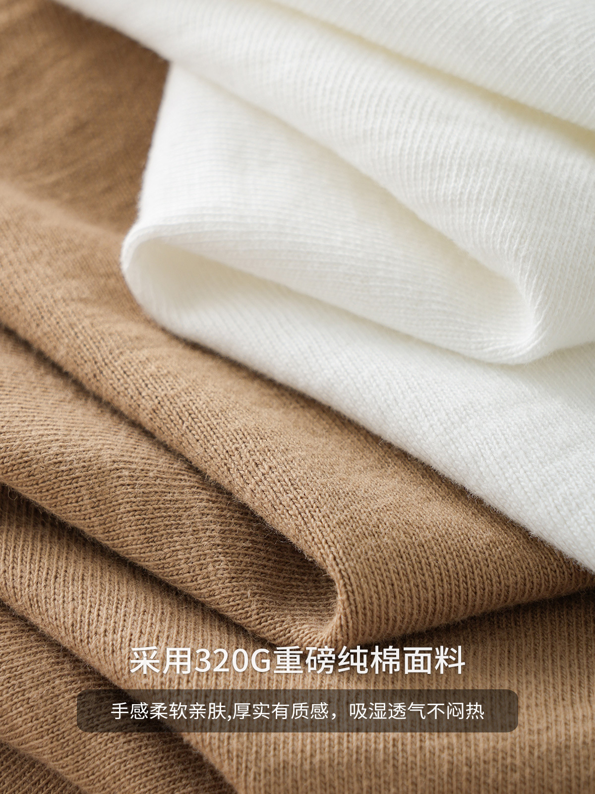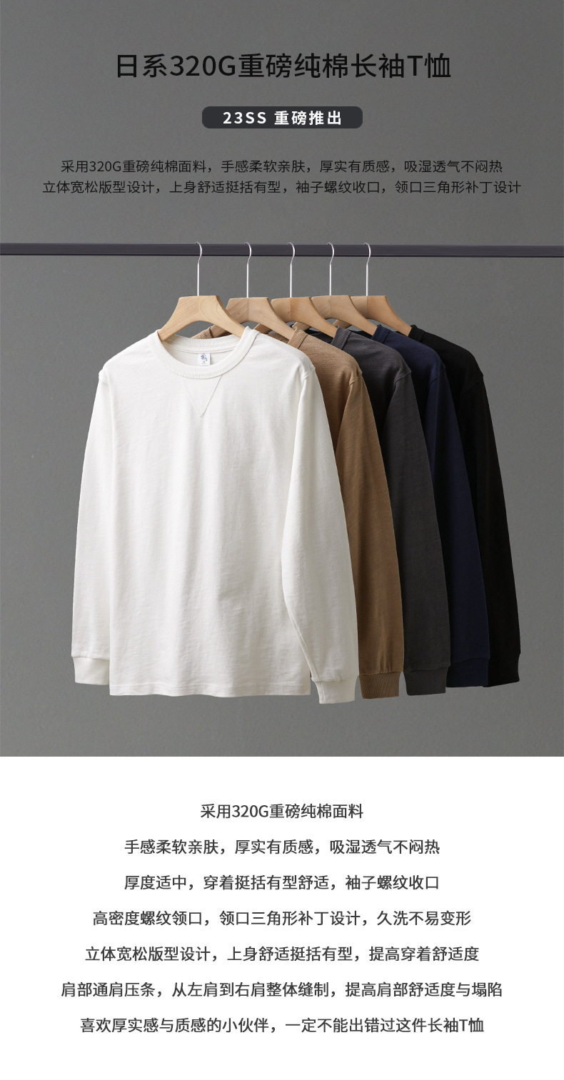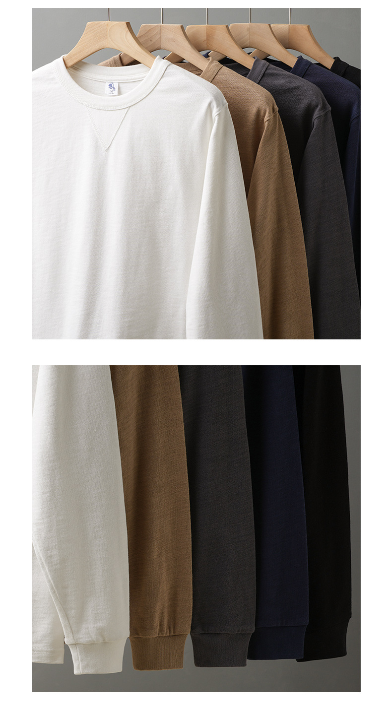 重磅棉长袖恤男春秋宽松厚实圆领卫衣三本针纯白色打底衫