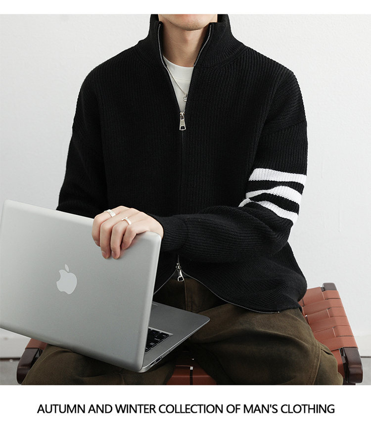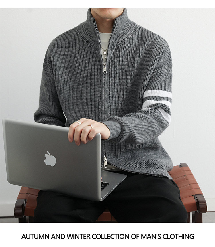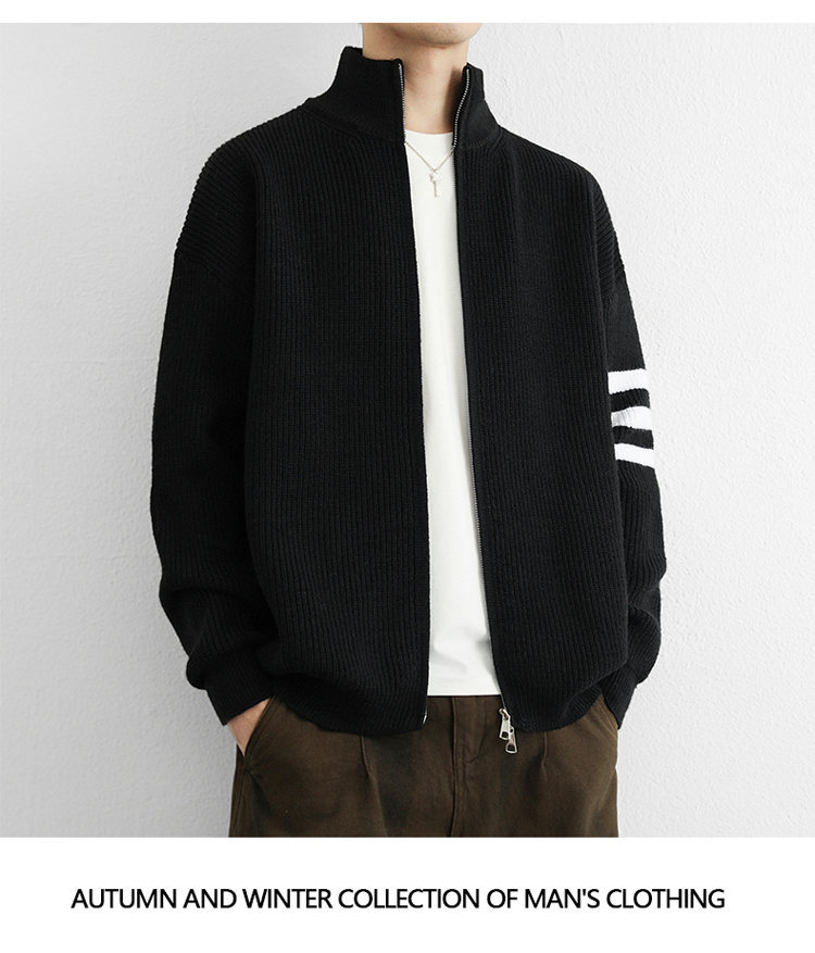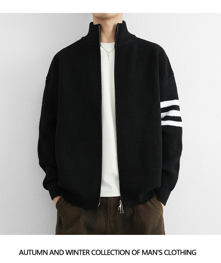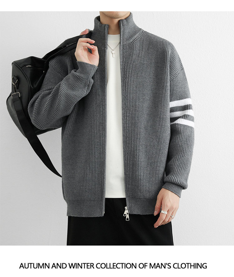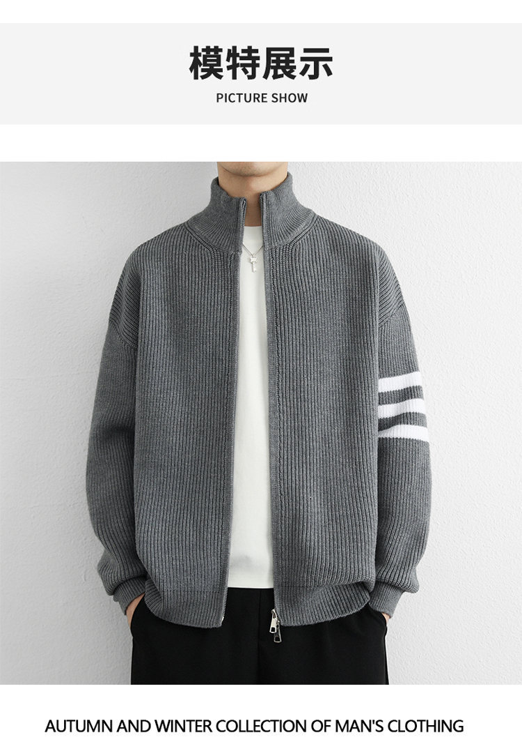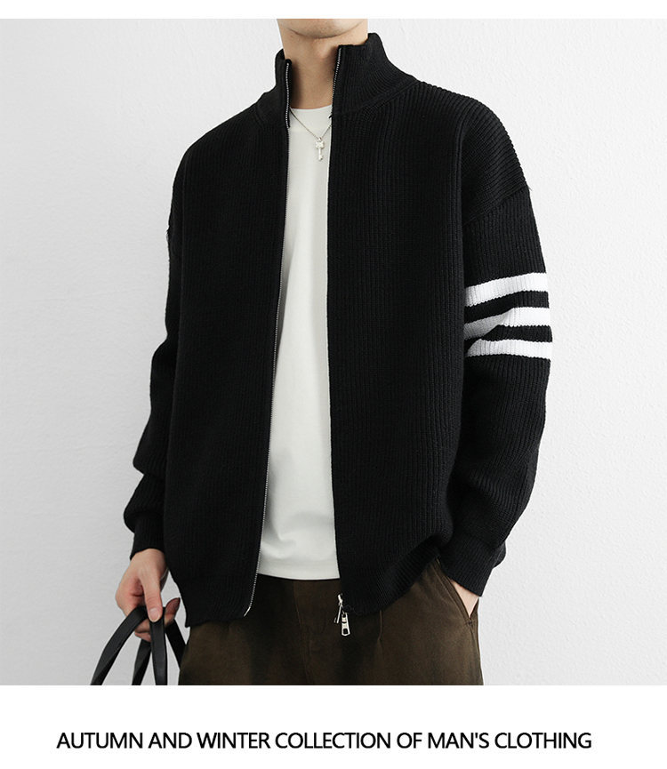 三杆针织衫毛衣男开衫外套夹克秋冬宽松慵懒新款爆款外贸跨境批发