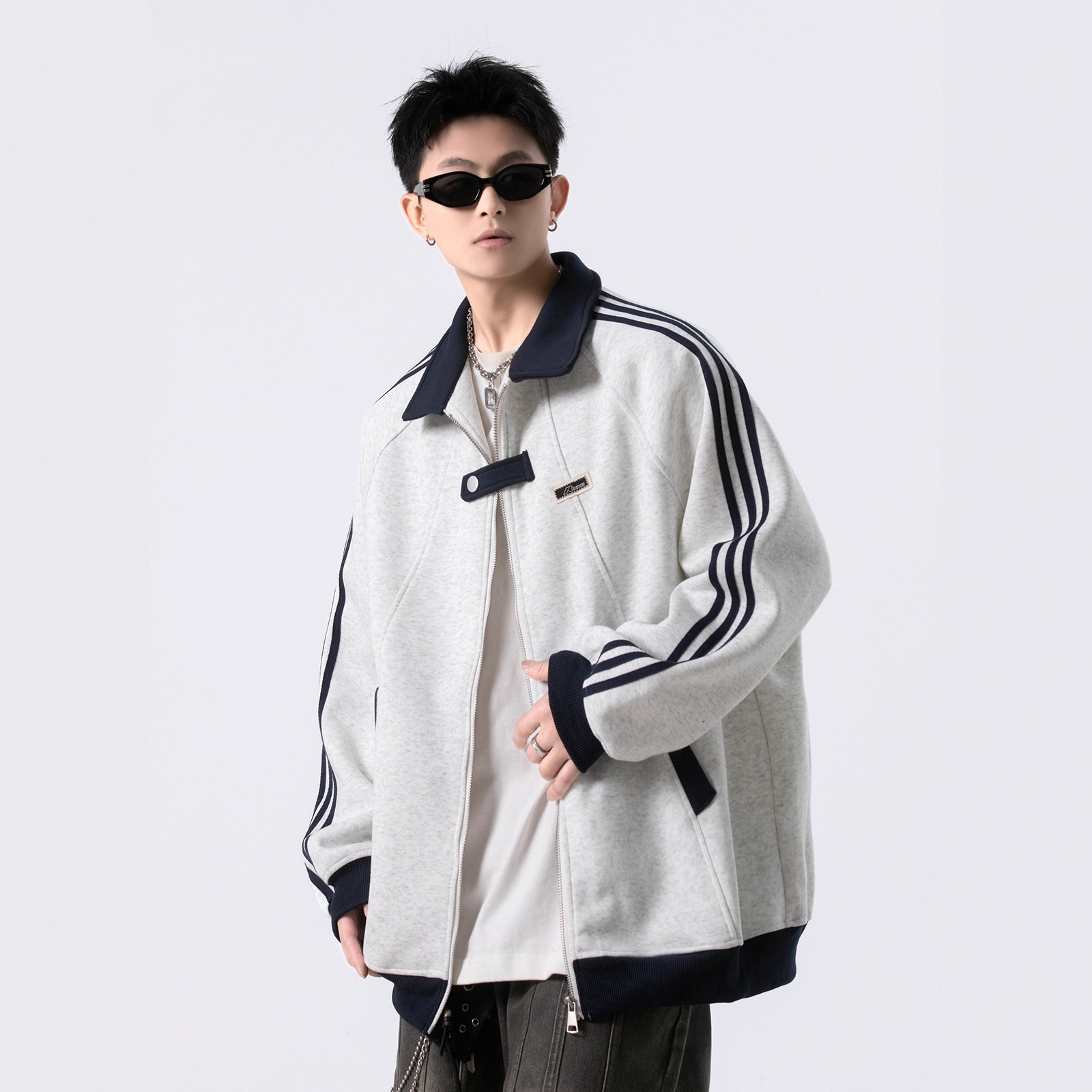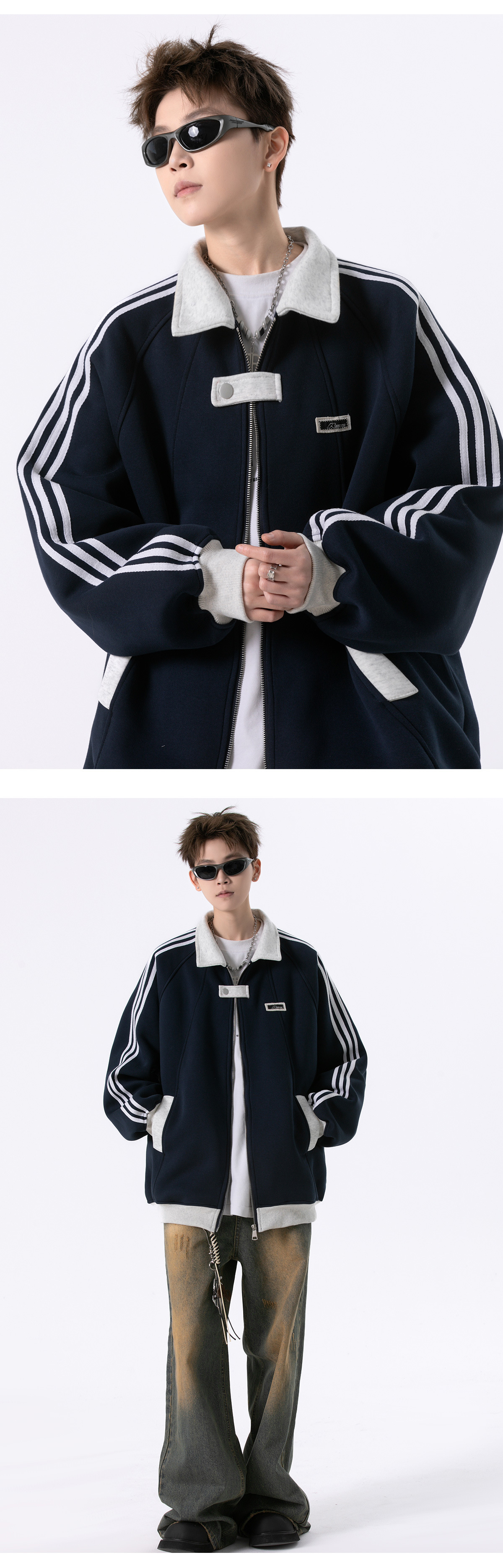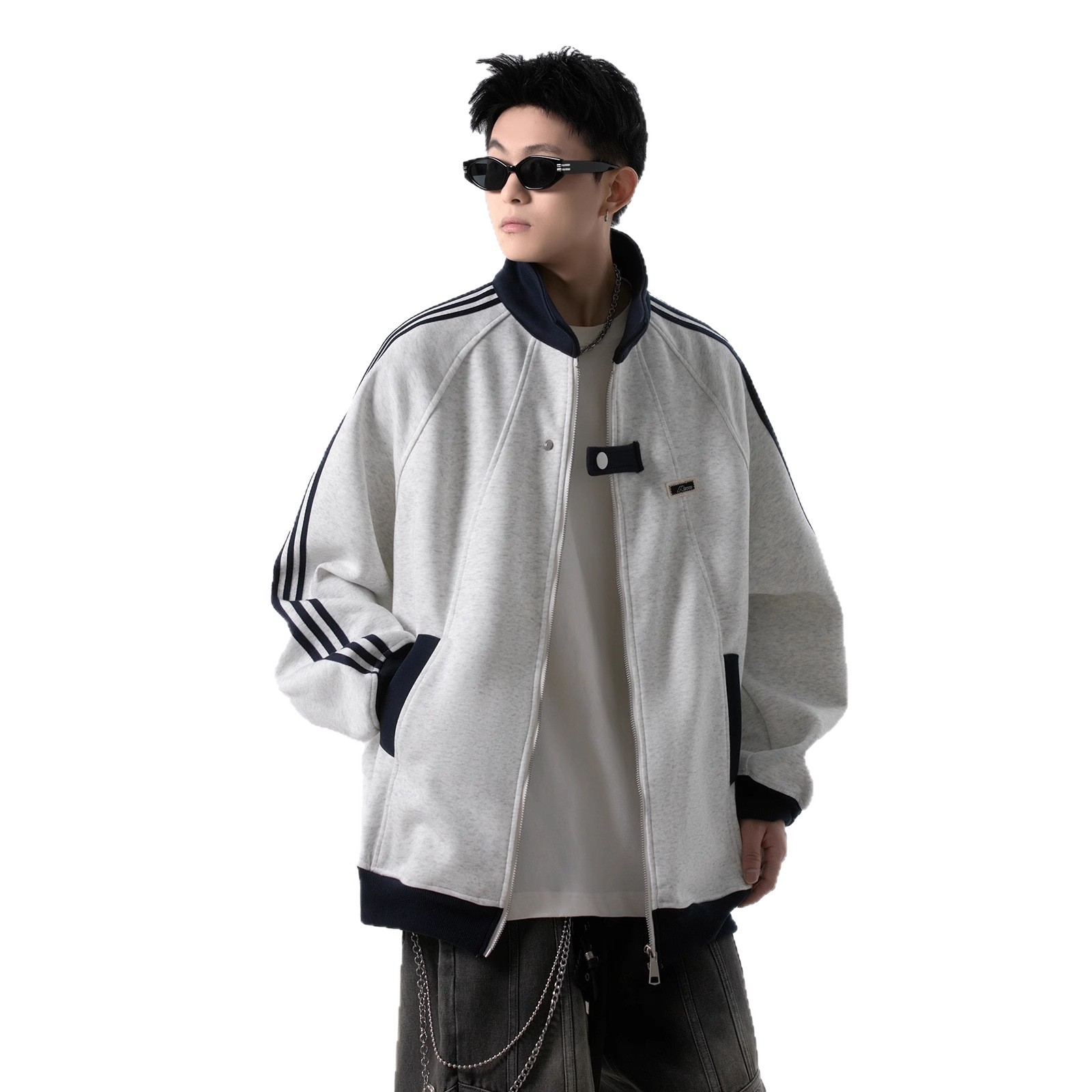 美式三条杠棒球服男女秋冬季重磅潮牌条纹运动夹克青少年拼接外套