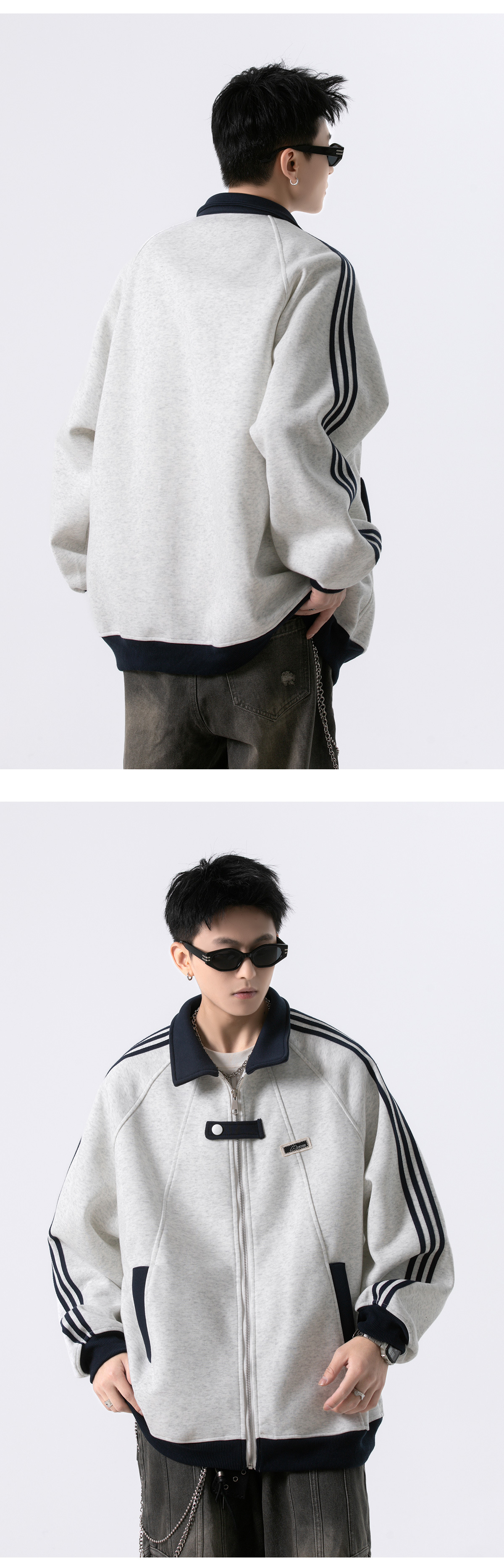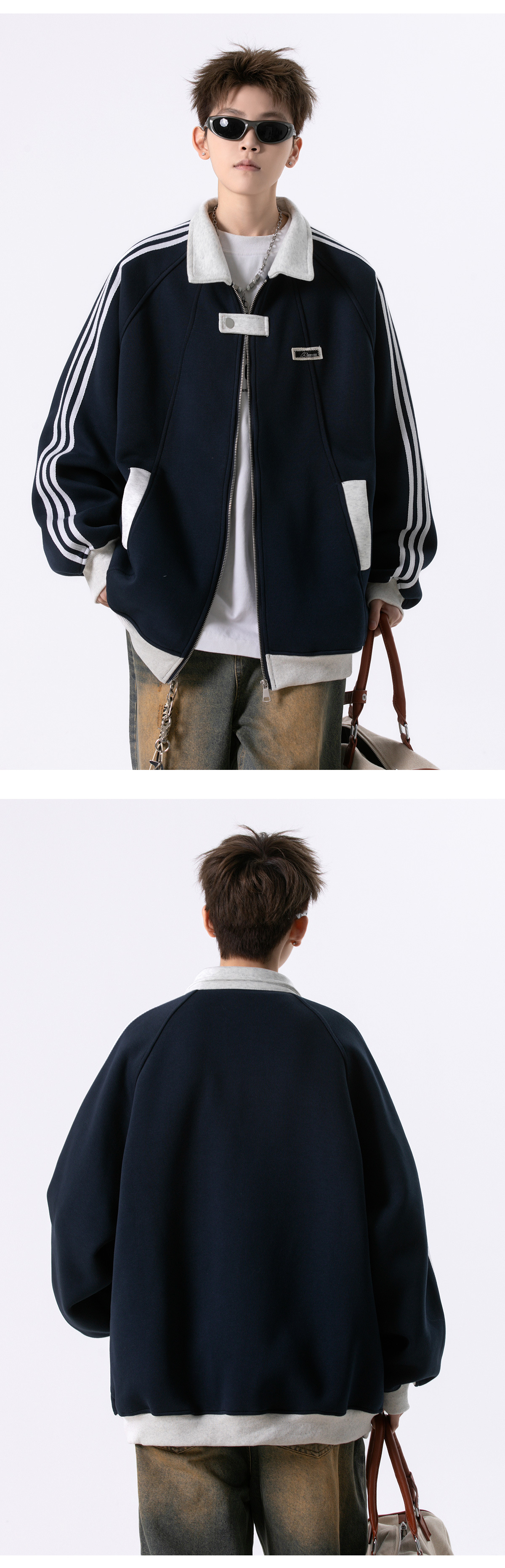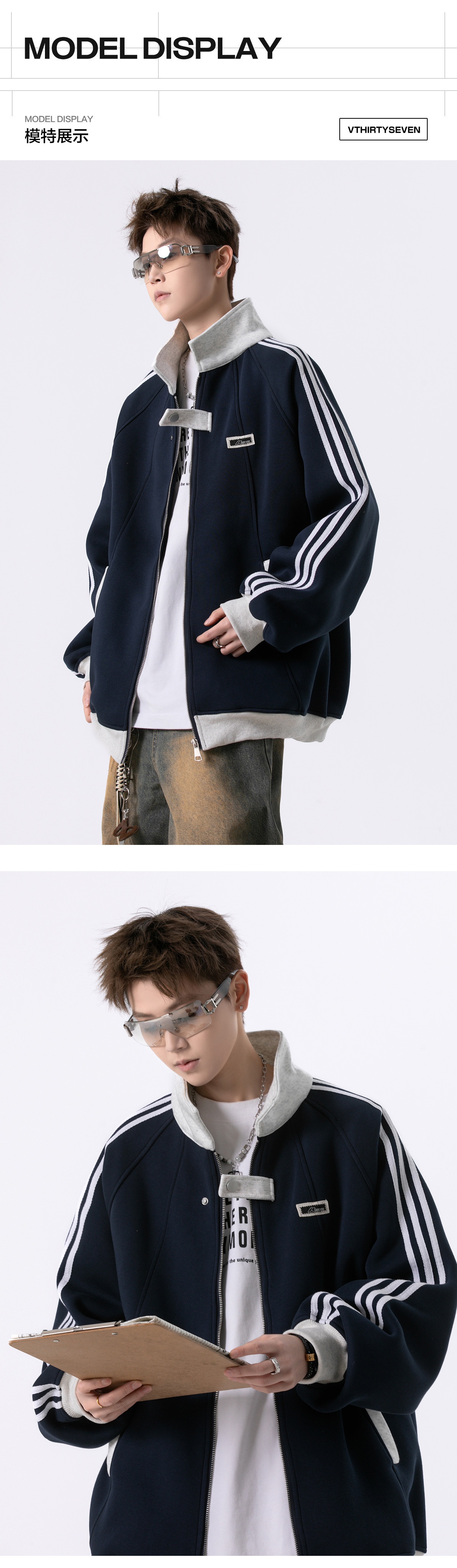 美式三条杠棒球服男女秋冬季重磅潮牌条纹运动夹克青少年拼接外套