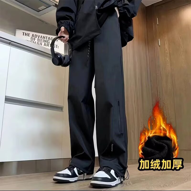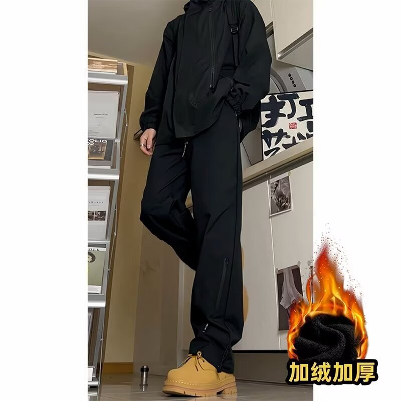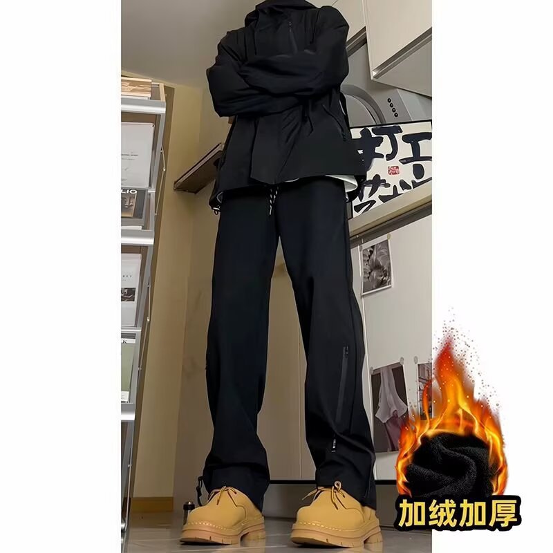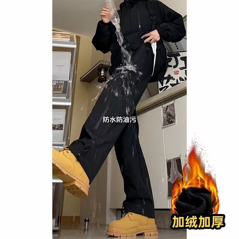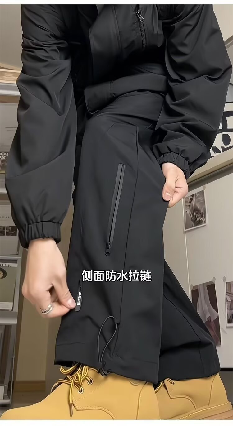 秋冬季防水加绒冲锋裤男潮牌修身阔腿休闲裤户外防风保暖冲锋裤男
