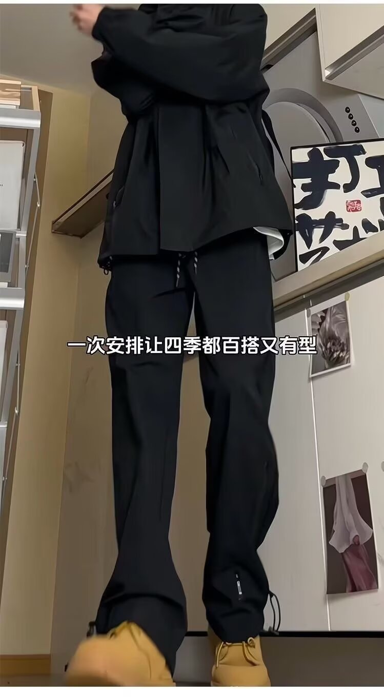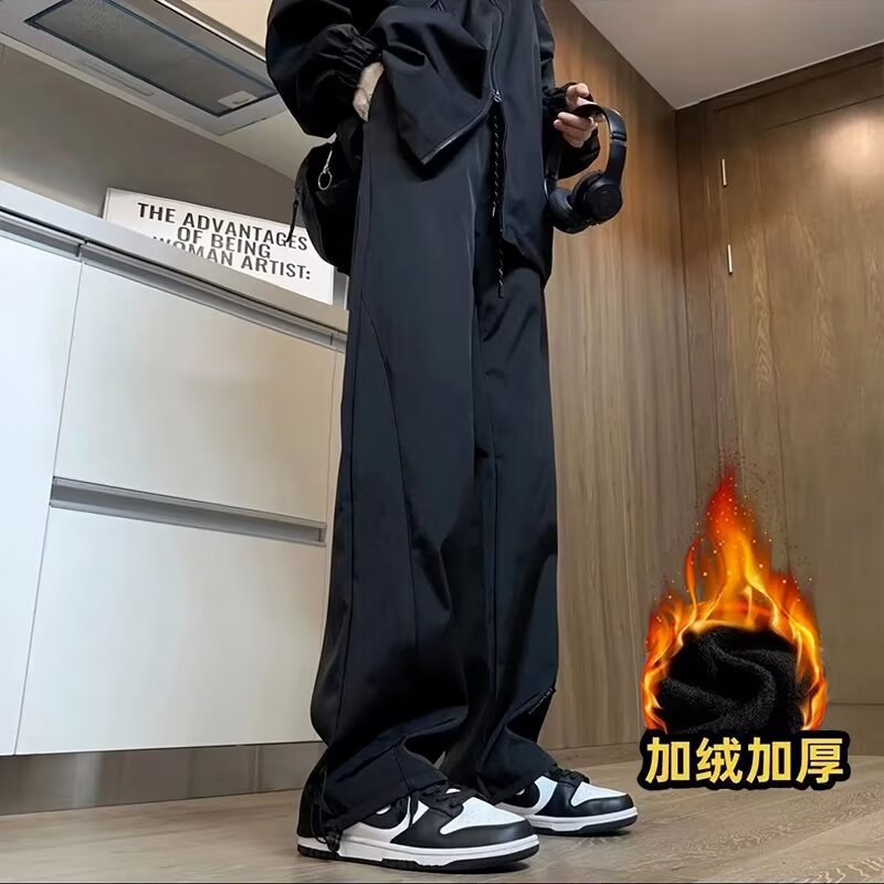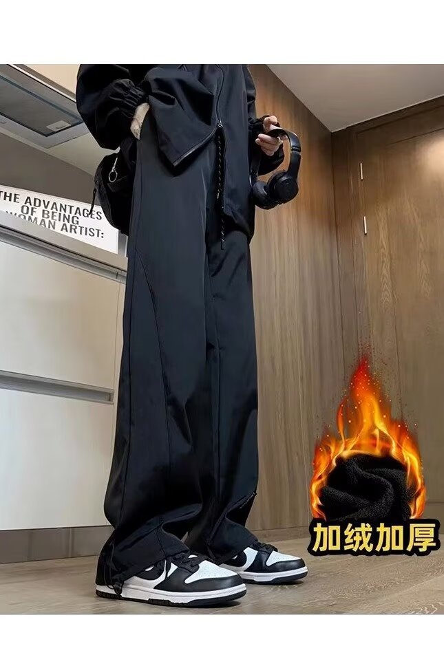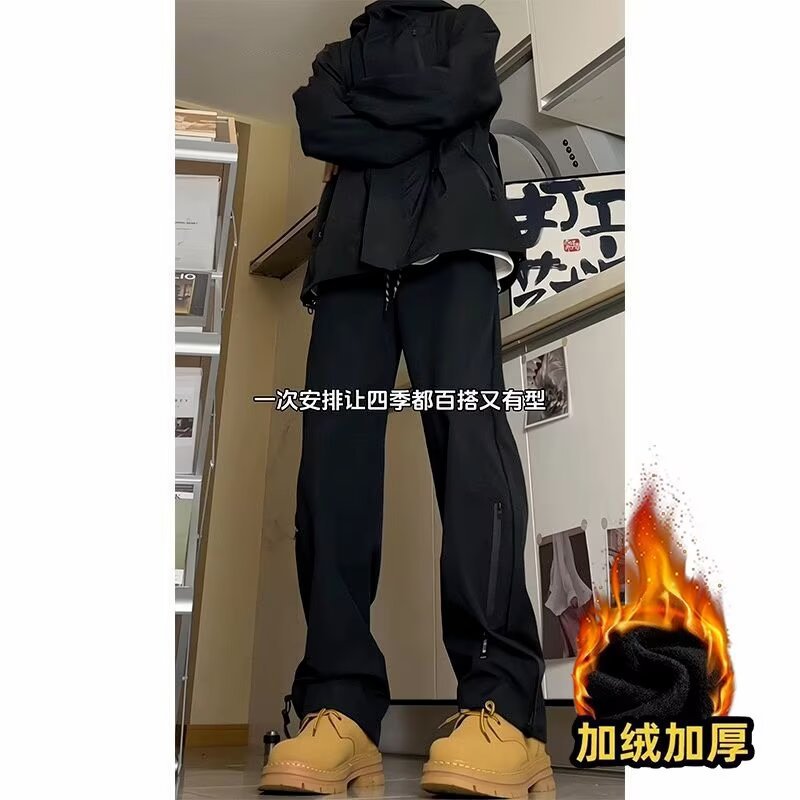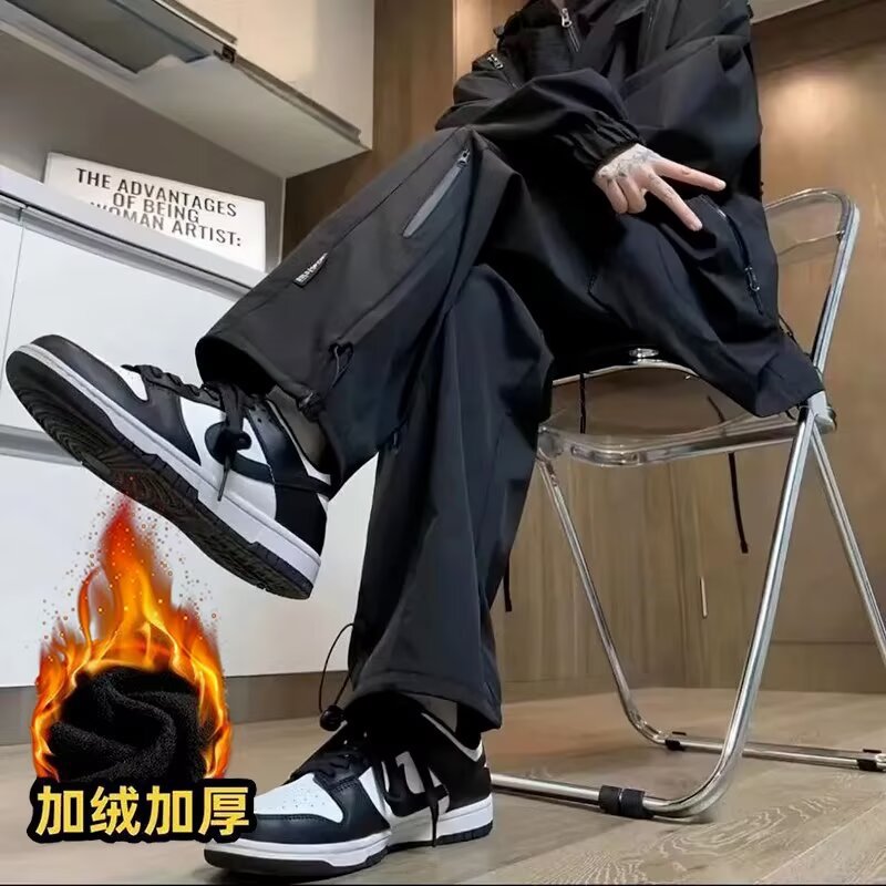 秋冬季防水加绒冲锋裤男潮牌修身阔腿休闲裤户外防风保暖冲锋裤男