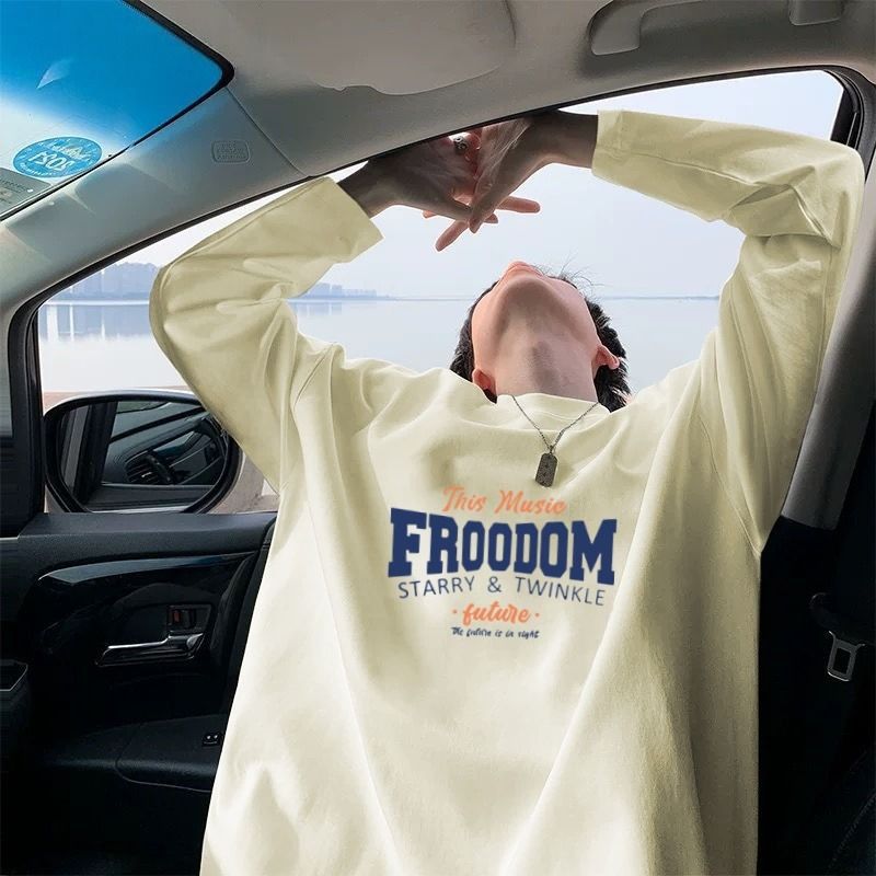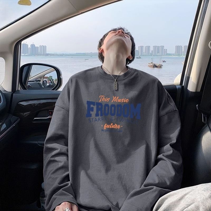 100%纯棉长袖男内穿ins原宿风简约宽松打底衫学生韩版上衣白色t恤