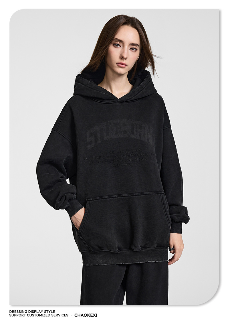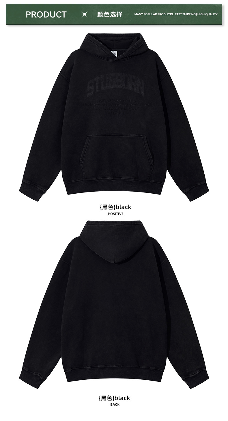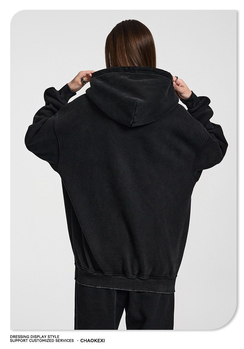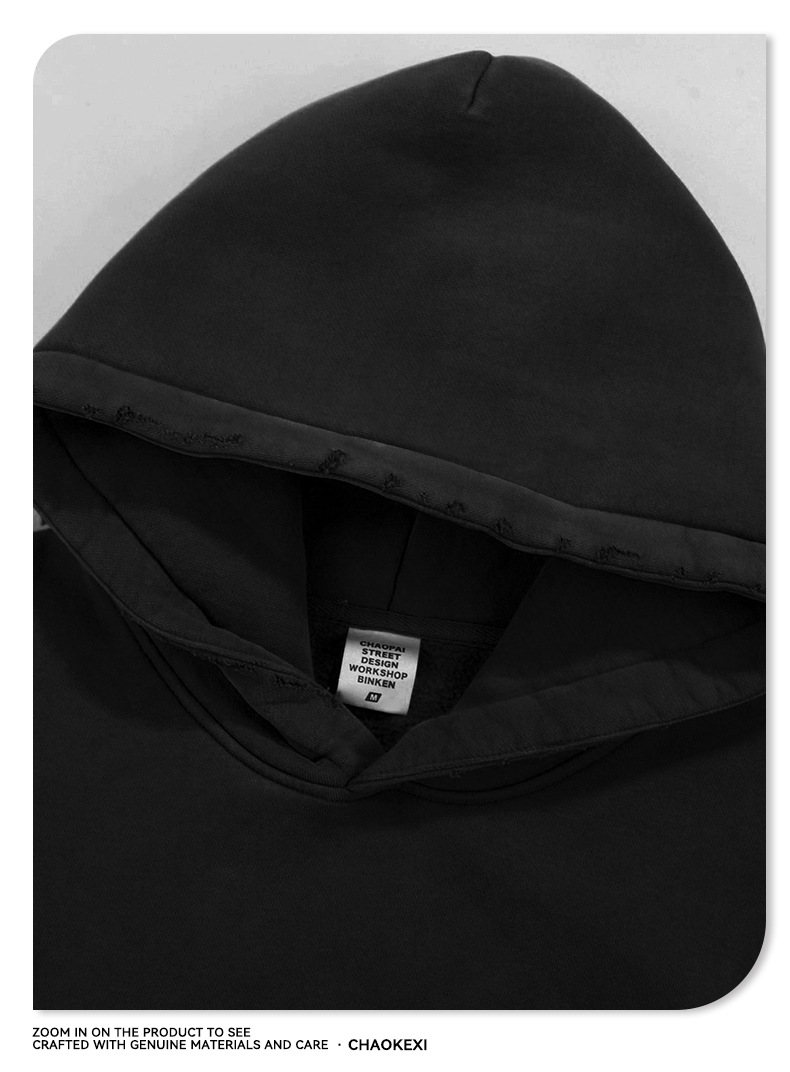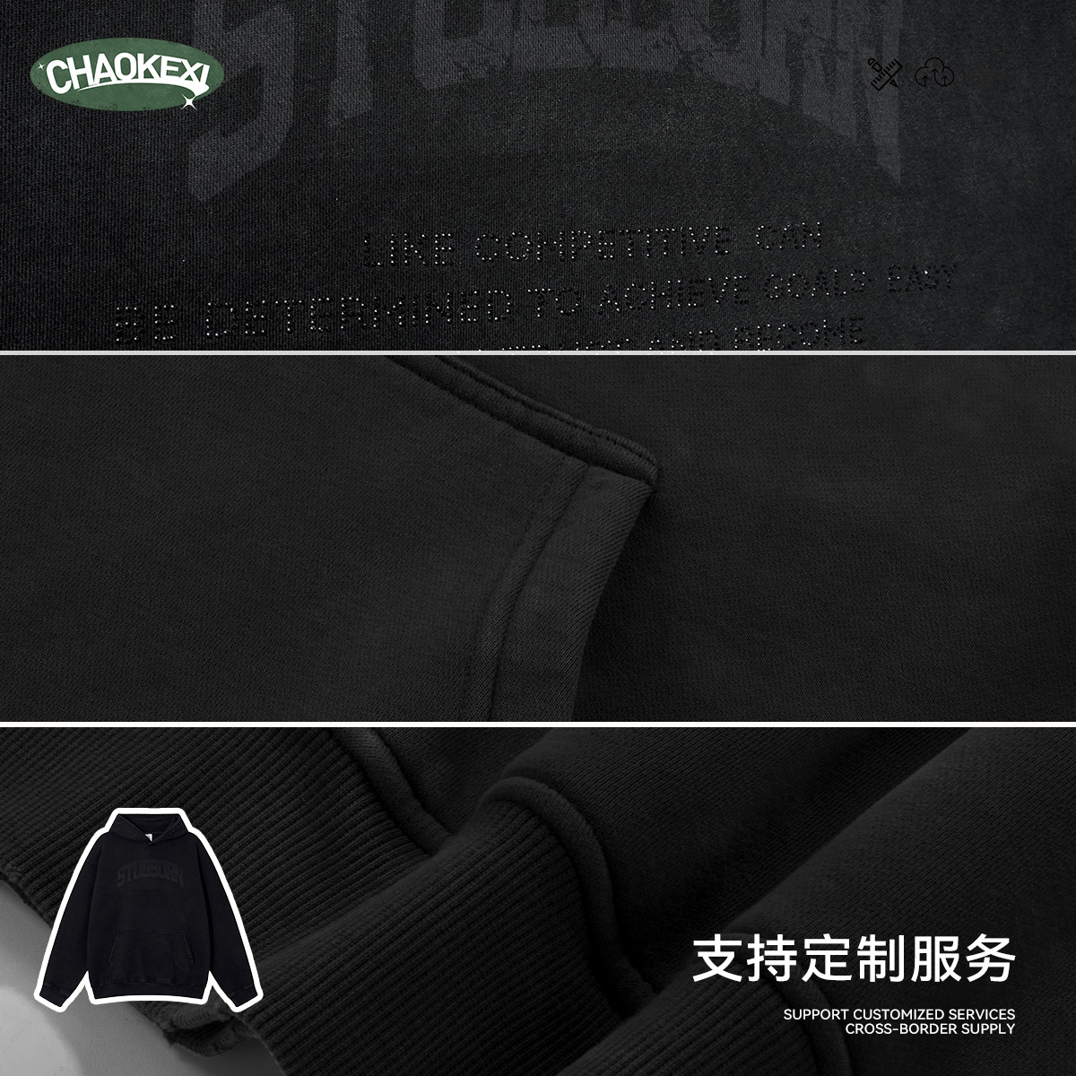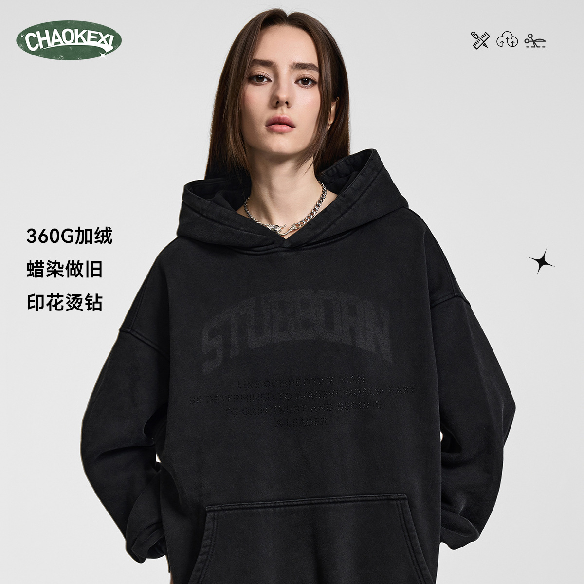 跨境男装冬装外套秋冬新款加绒加厚套头连帽360G潮牌冬卫衣男上衣