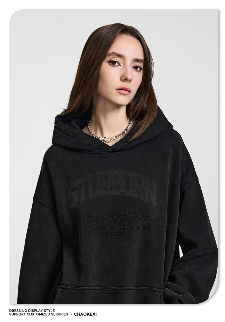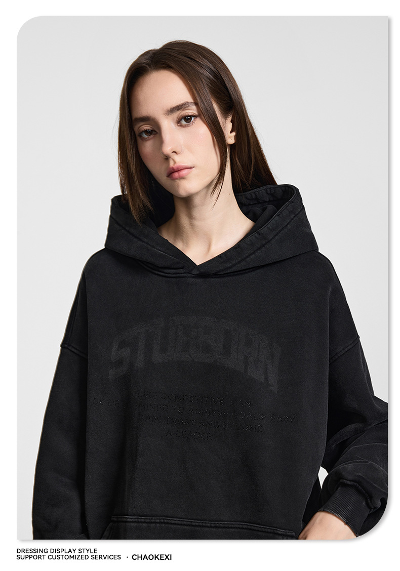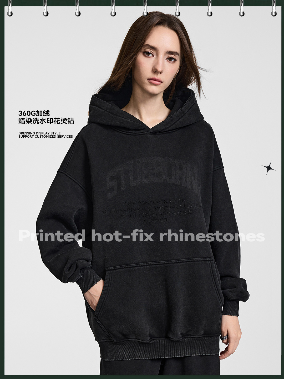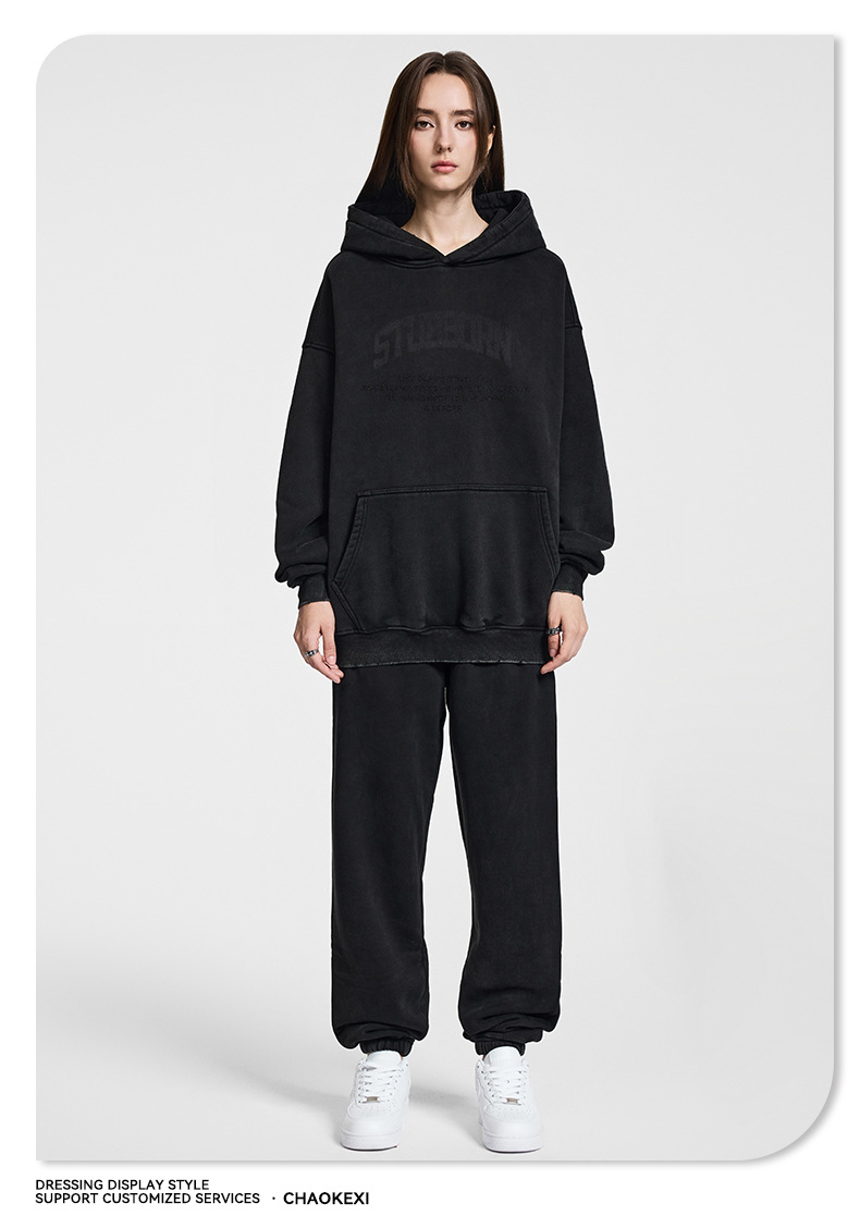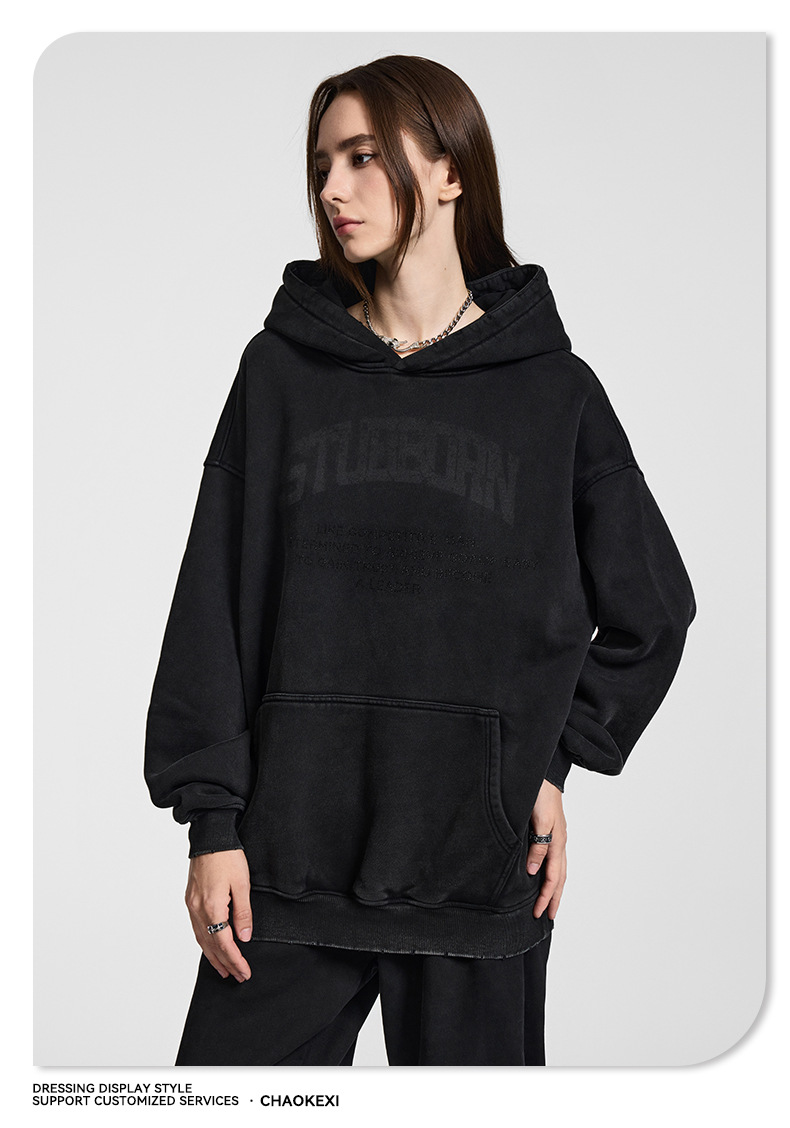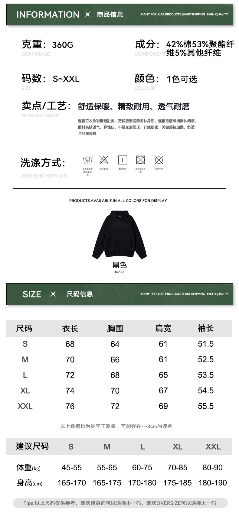 跨境男装冬装外套秋冬新款加绒加厚套头连帽360G潮牌冬卫衣男上衣