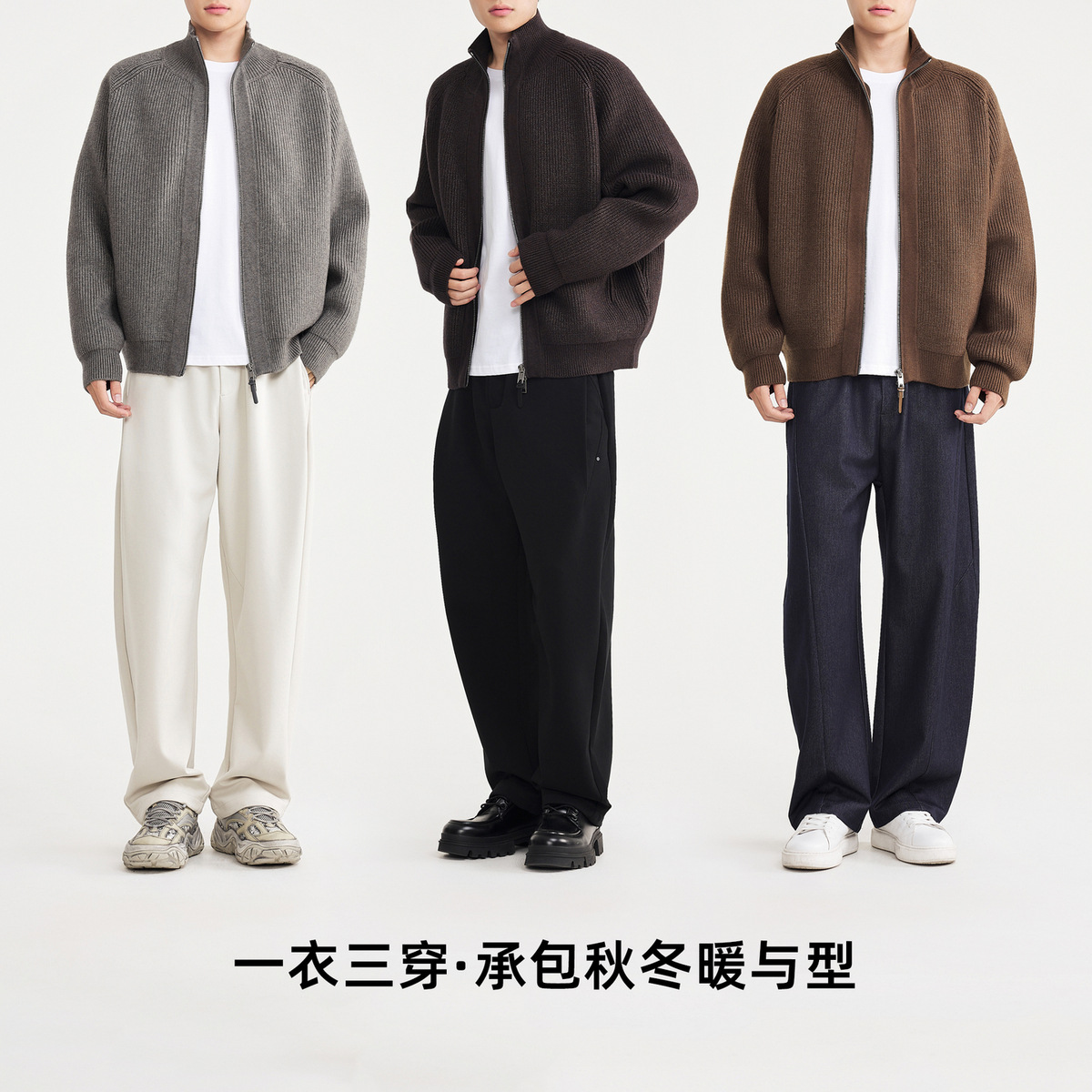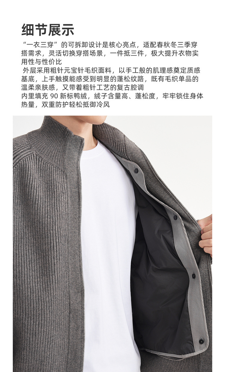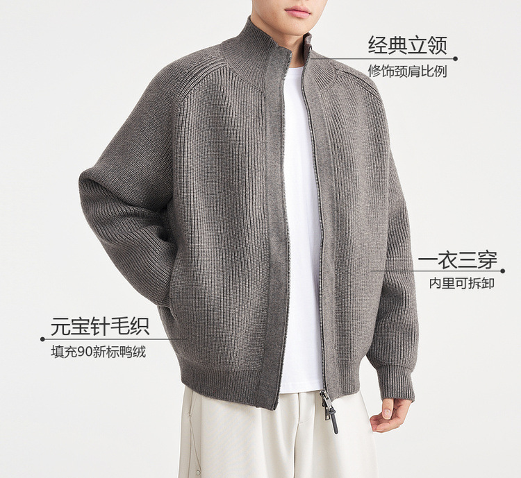 墨麦客男装可拆卸内里羽绒服男2025冬新款老钱风毛衣开衫男88840.