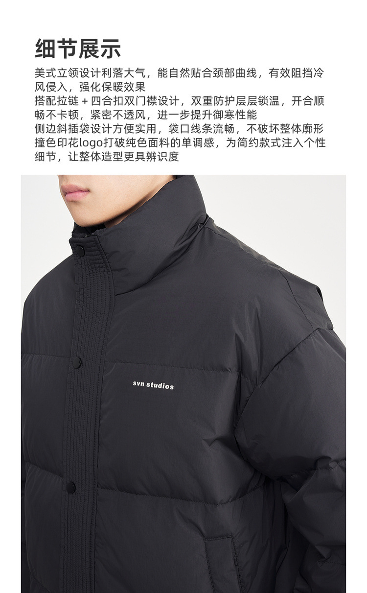 墨麦客男装立领双门襟男士羽绒服2025冬季新款印花羽绒服男88846.
