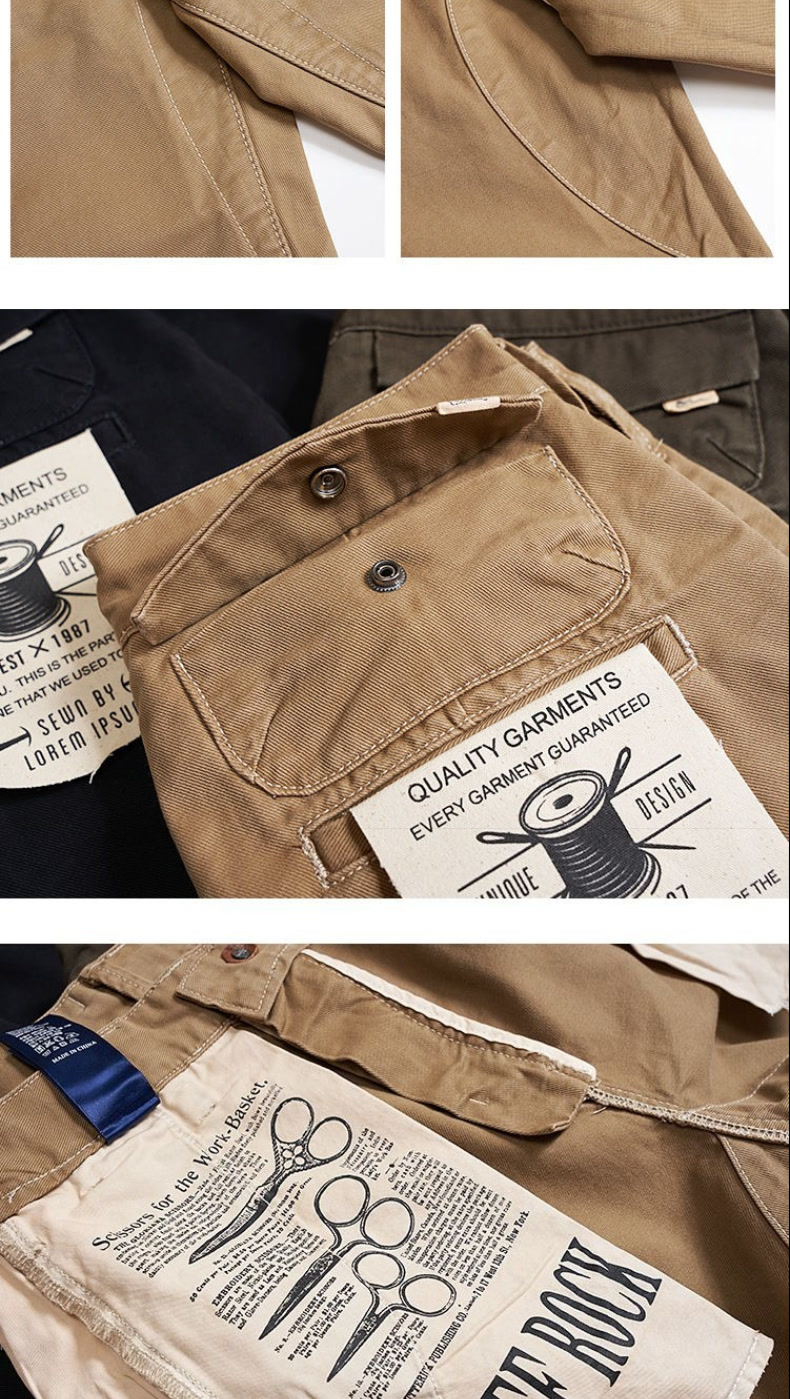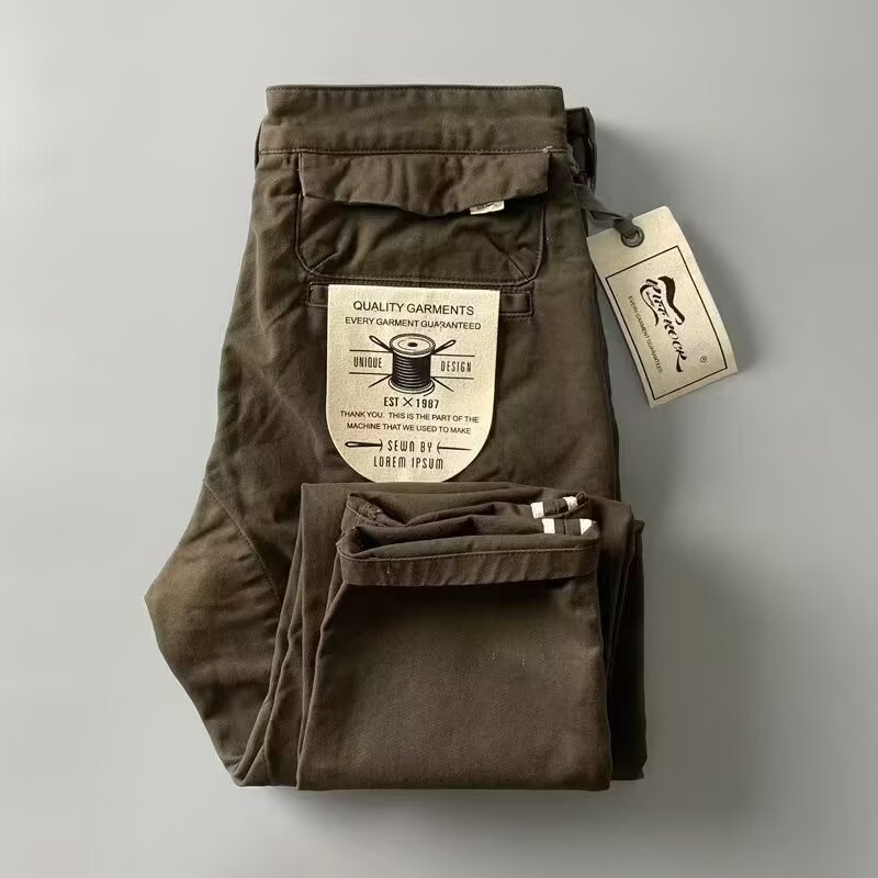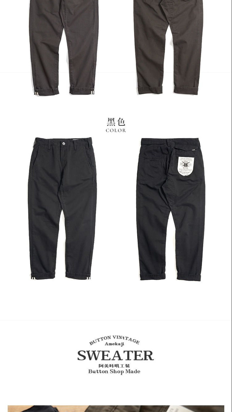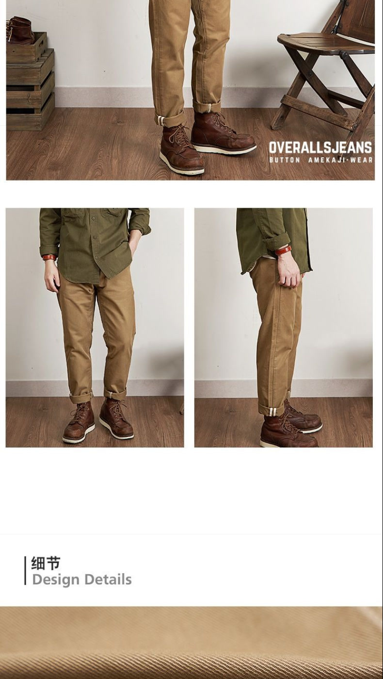 2025夏季百搭美式水洗复古男款厚实休闲裤做旧直筒长裤工装裤
