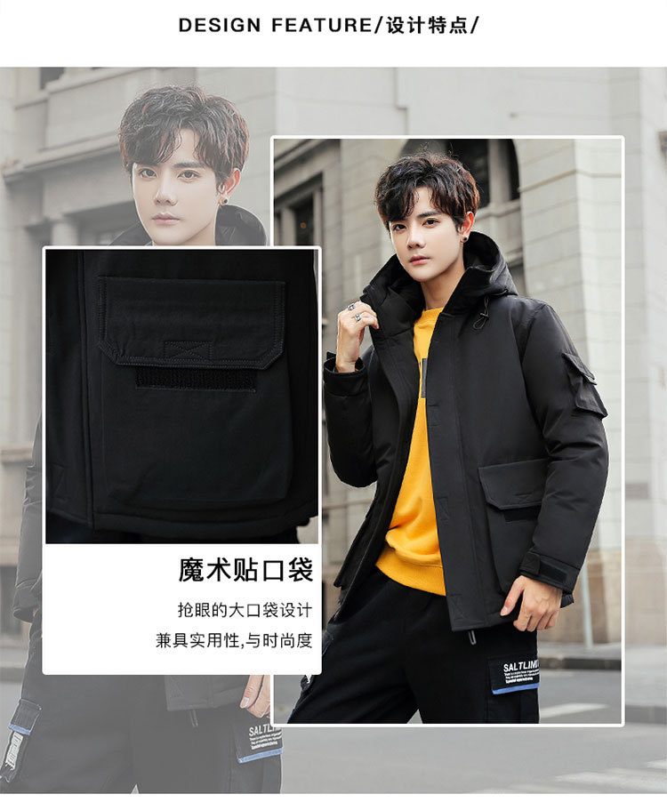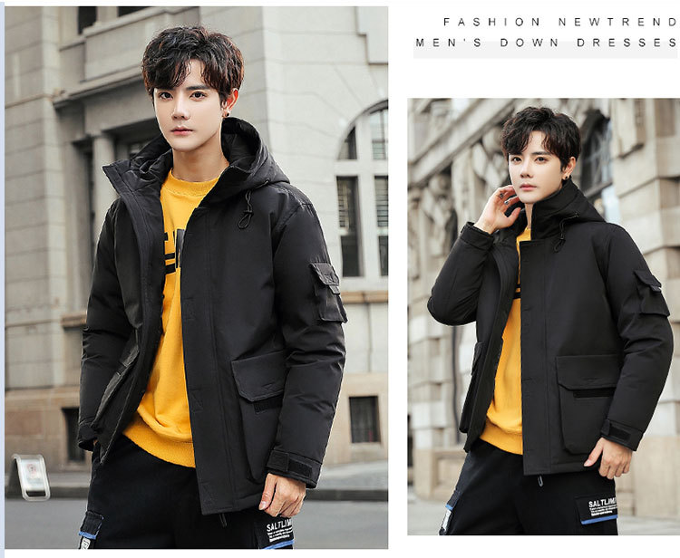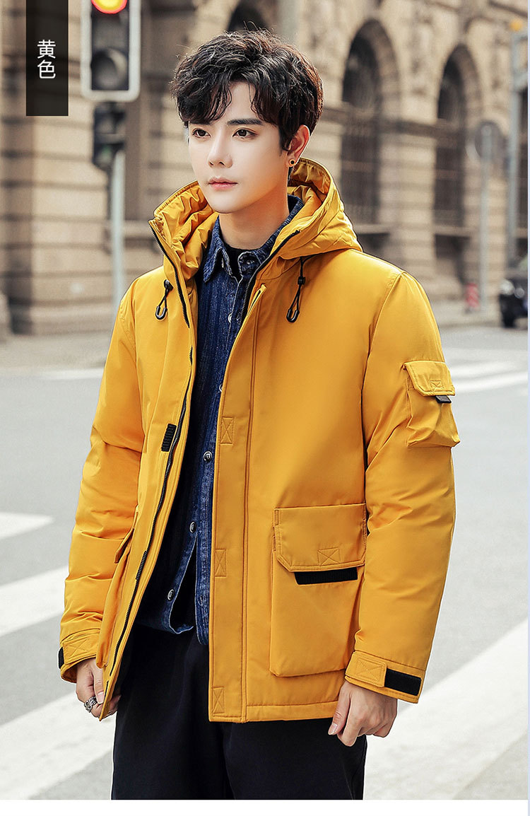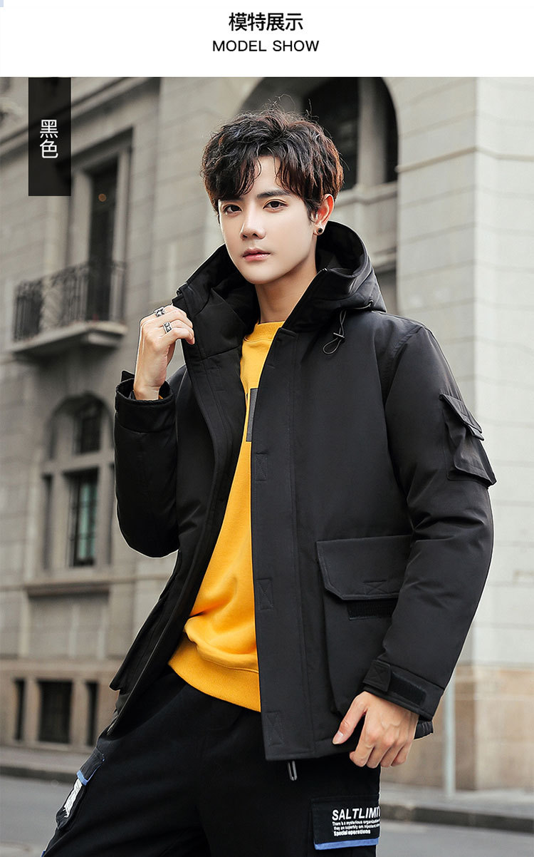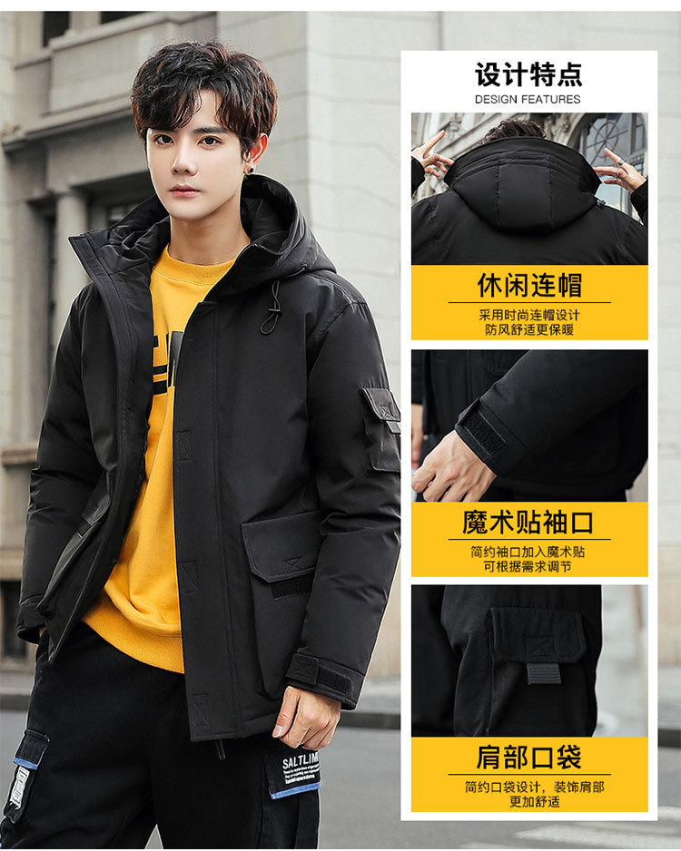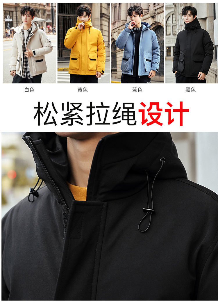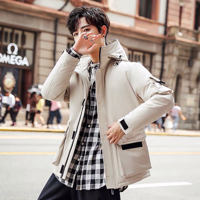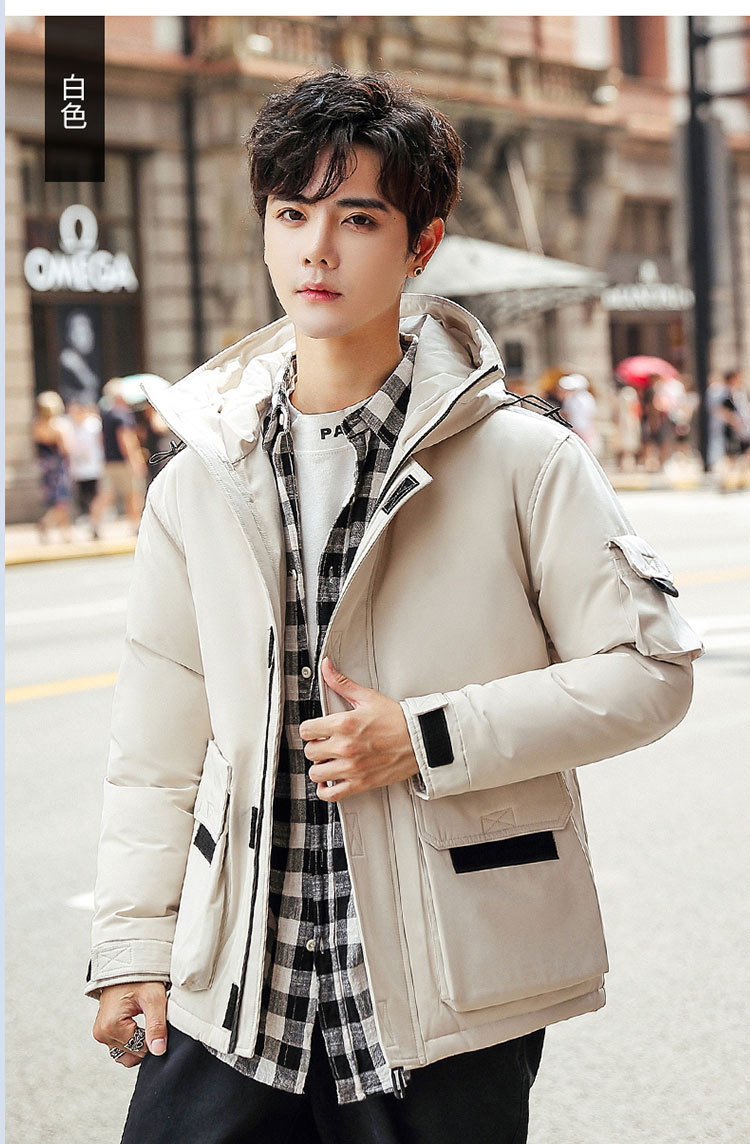 2025新款男士羽绒服青年保暖连帽外套日系潮流工装上衣男士休闲白