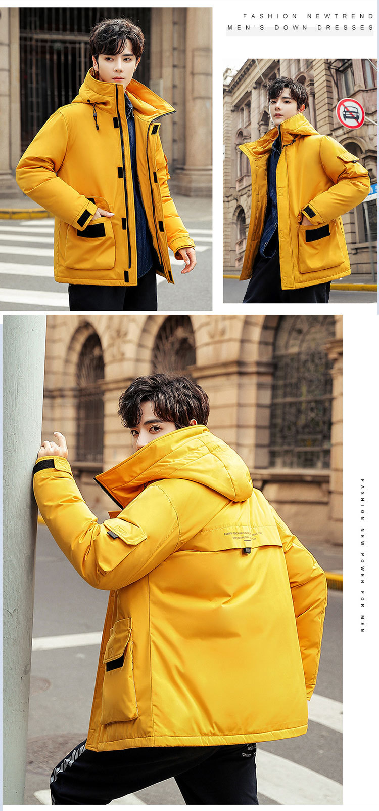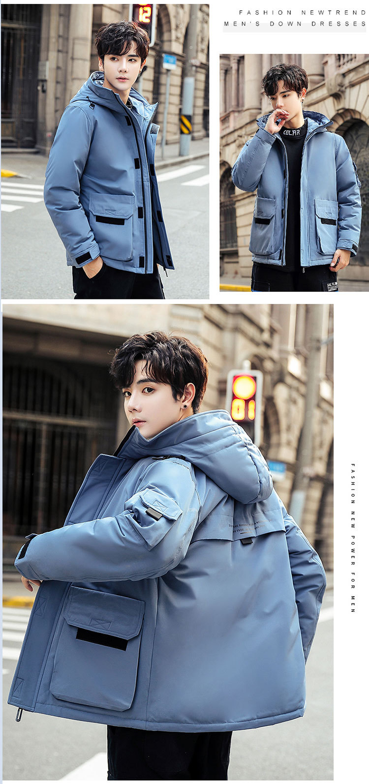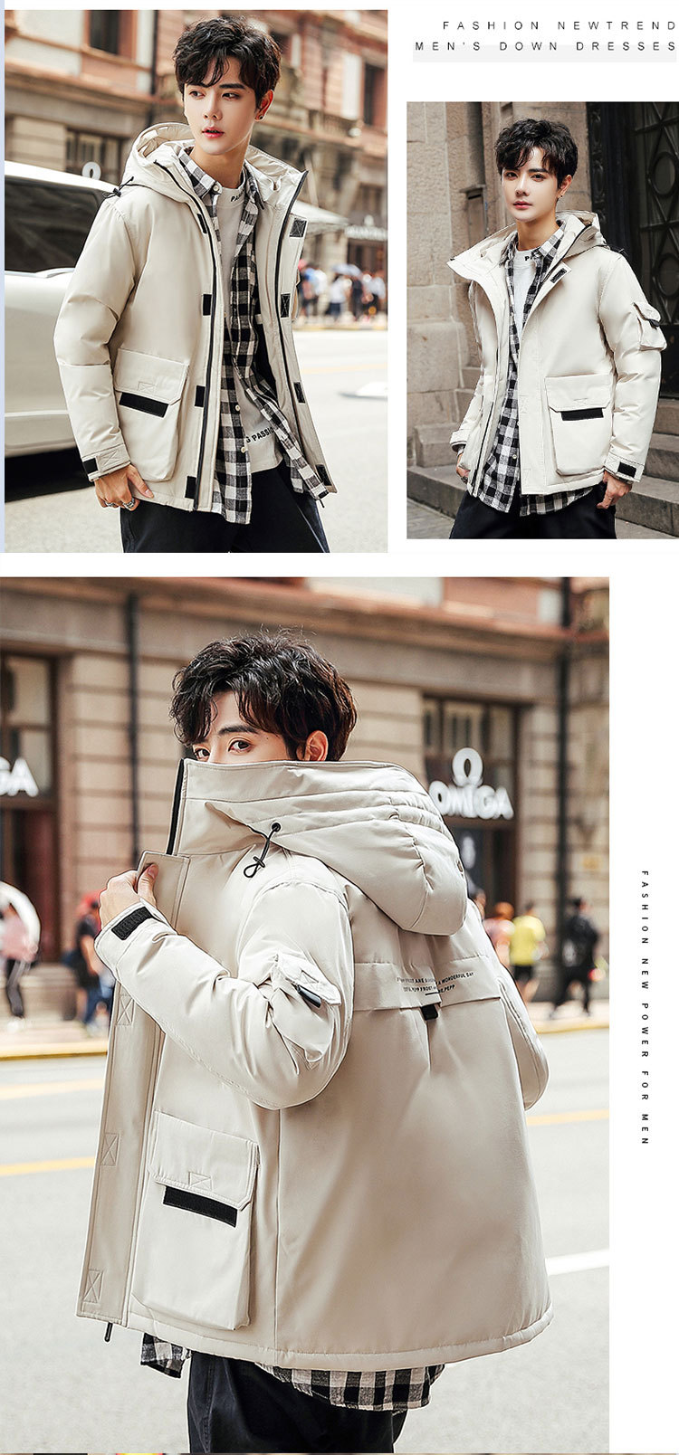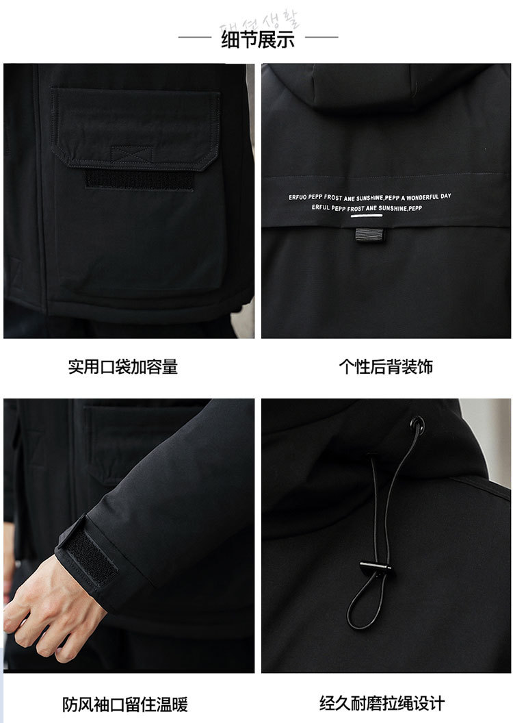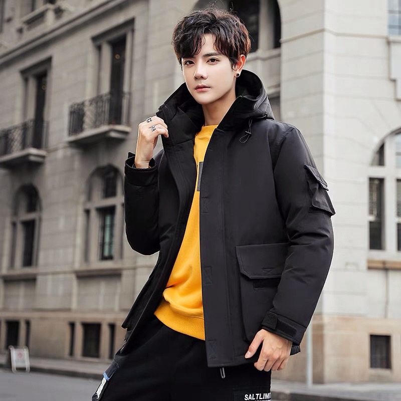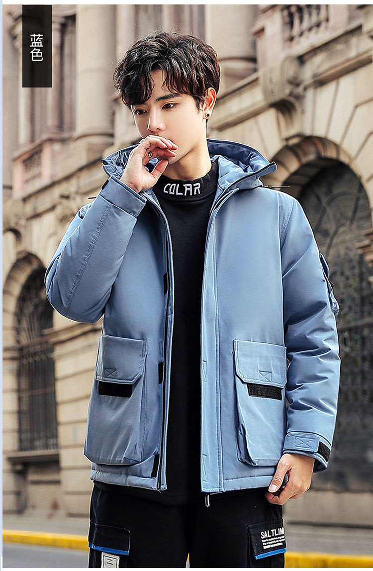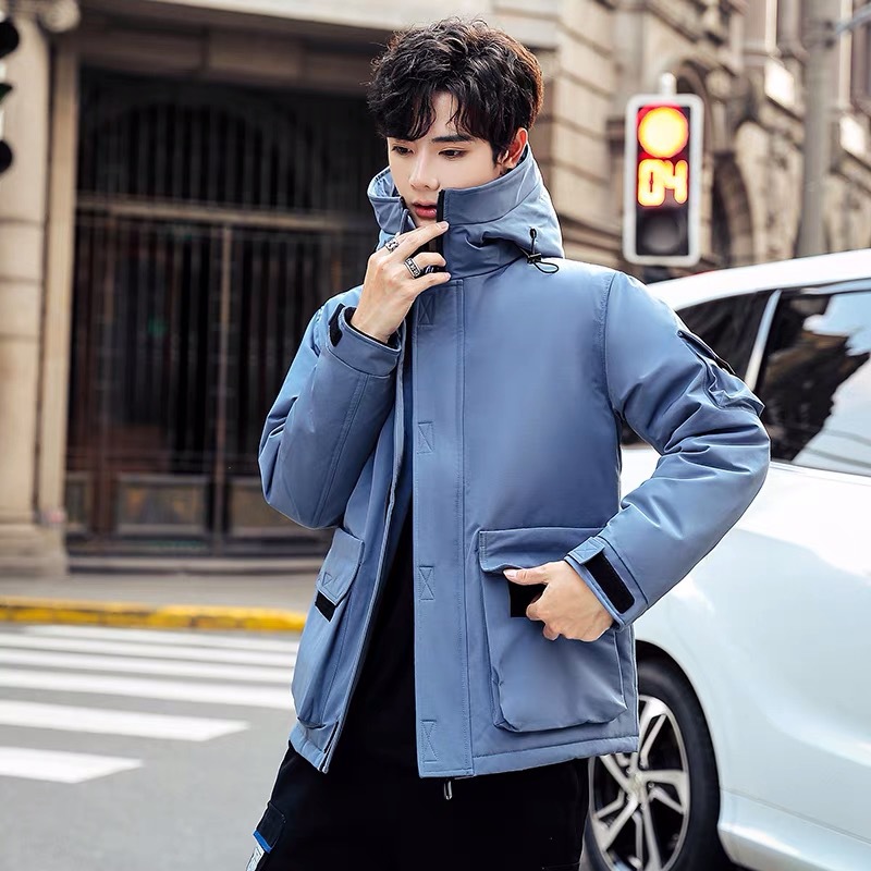 2025新款男士羽绒服青年保暖连帽外套日系潮流工装上衣男士休闲白