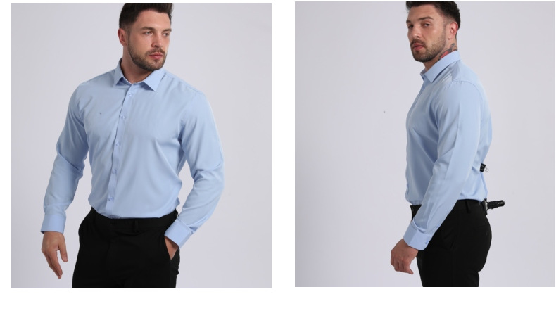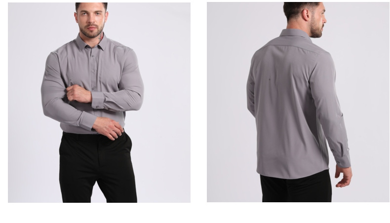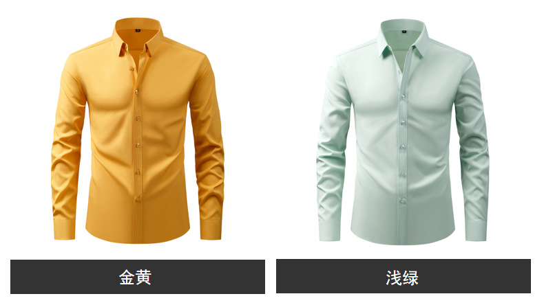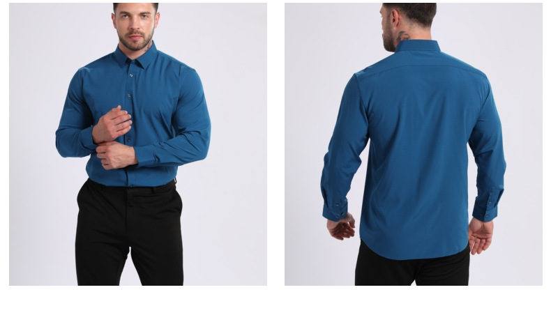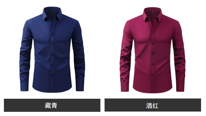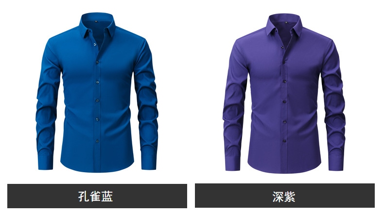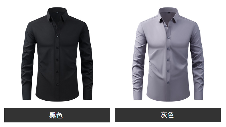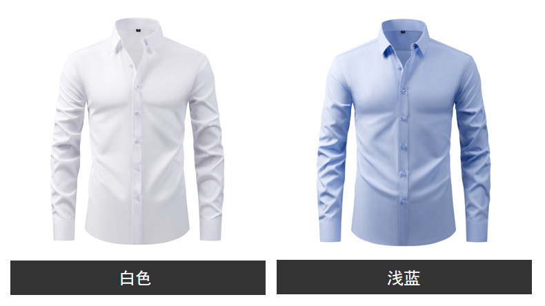 跨境轻薄弹力大码男士衬衫免烫抗皱长袖衬衣亚马逊开衫长袖衬衫男