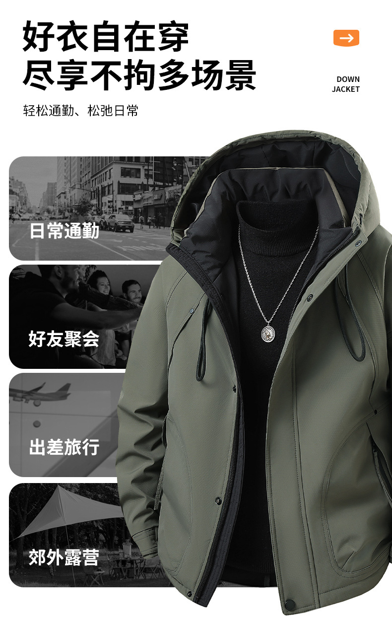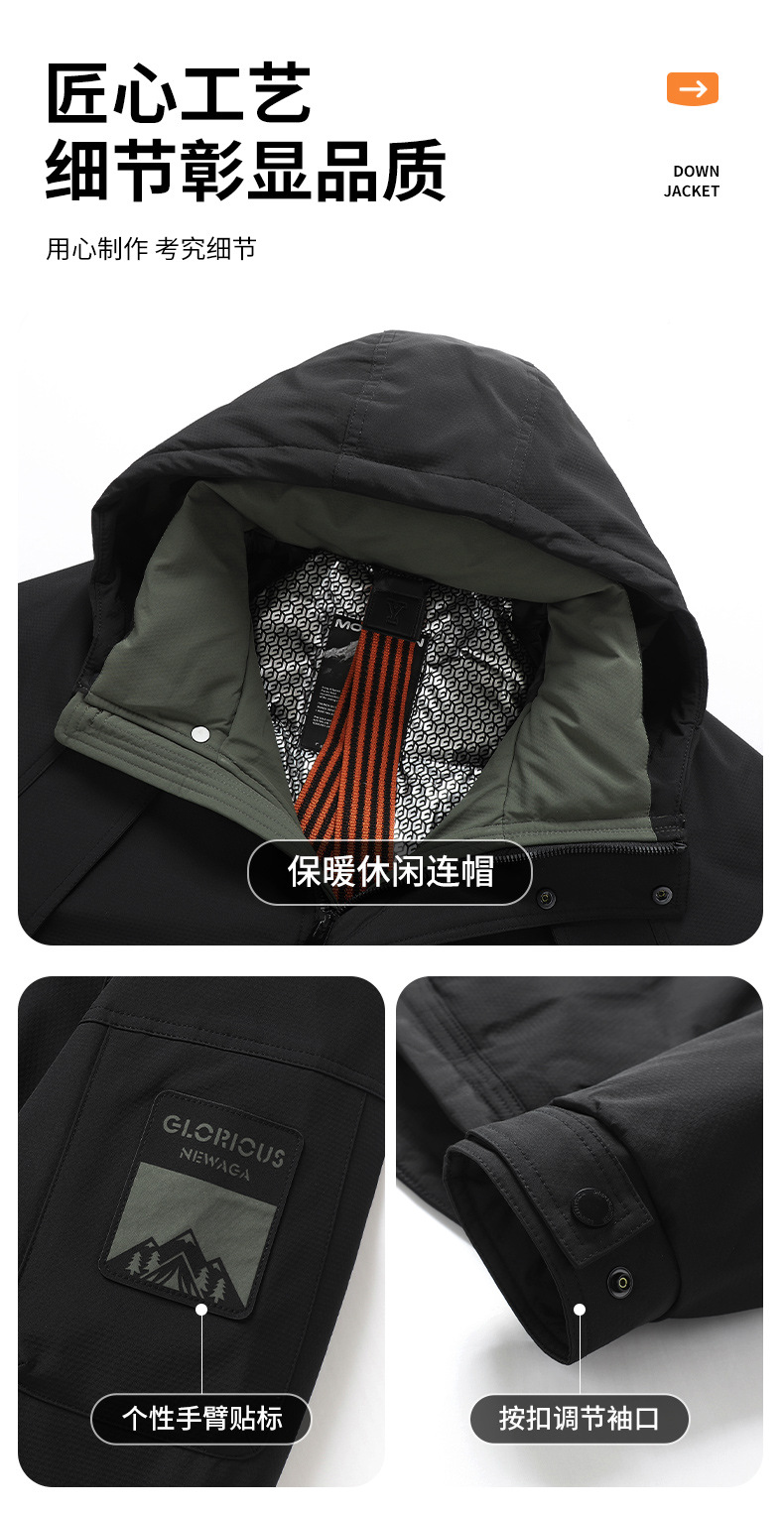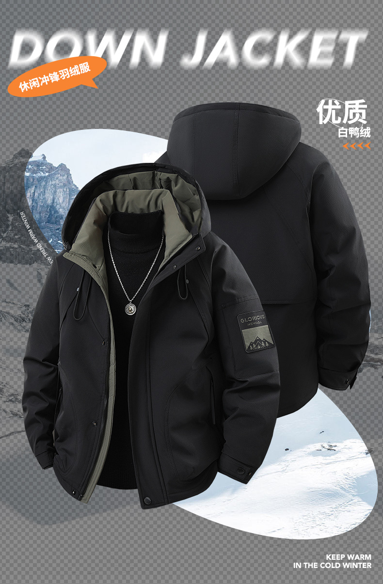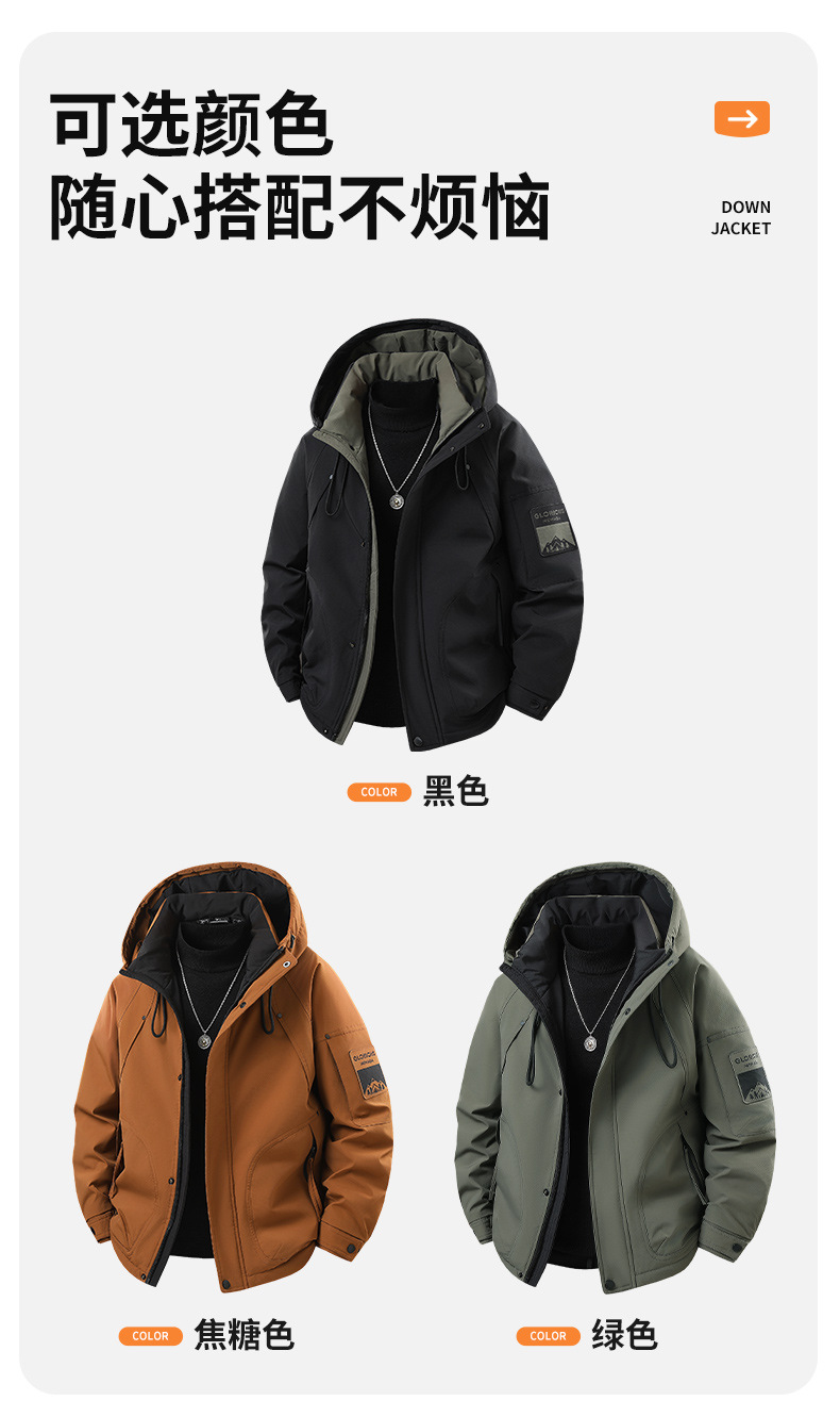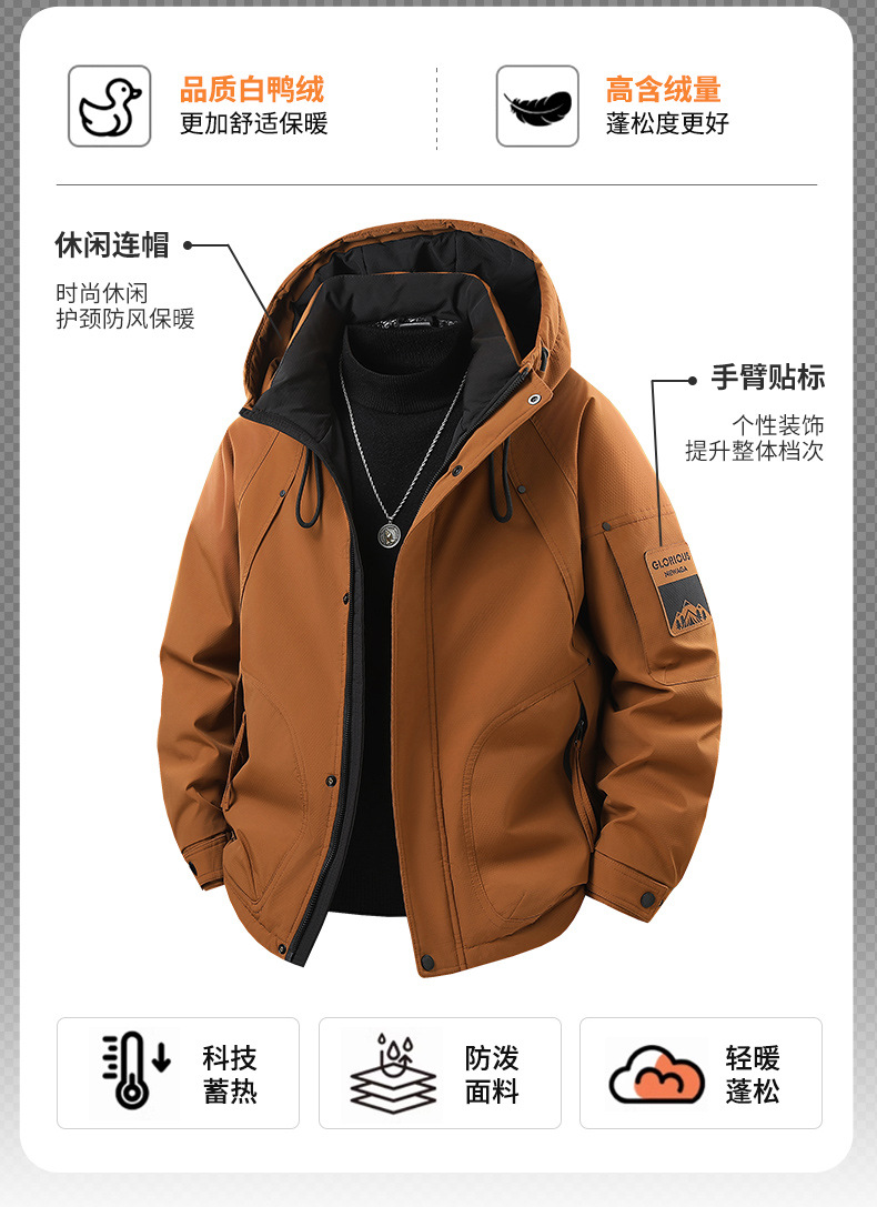 新国标50羽绒服休闲连帽男士秋冬季新款户外工装保暖潮流男装外套