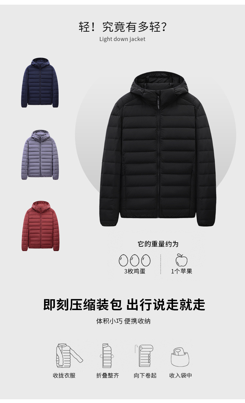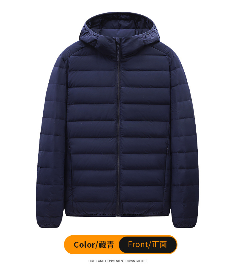 跨境无缝轻薄连帽羽绒服男士短款2025冬季新款90白鸭绒轻便外套男