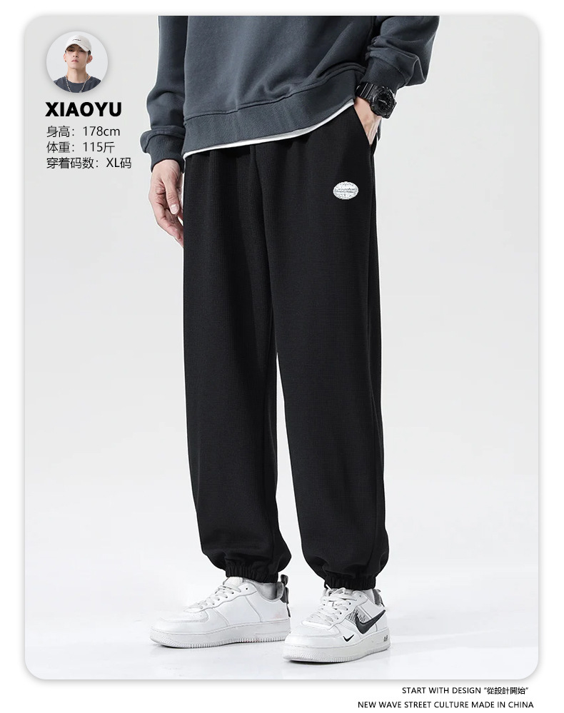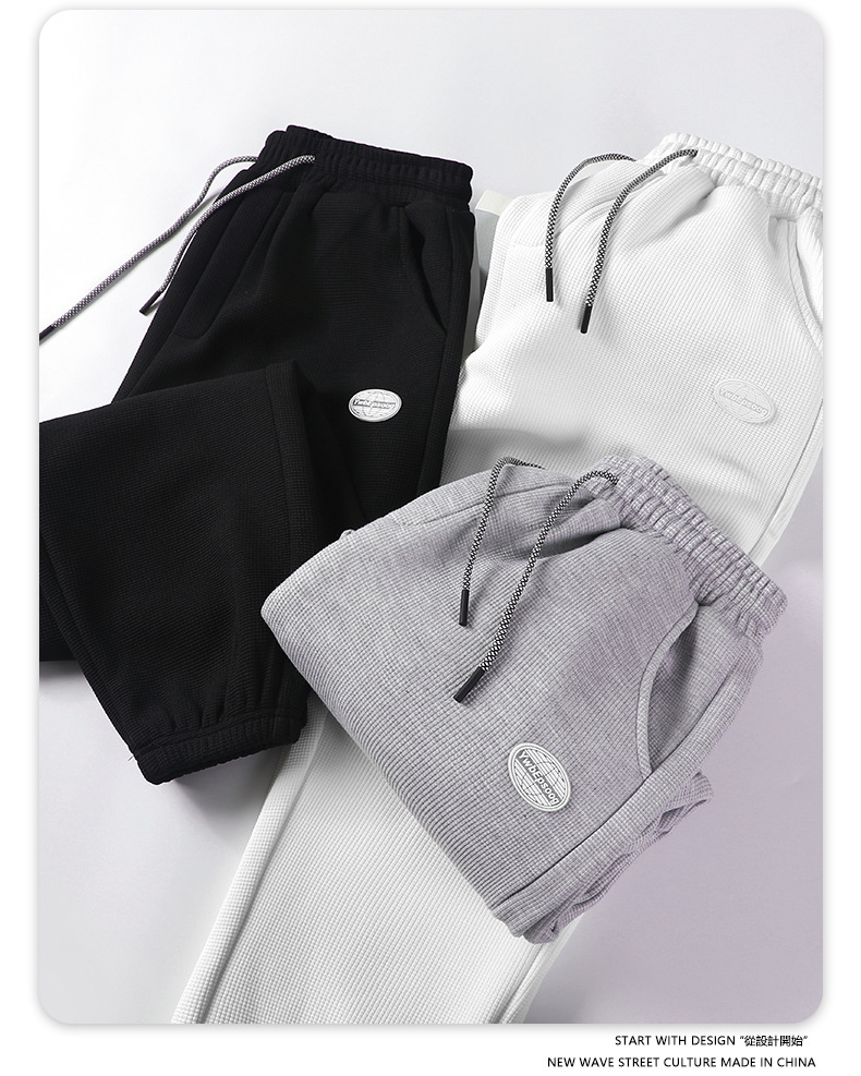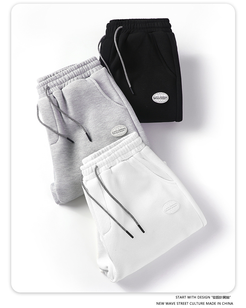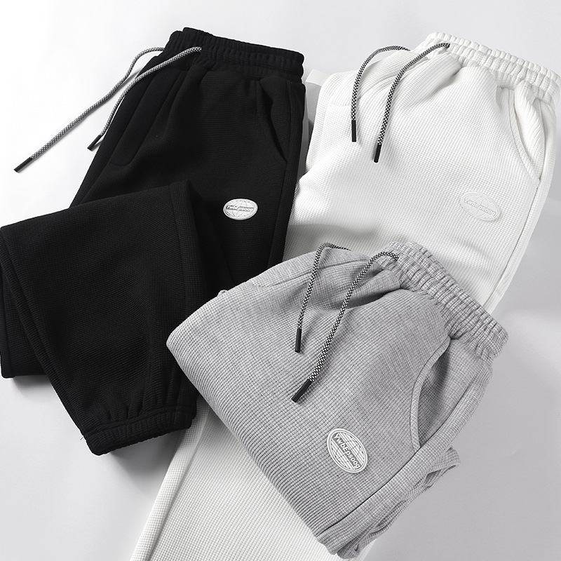 ACU男装|华夫格卫裤男2025秋冬潮牌情侣束脚加绒运动裤休闲长裤子