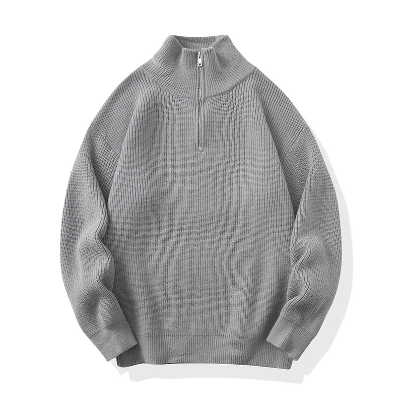 简恒新款男士毛衣简约情侣慵懒风纯色拉链男士毛衣外穿套头男毛衣