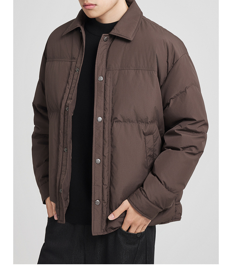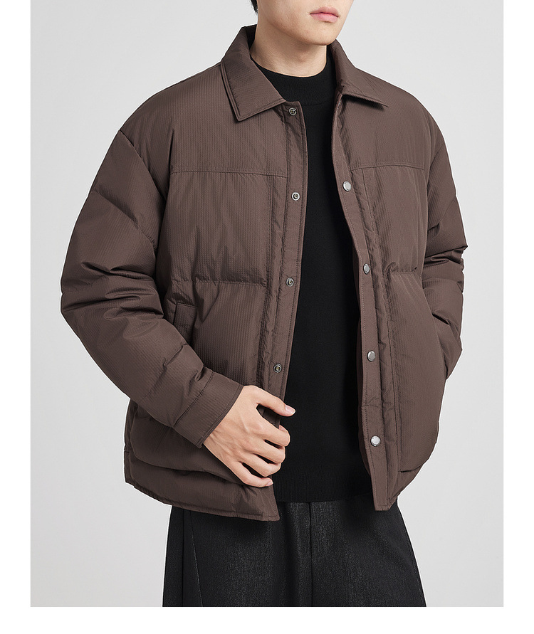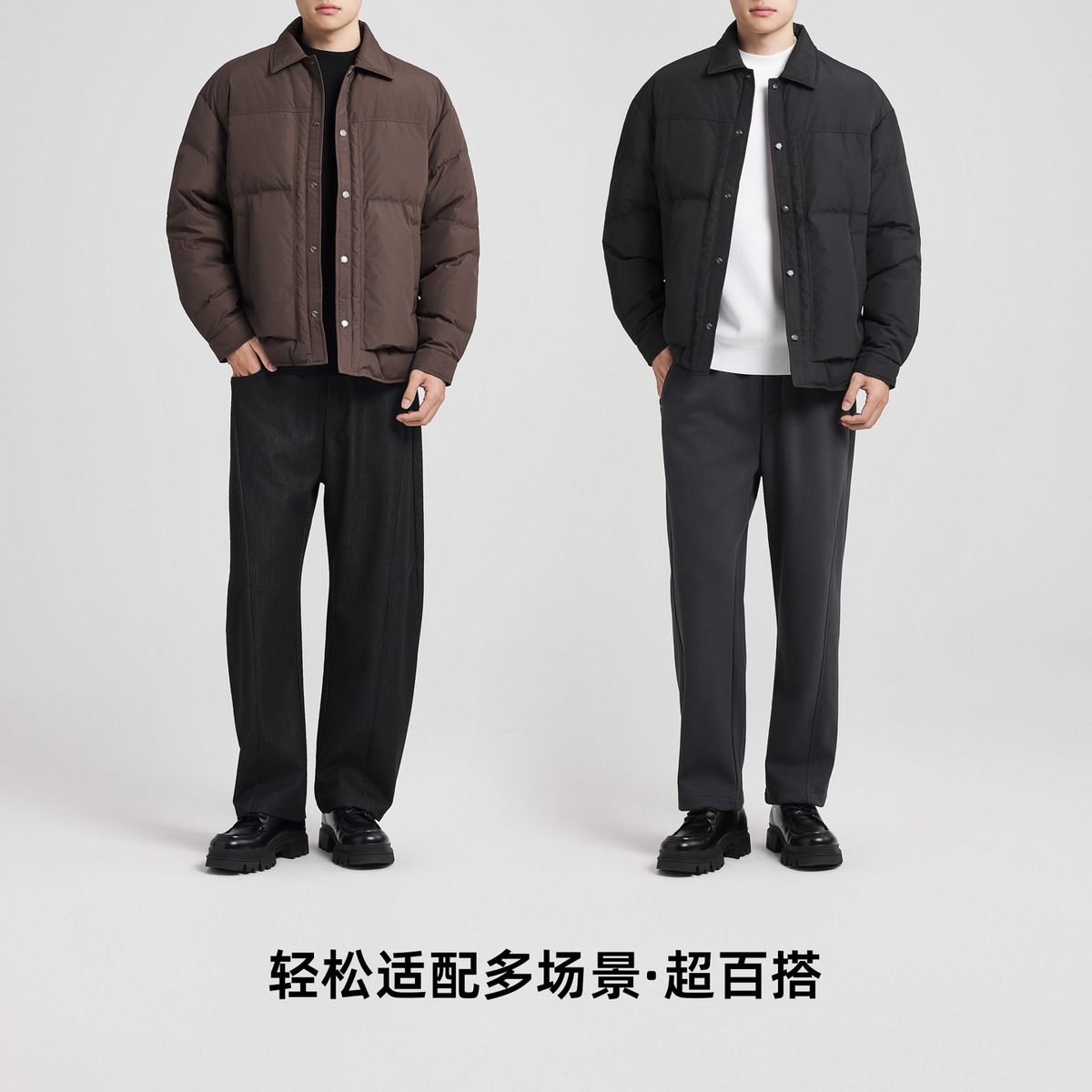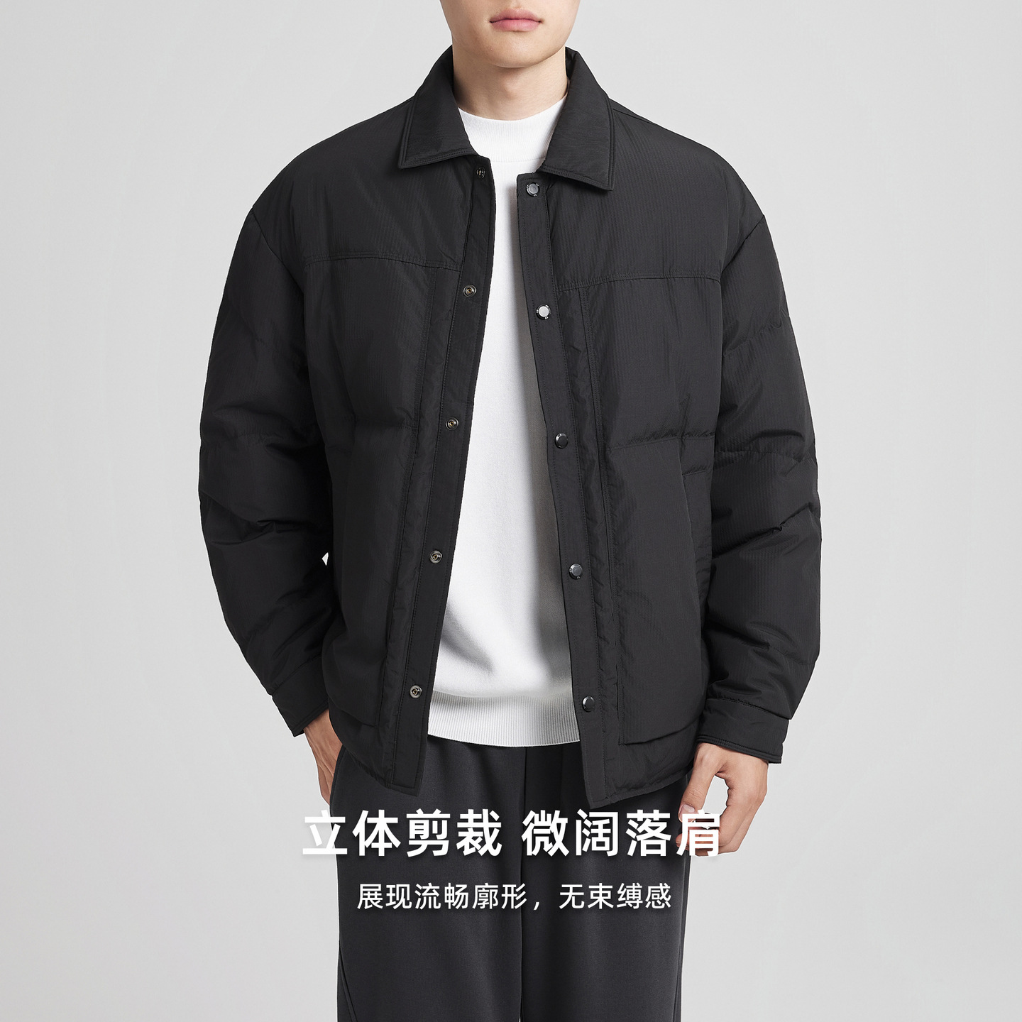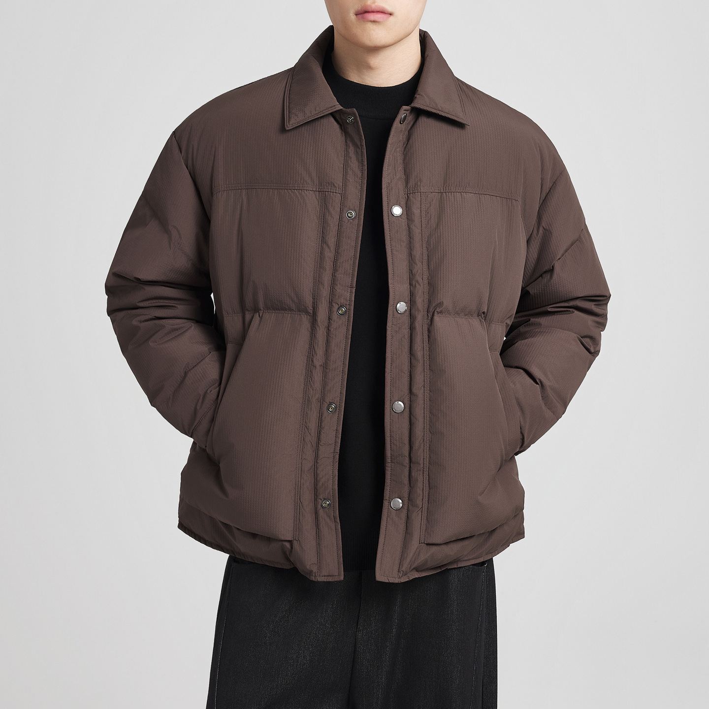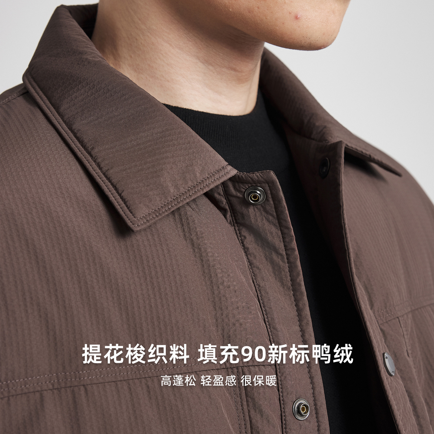 墨麦客男装格纹提花男士羽绒服2025冬新款简约翻领羽绒服男88765.
