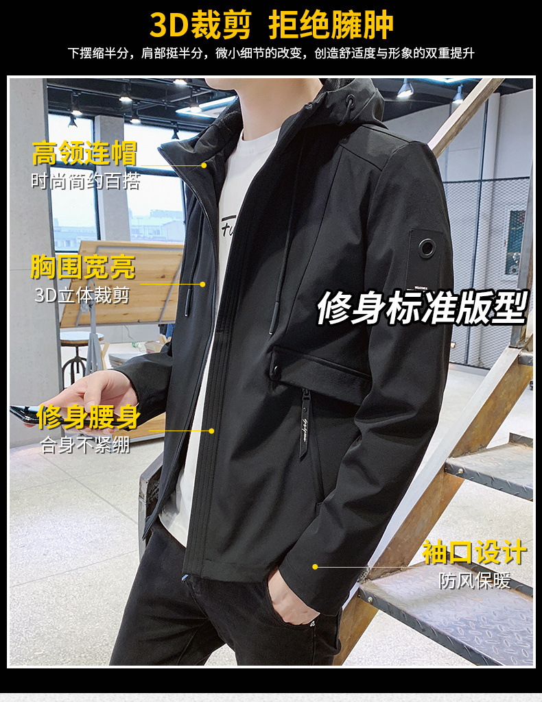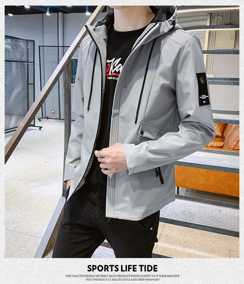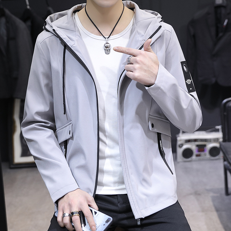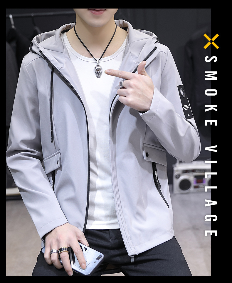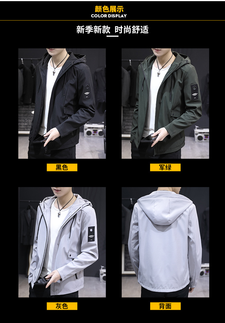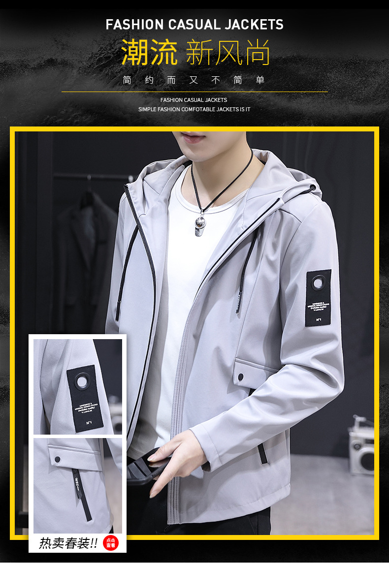新款男士外套秋季韩版潮流连帽修身青年夹克男防风上衣时尚百搭