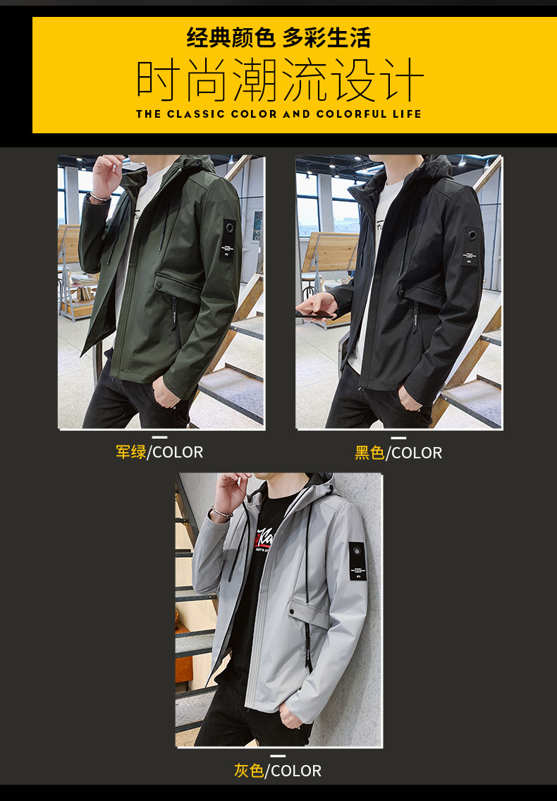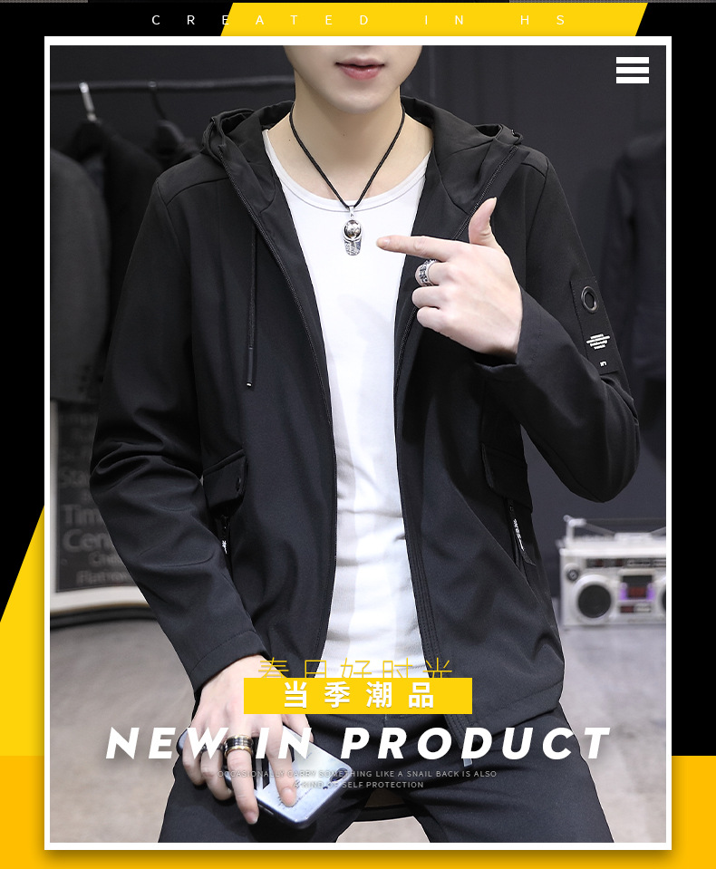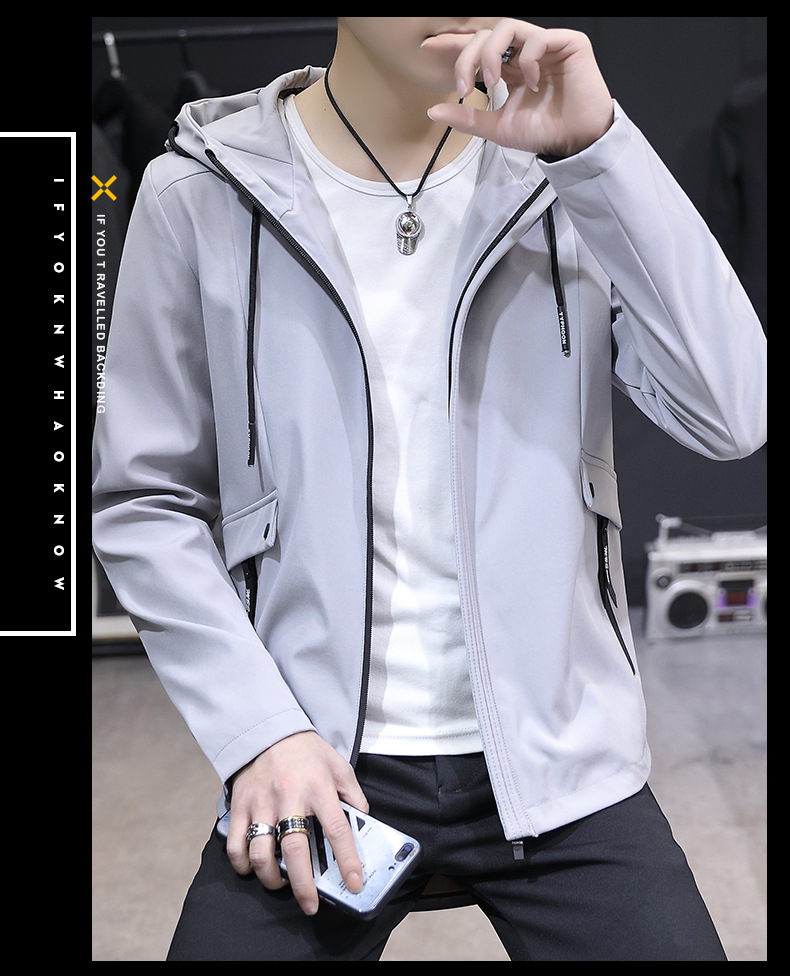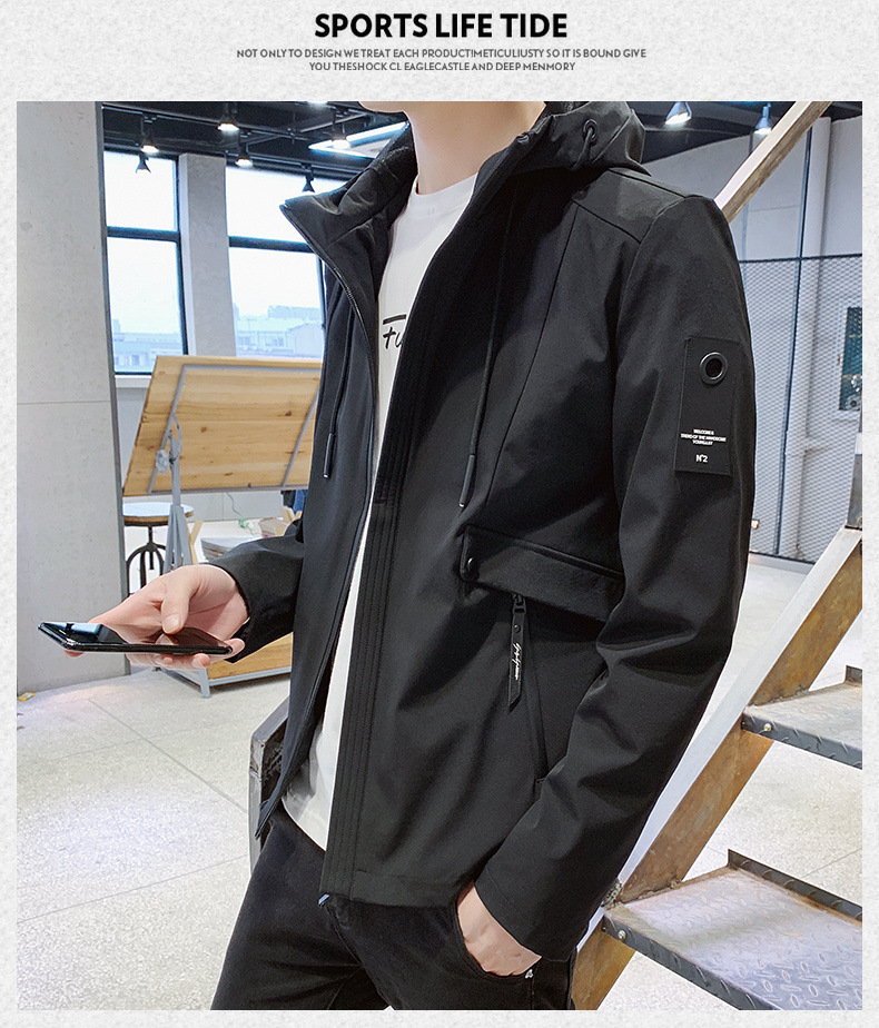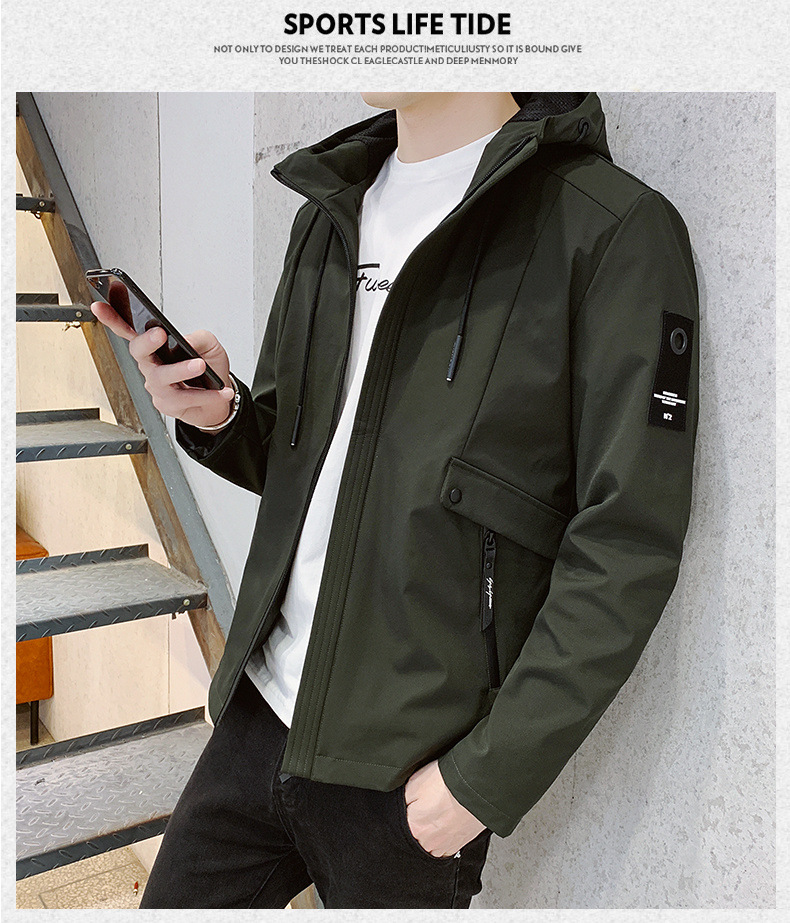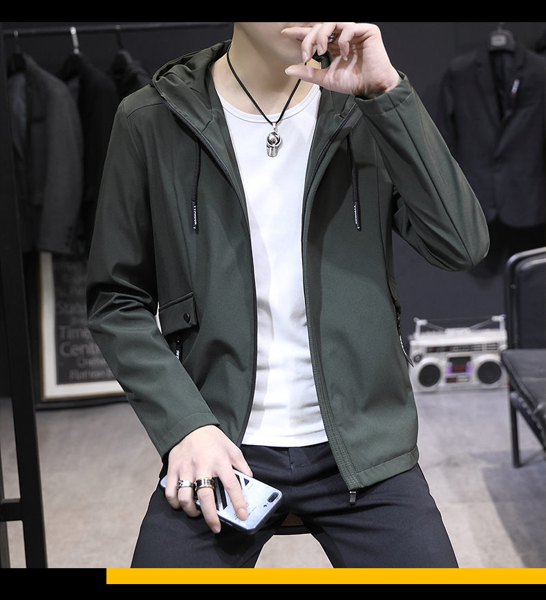 新款男士外套秋季韩版潮流连帽修身青年夹克男防风上衣时尚百搭