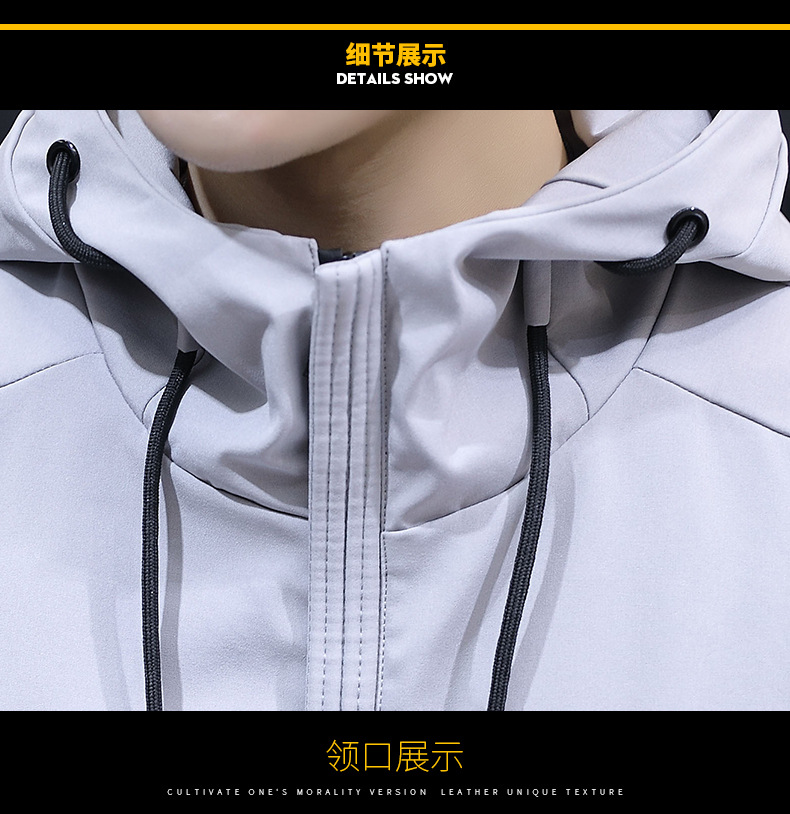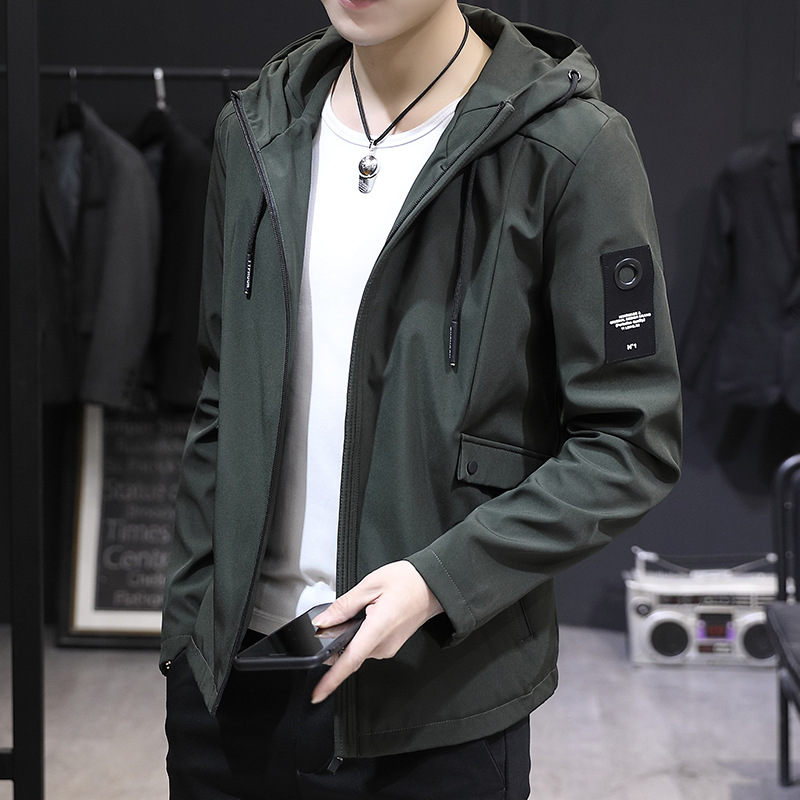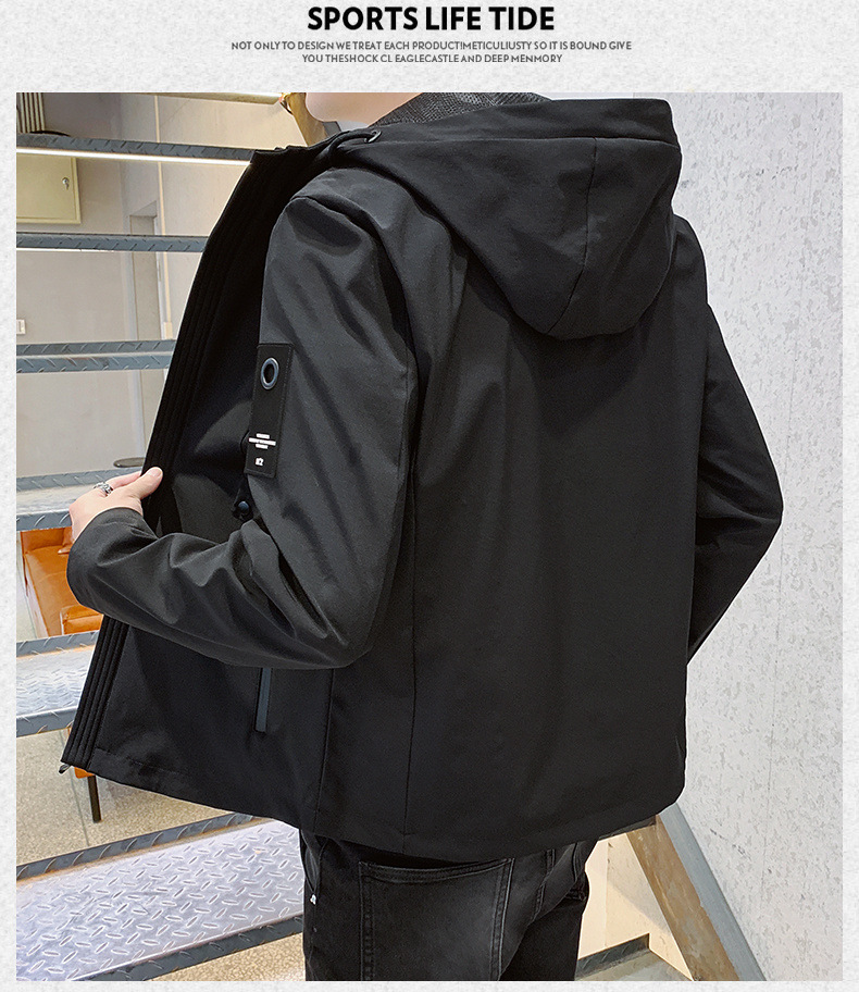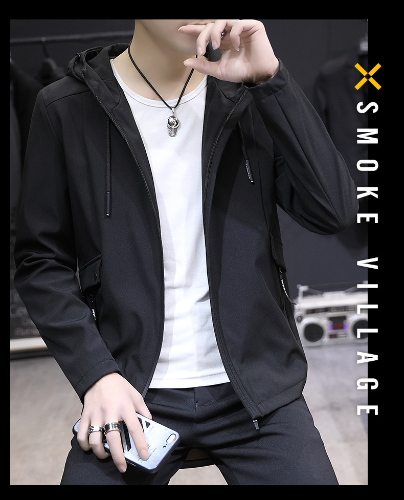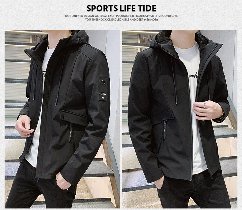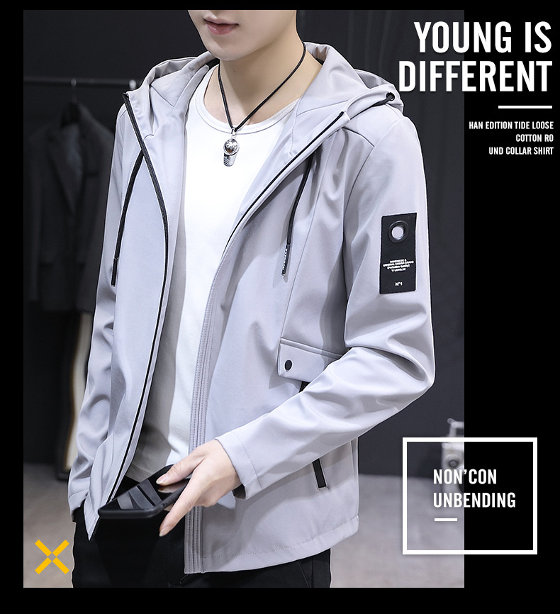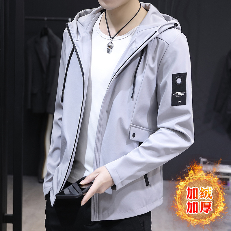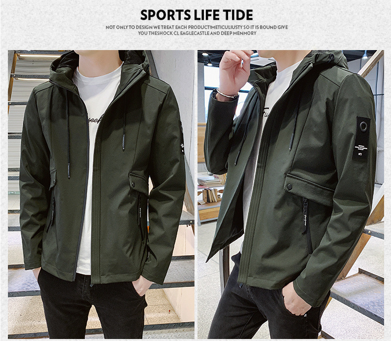新款男士外套秋季韩版潮流连帽修身青年夹克男防风上衣时尚百搭