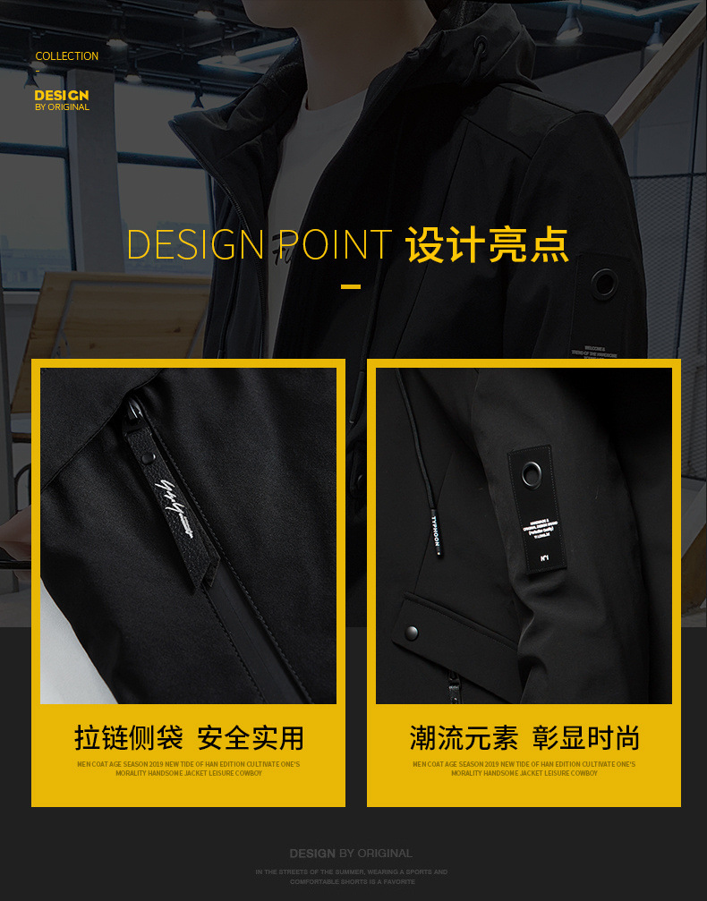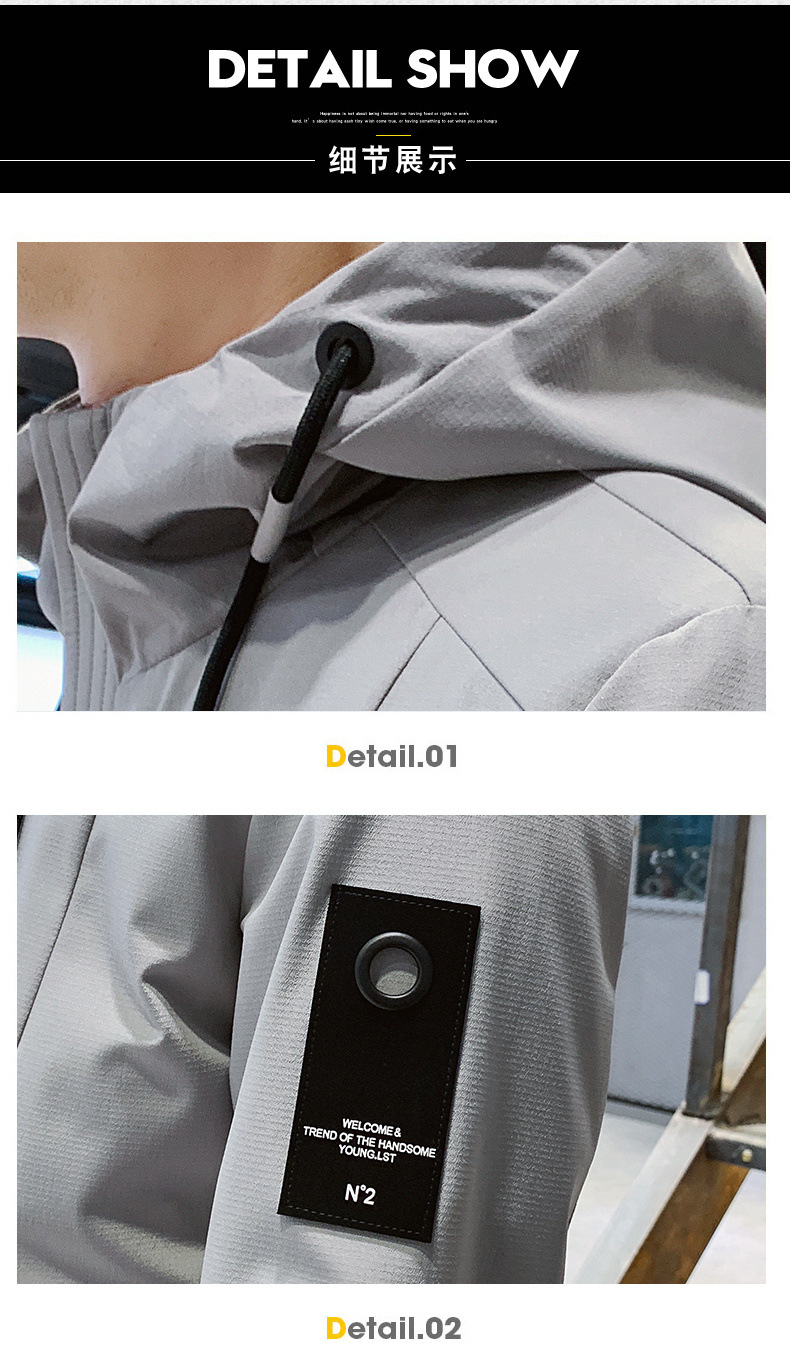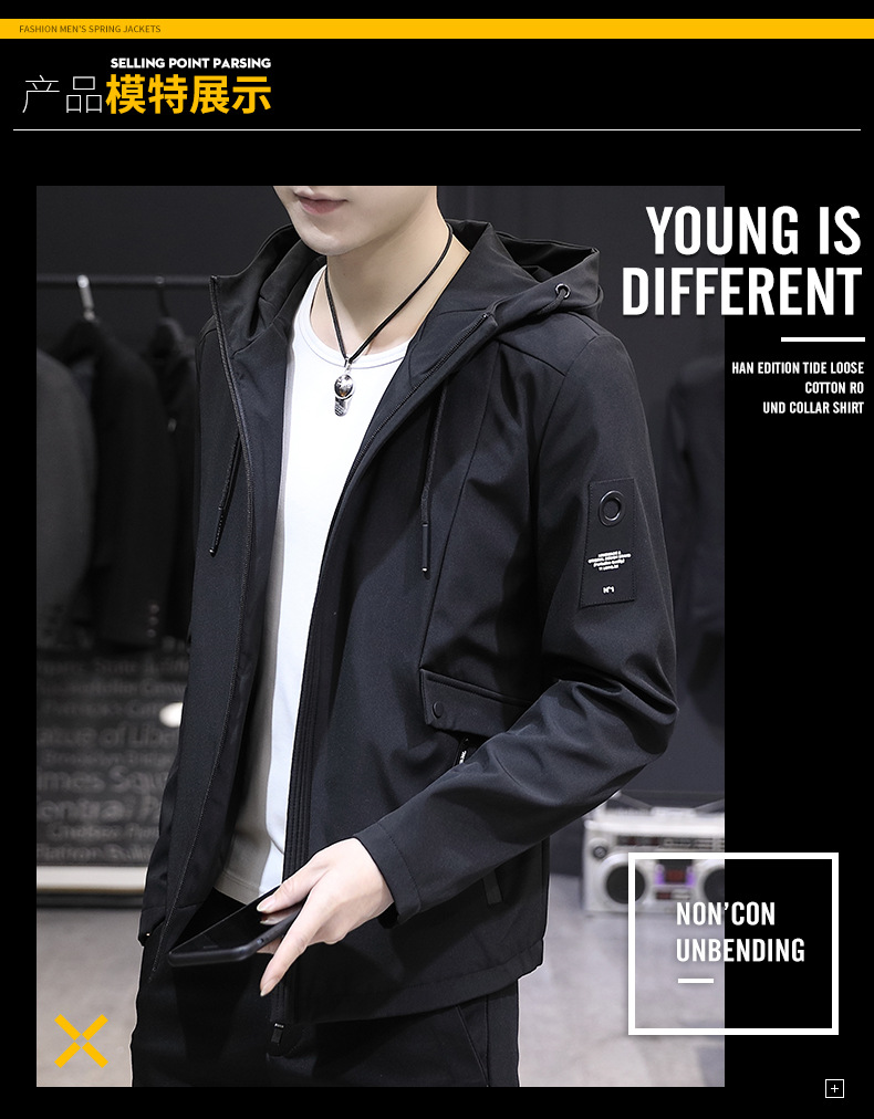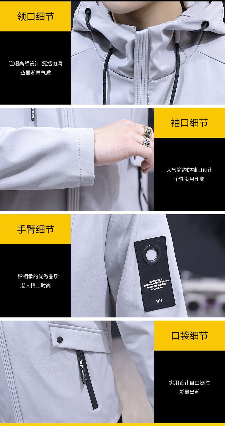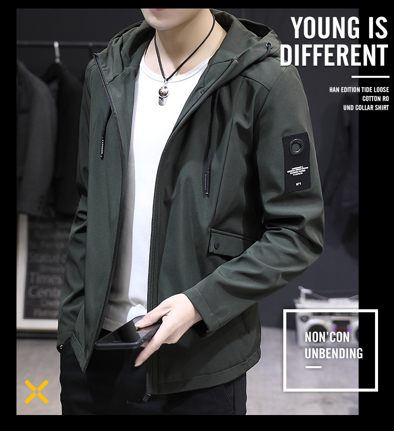 新款男士外套秋季韩版潮流连帽修身青年夹克男防风上衣时尚百搭