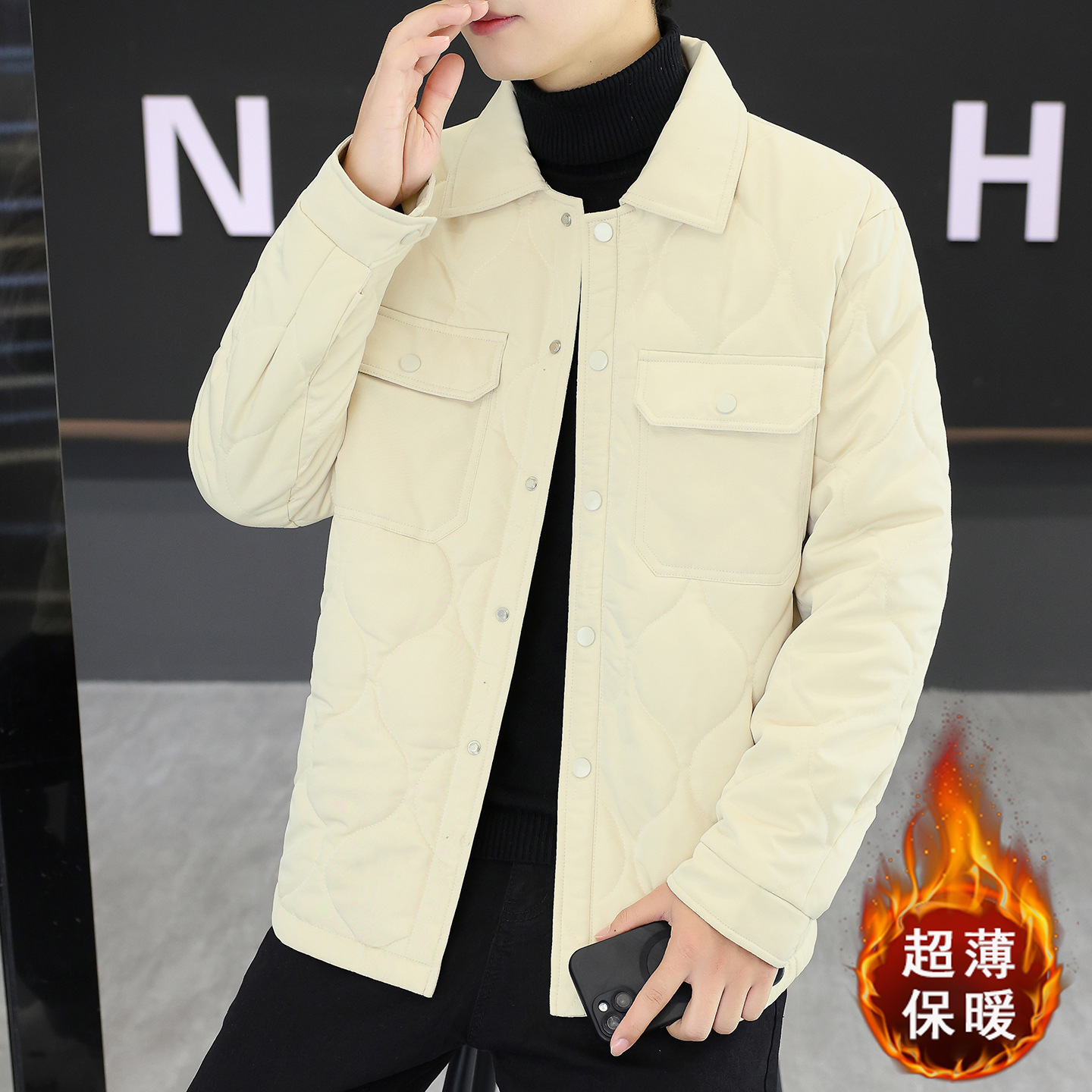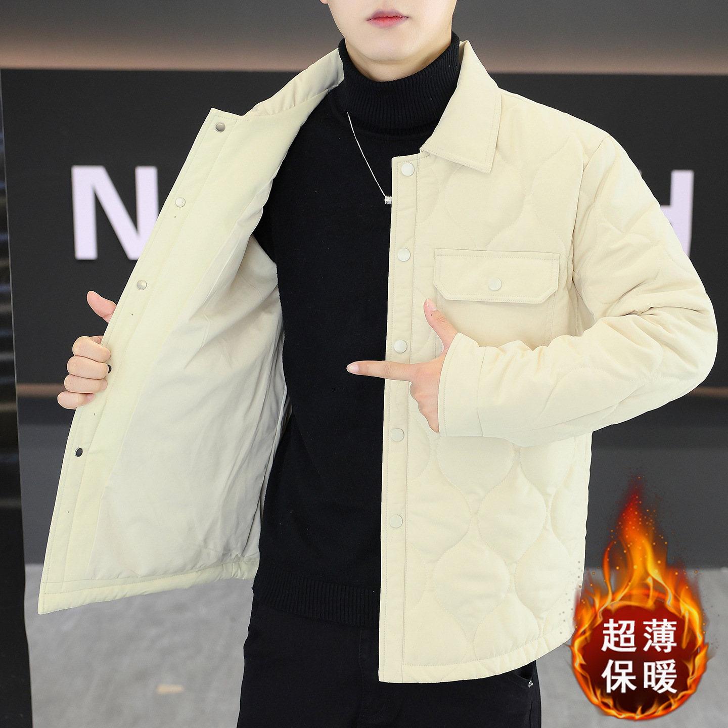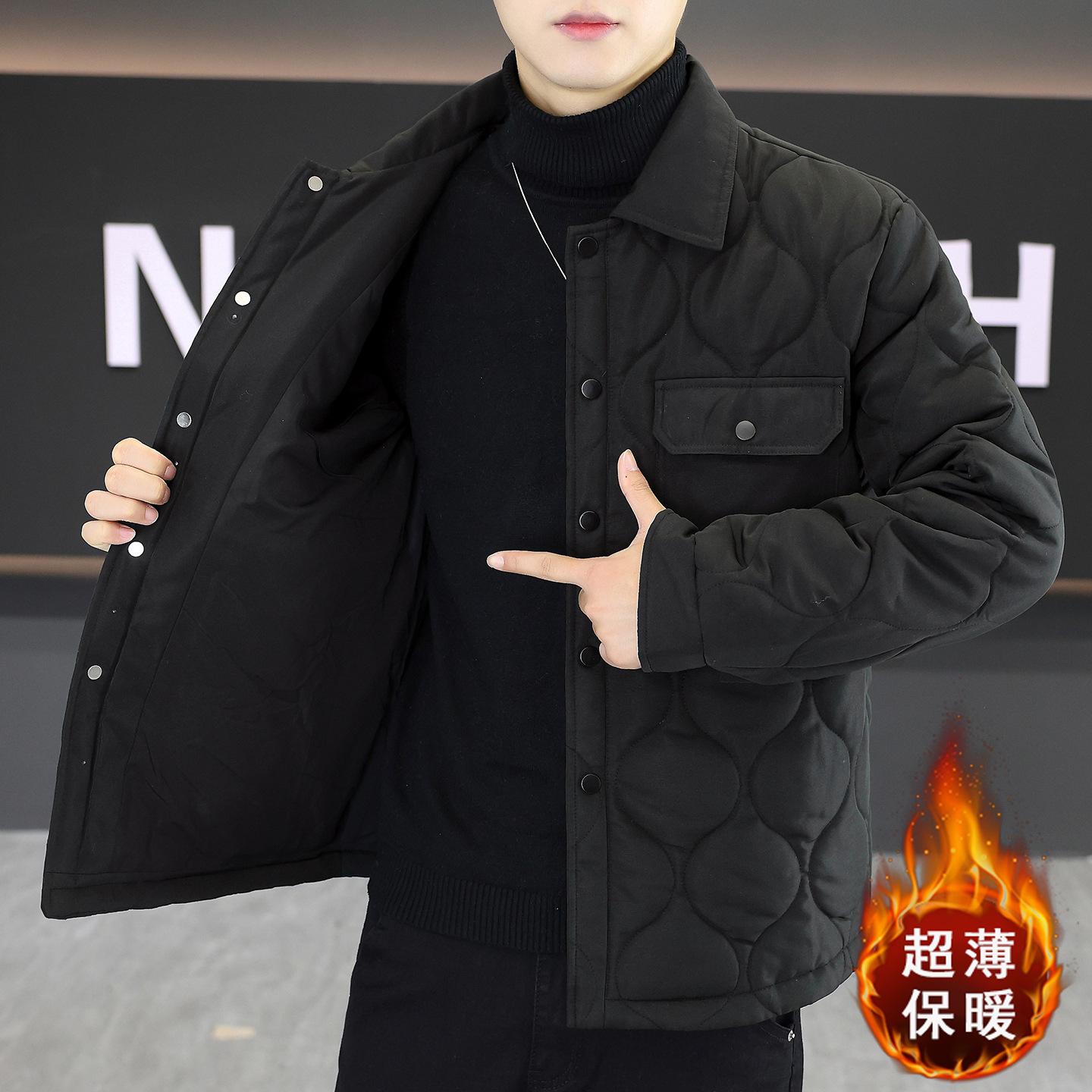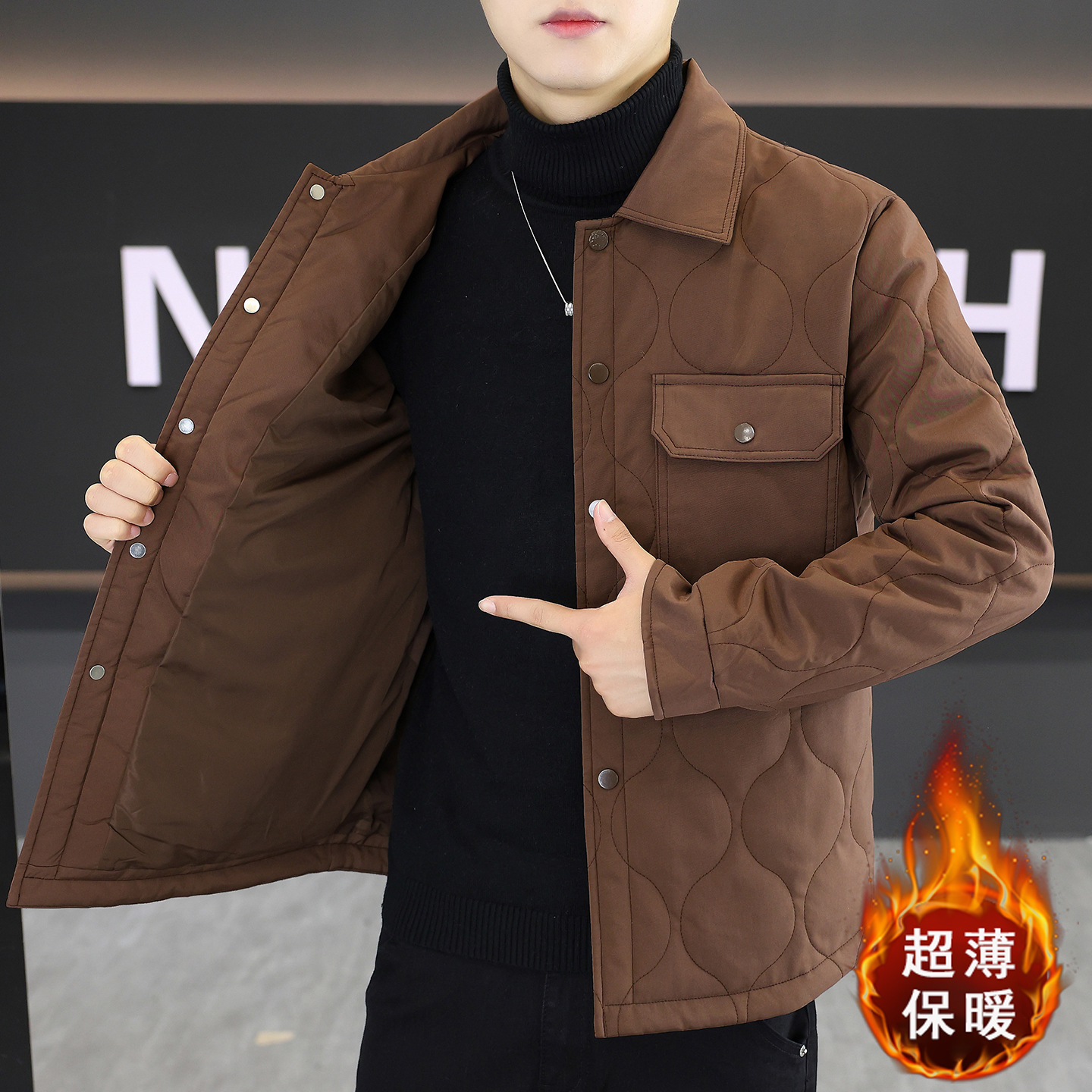 男士翻领棉服2025秋冬新款男装青年时尚休闲纯色简约百搭保暖棉衣
