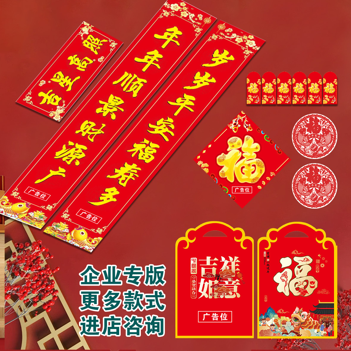 2026马年广告对联定 制银行保险企业大礼包春联现货批发加印logo