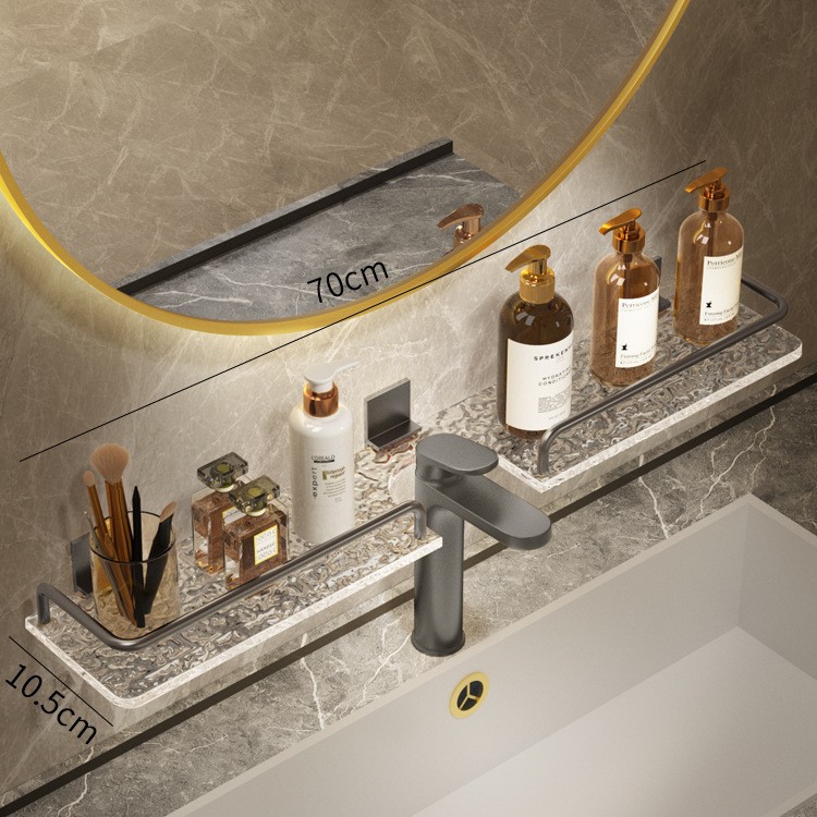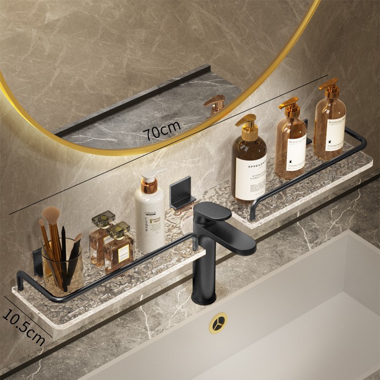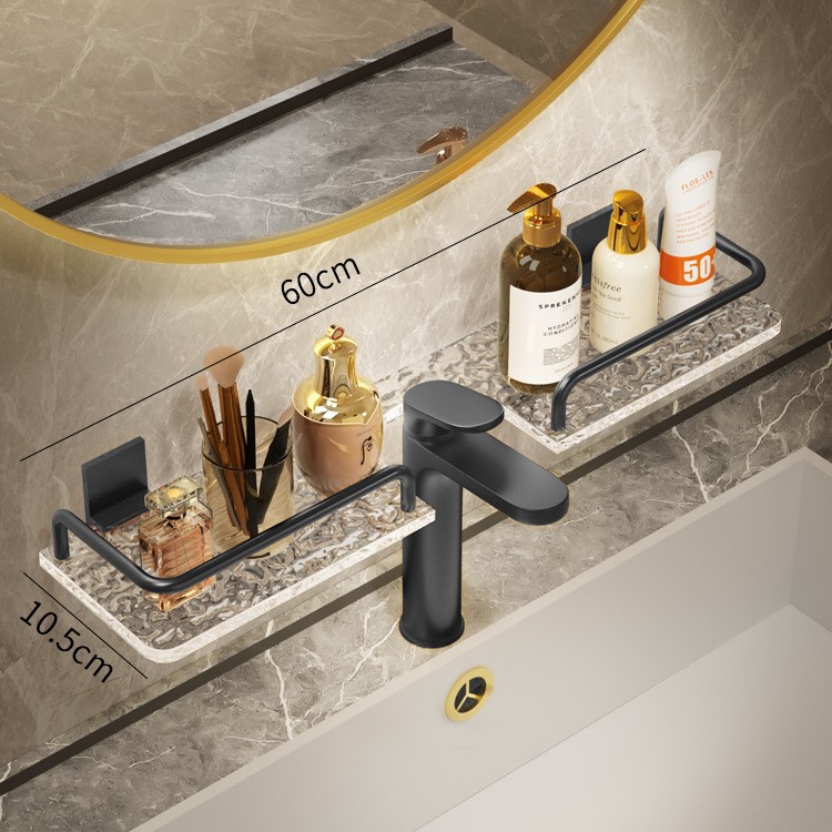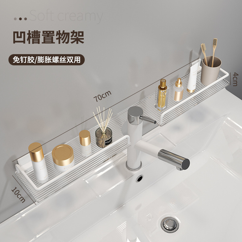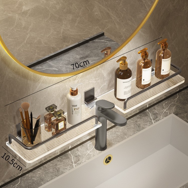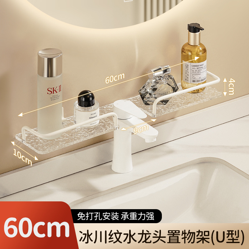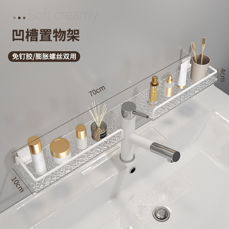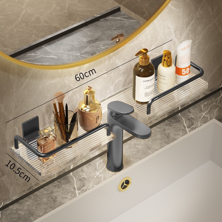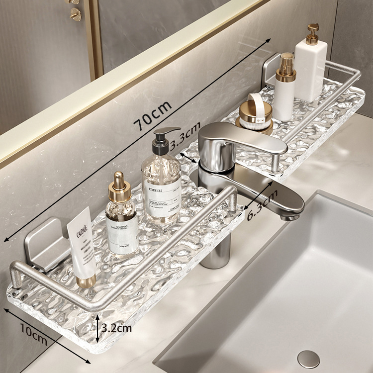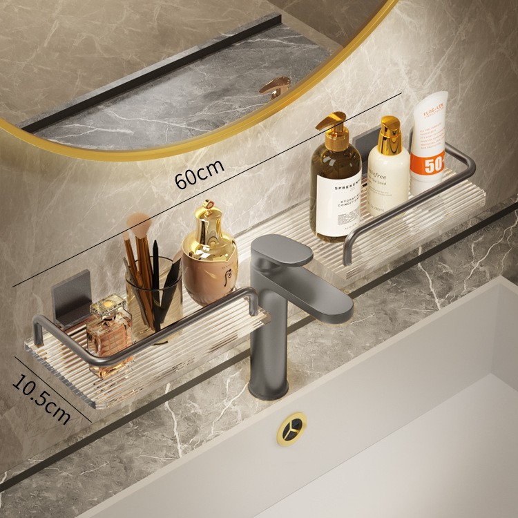 轻奢洗手台收纳架银色洗漱台镜前免打孔亚克力浴室厕所龙头置物架