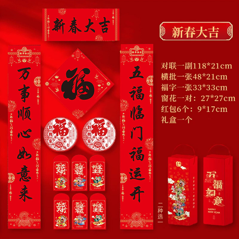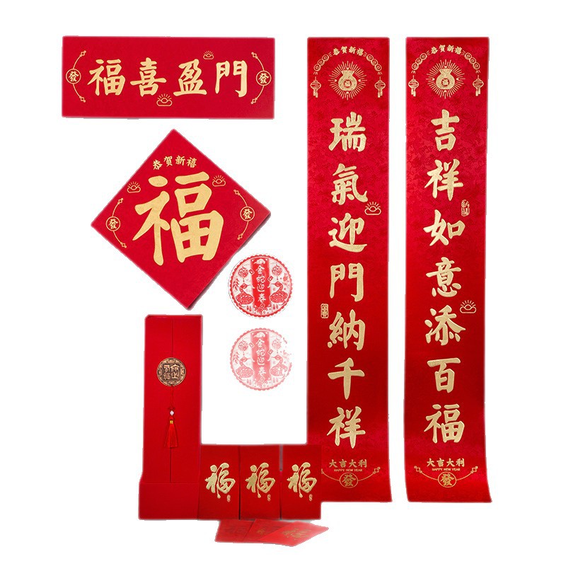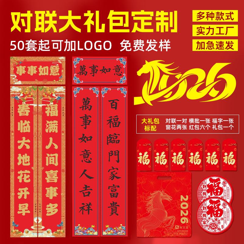 2026对联定制大礼包国风丝印手工异形春联礼盒套装植绒挂抽印广告