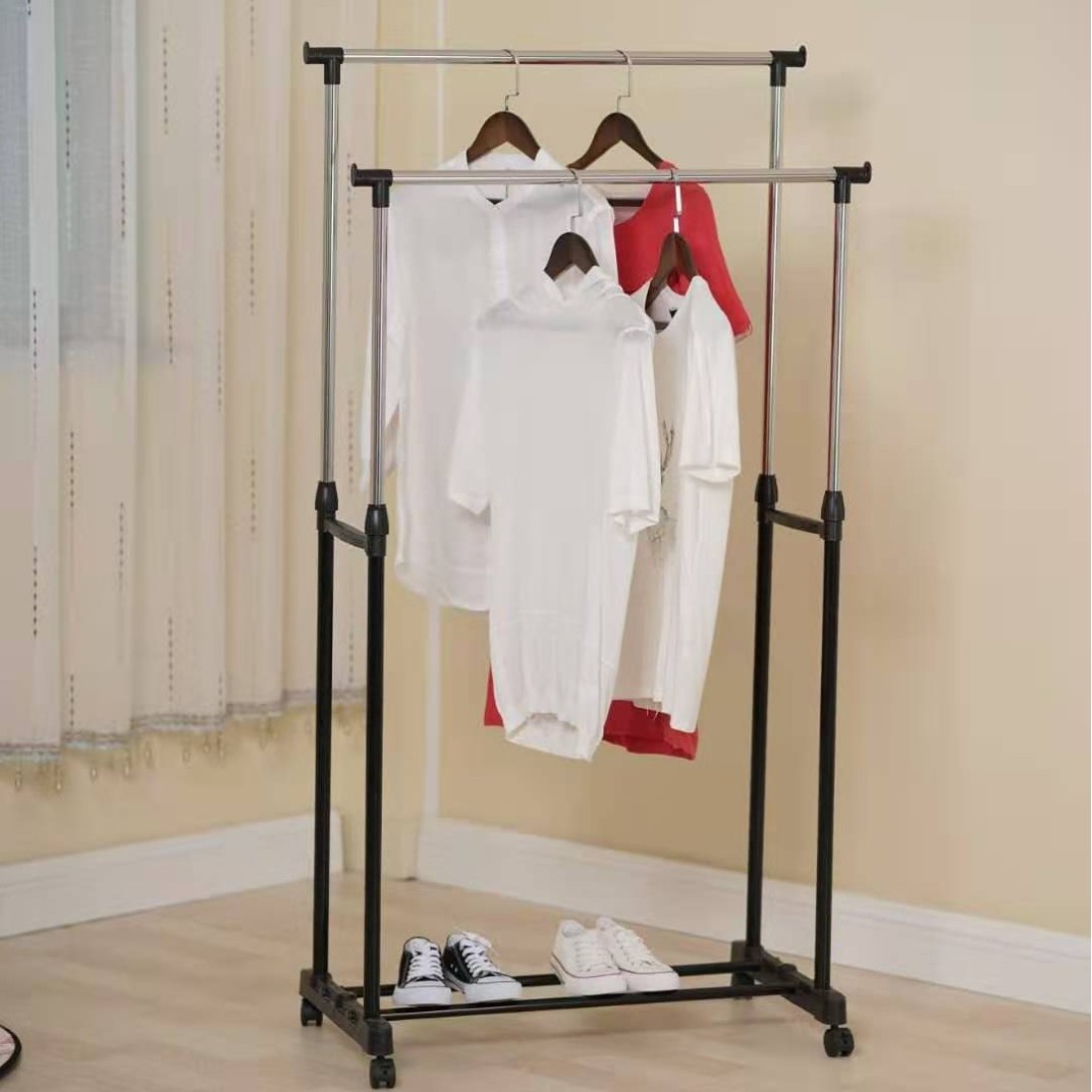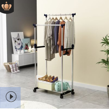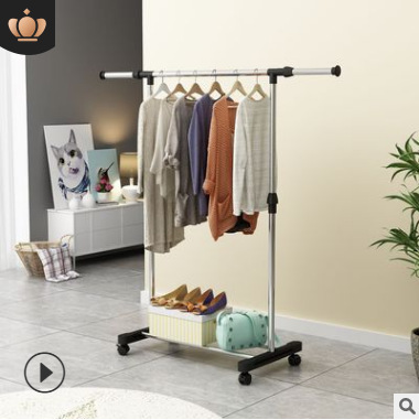 晾衣架不锈钢双杆升降式晾衣架落地衣架家用伸缩晒衣架移动置物架