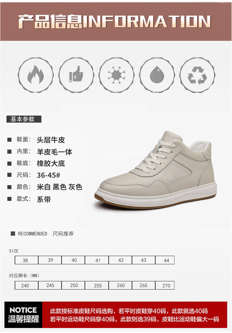 头层牛皮冬季新款羊毛男士棉鞋真皮加绒保暖休闲运动男款加厚男鞋