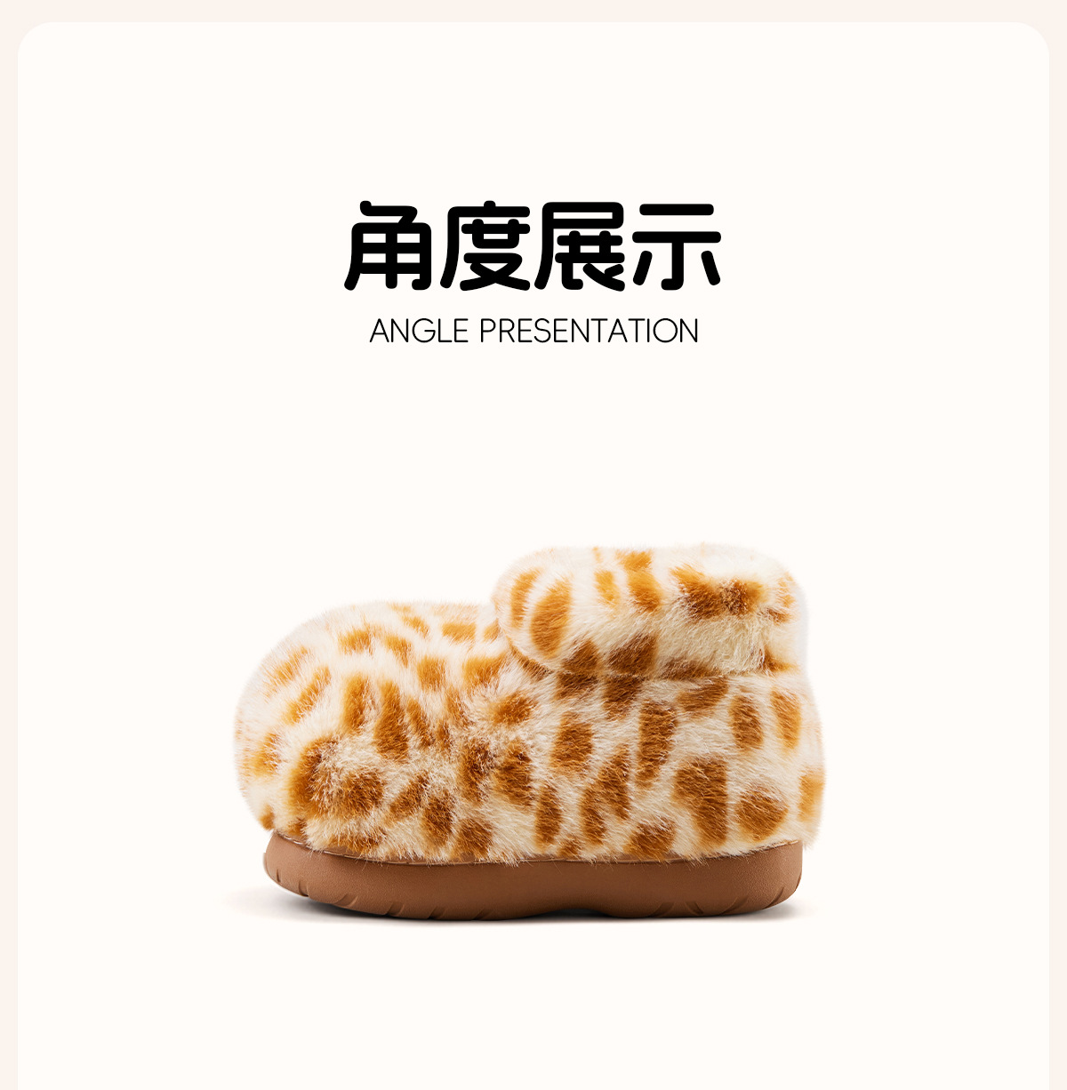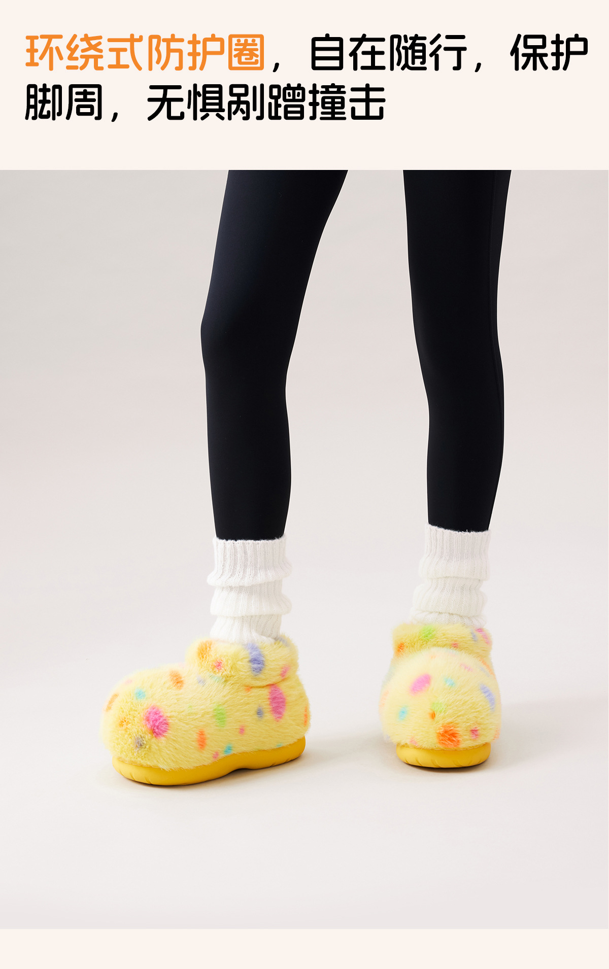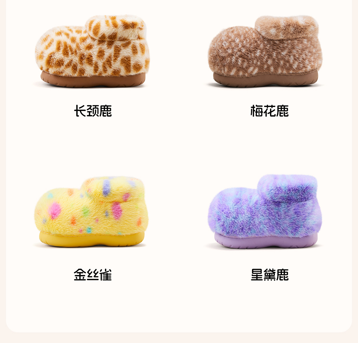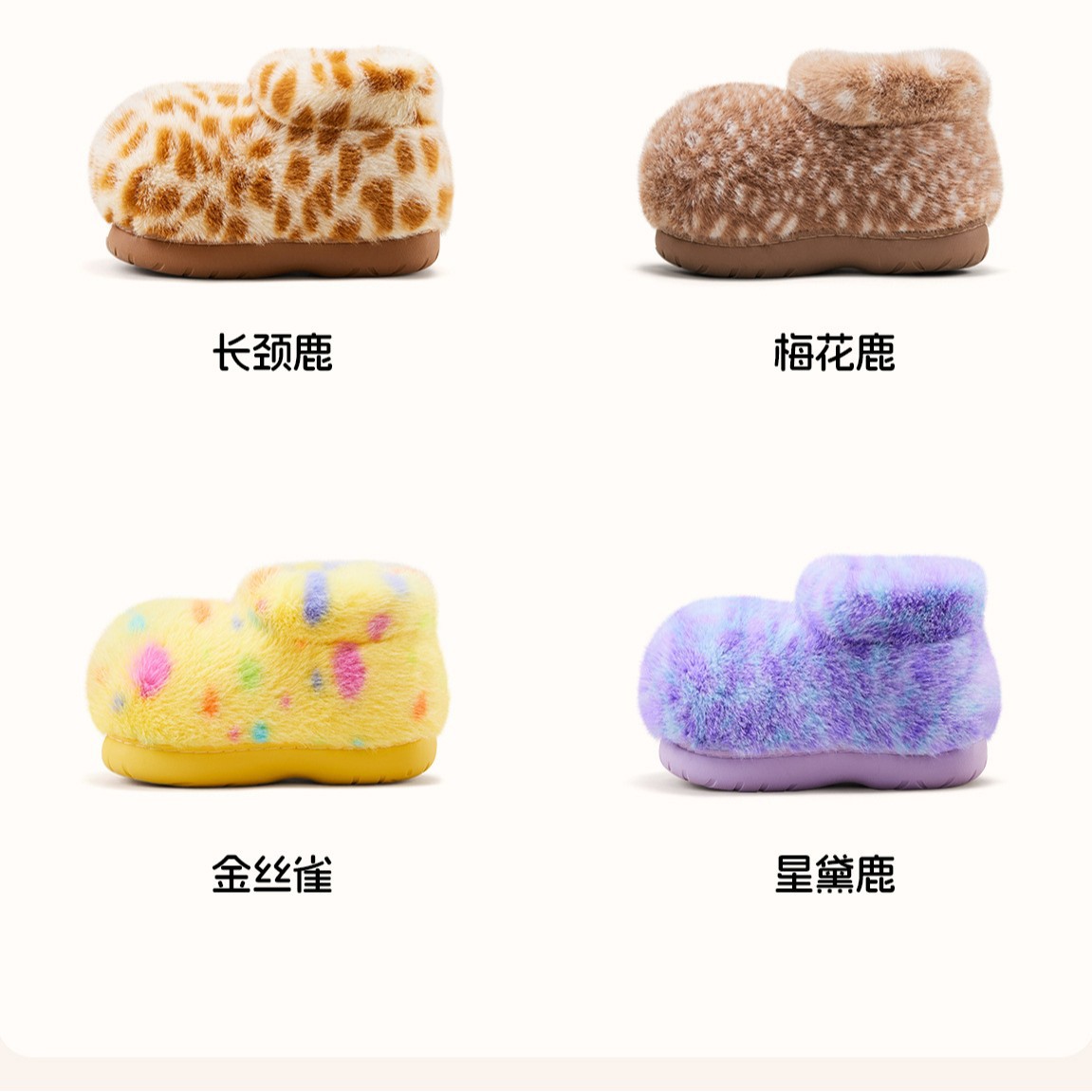 萌物圆亲子棉靴女士冬季加绒加厚保暖居家居室内情侣毛毛棉拖鞋男