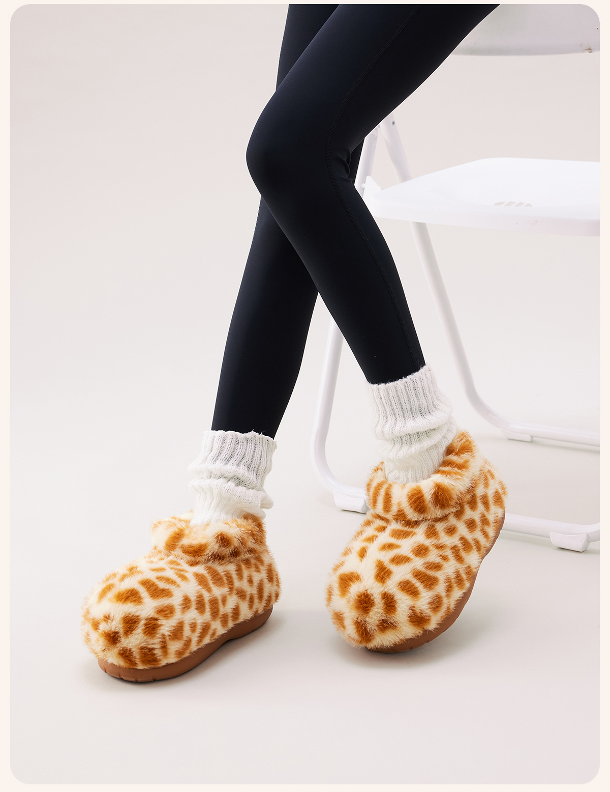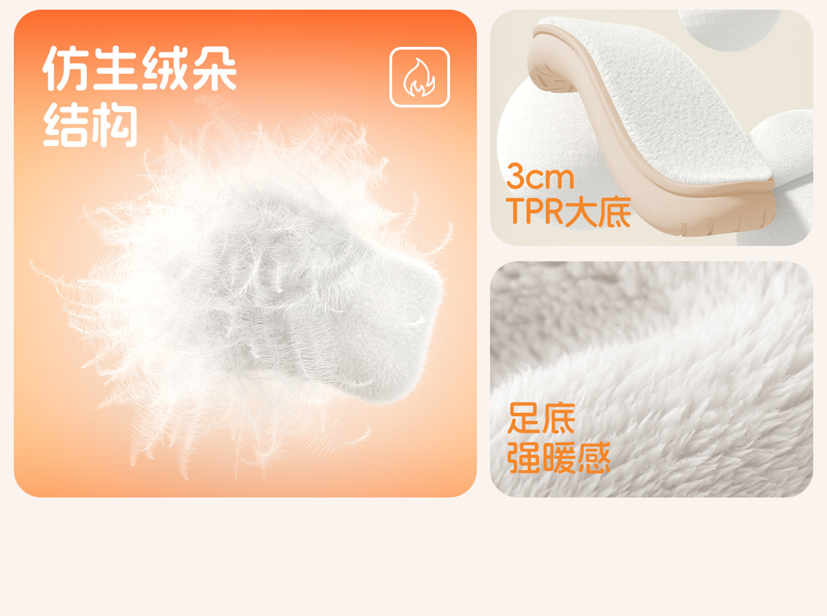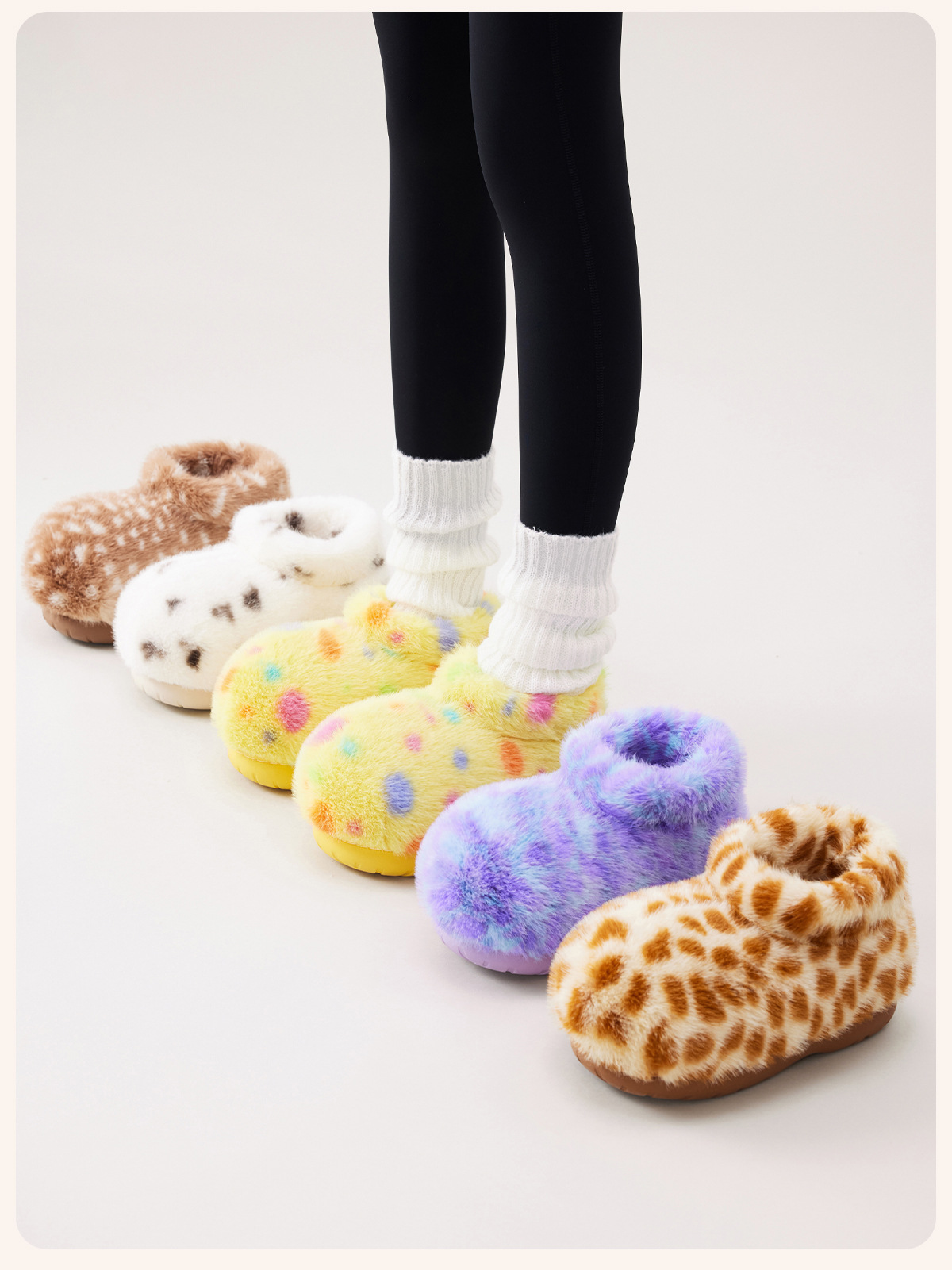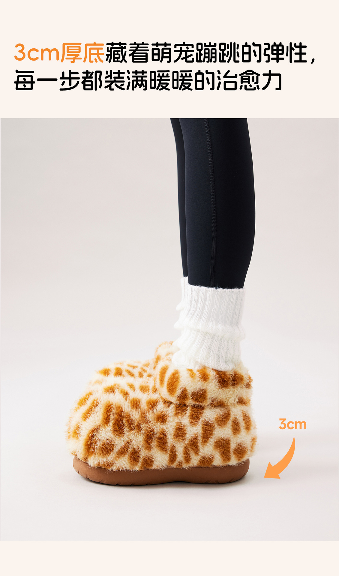 萌物圆亲子棉靴女士冬季加绒加厚保暖居家居室内情侣毛毛棉拖鞋男