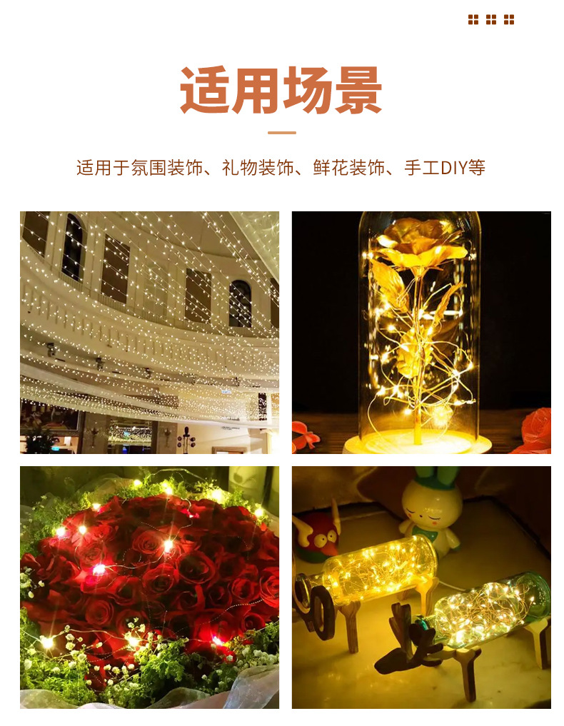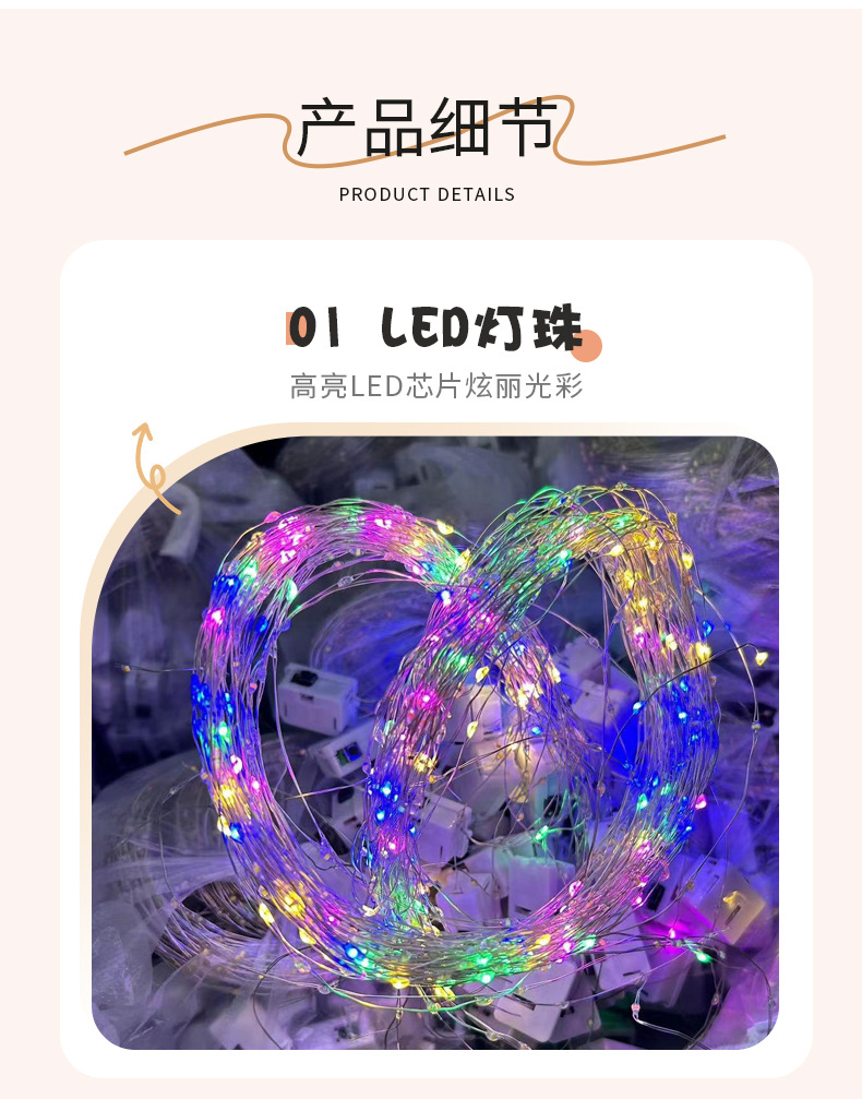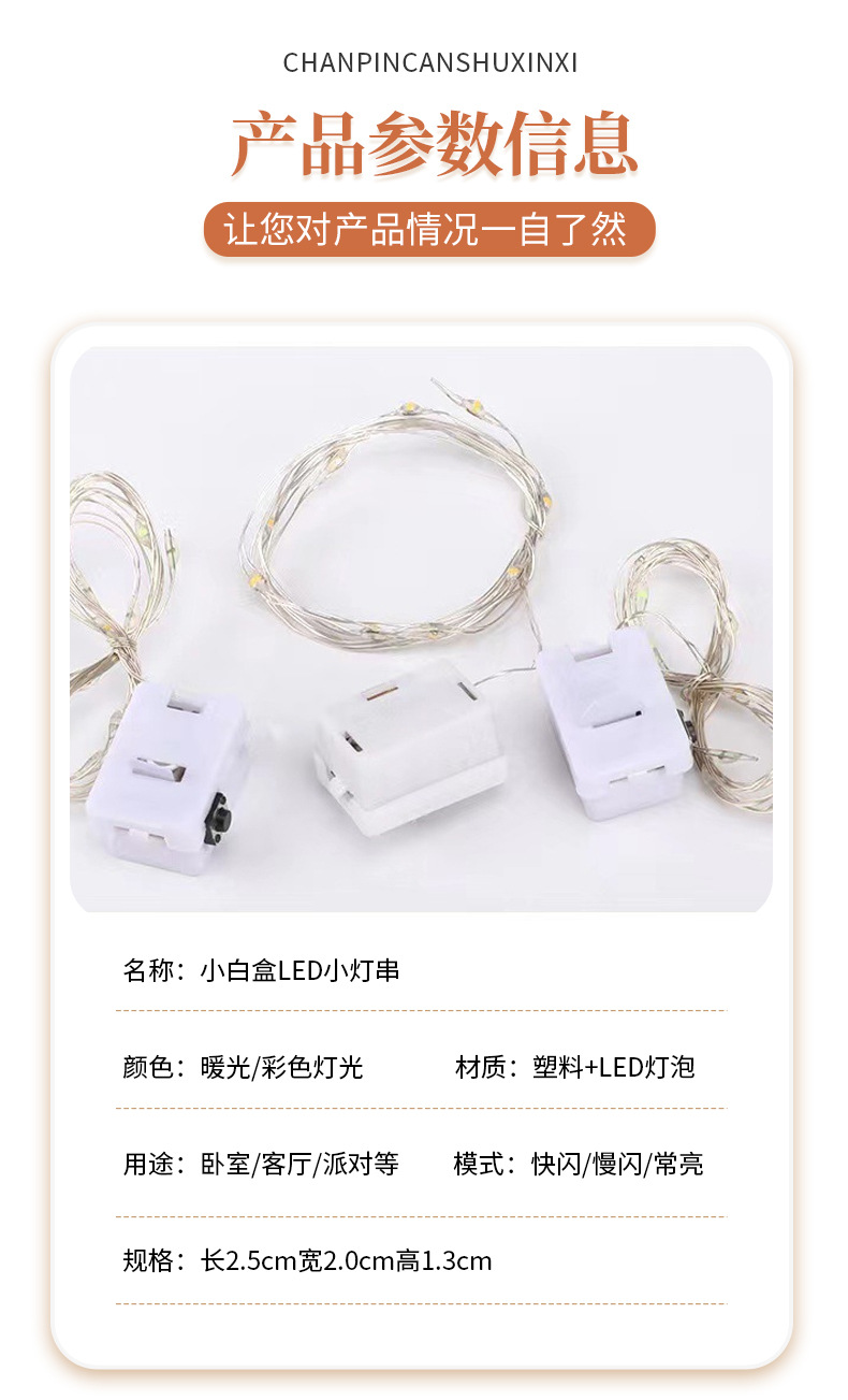 LED小白盒灯带灯串铜线发箍装饰灯礼盒鲜花圣诞灯彩灯三档调光