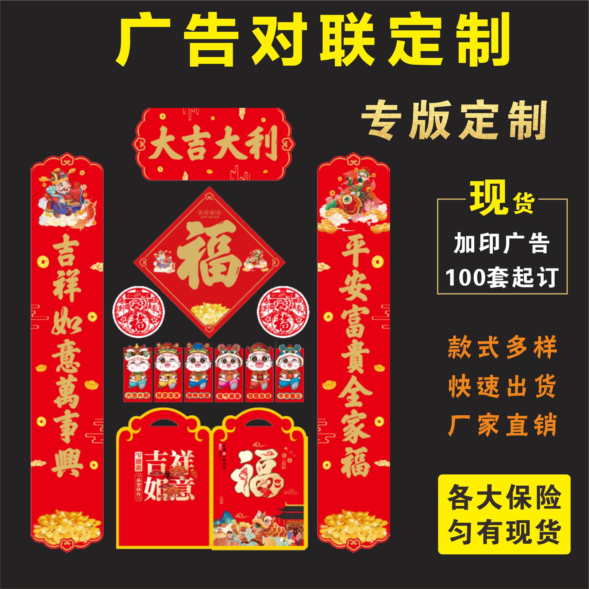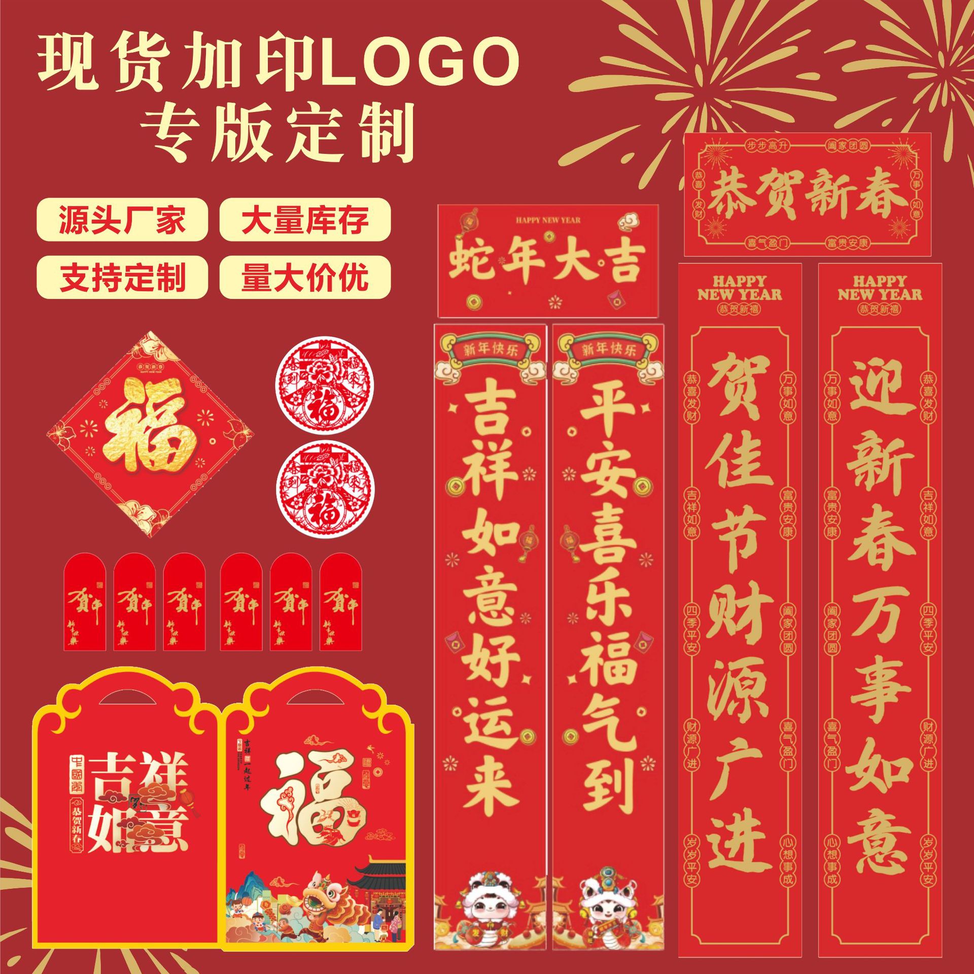 2026广告对联蛇年烫金礼盒植绒春联春节福字大礼包印刷logo