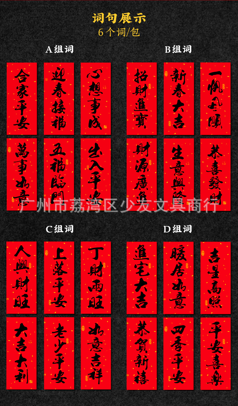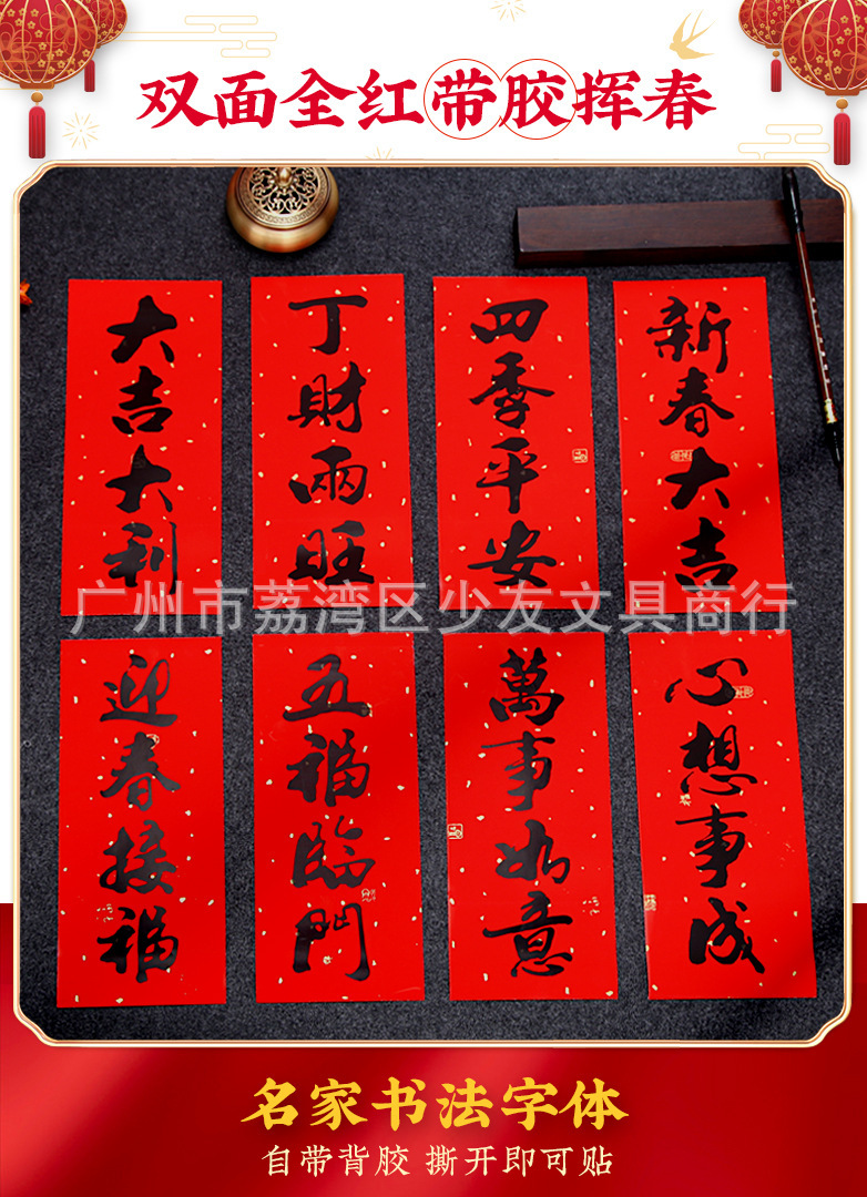 2026马年黑字书法自粘挥春春节晖春现货晒不易褪色带胶门贴