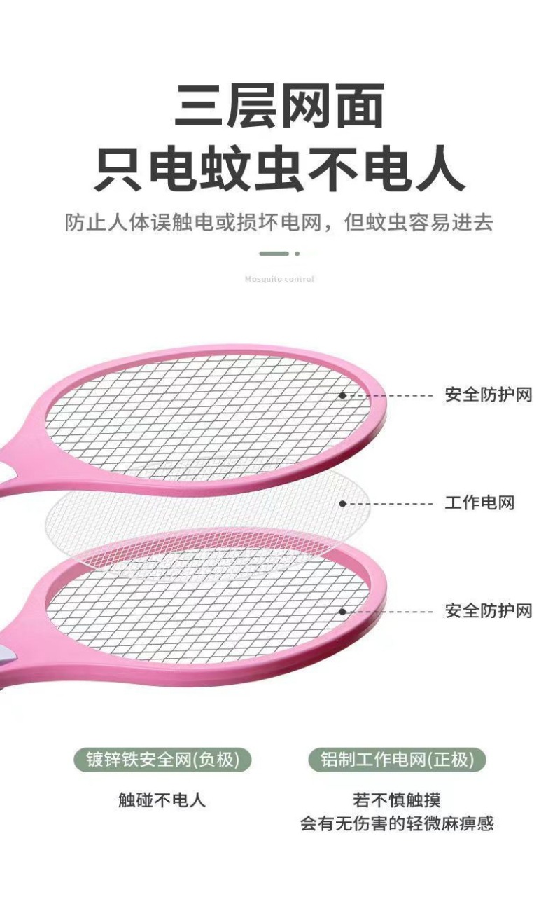 家用电蚊拍强力耐用苍蝇拍三层安全电网可充电款灭蚊拍