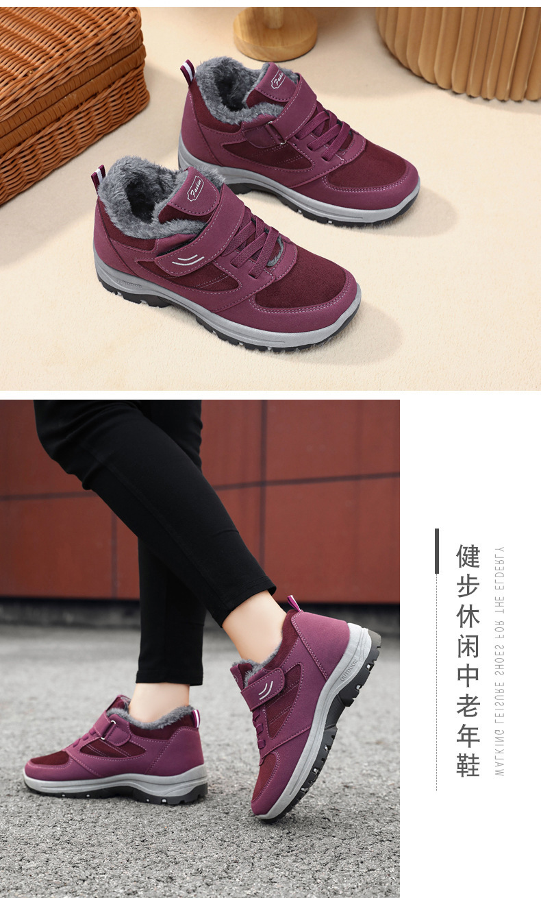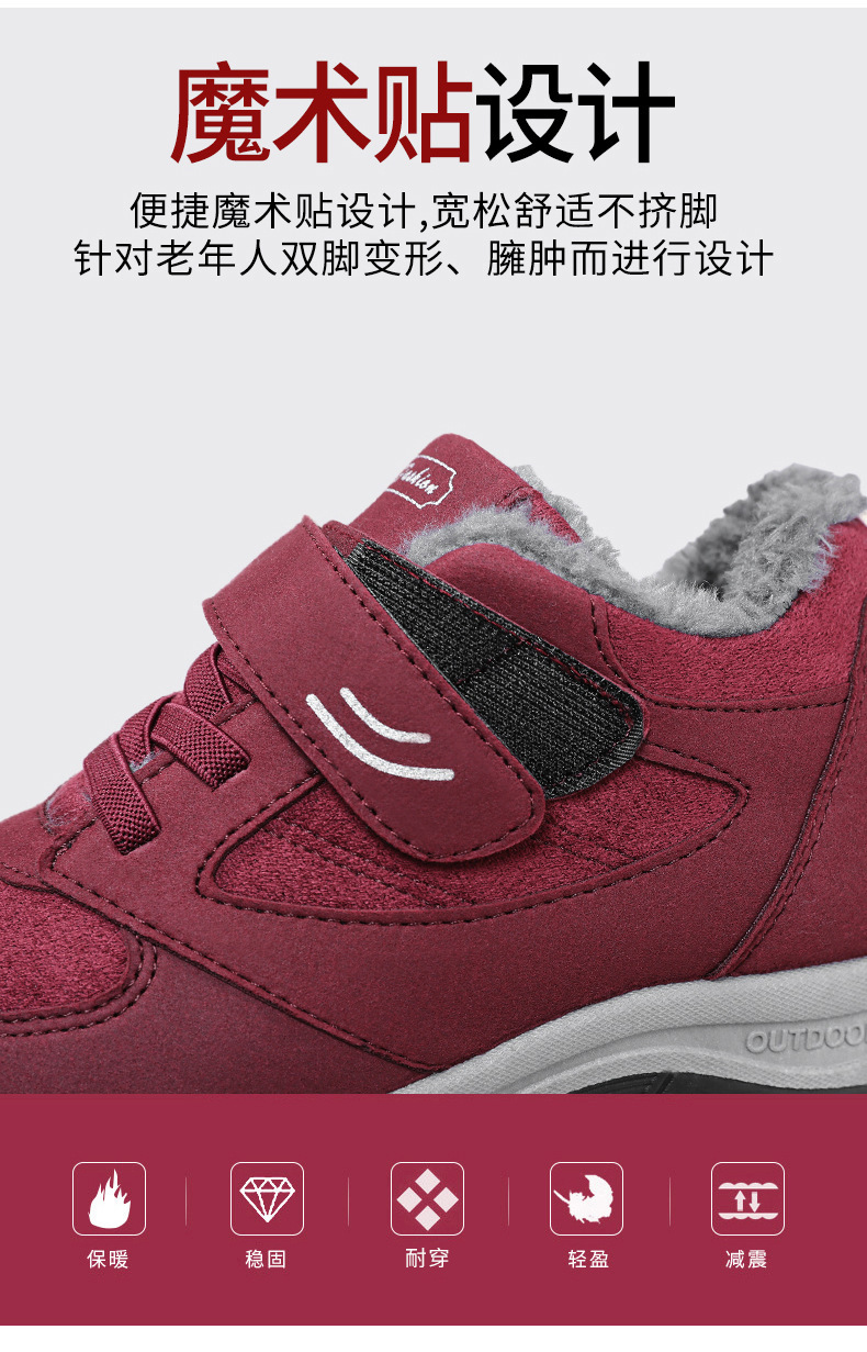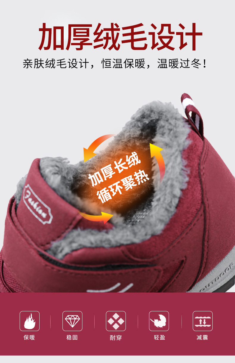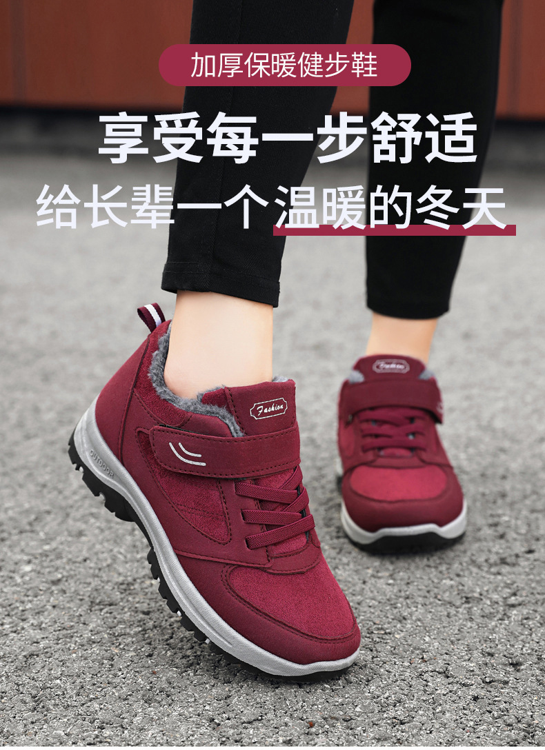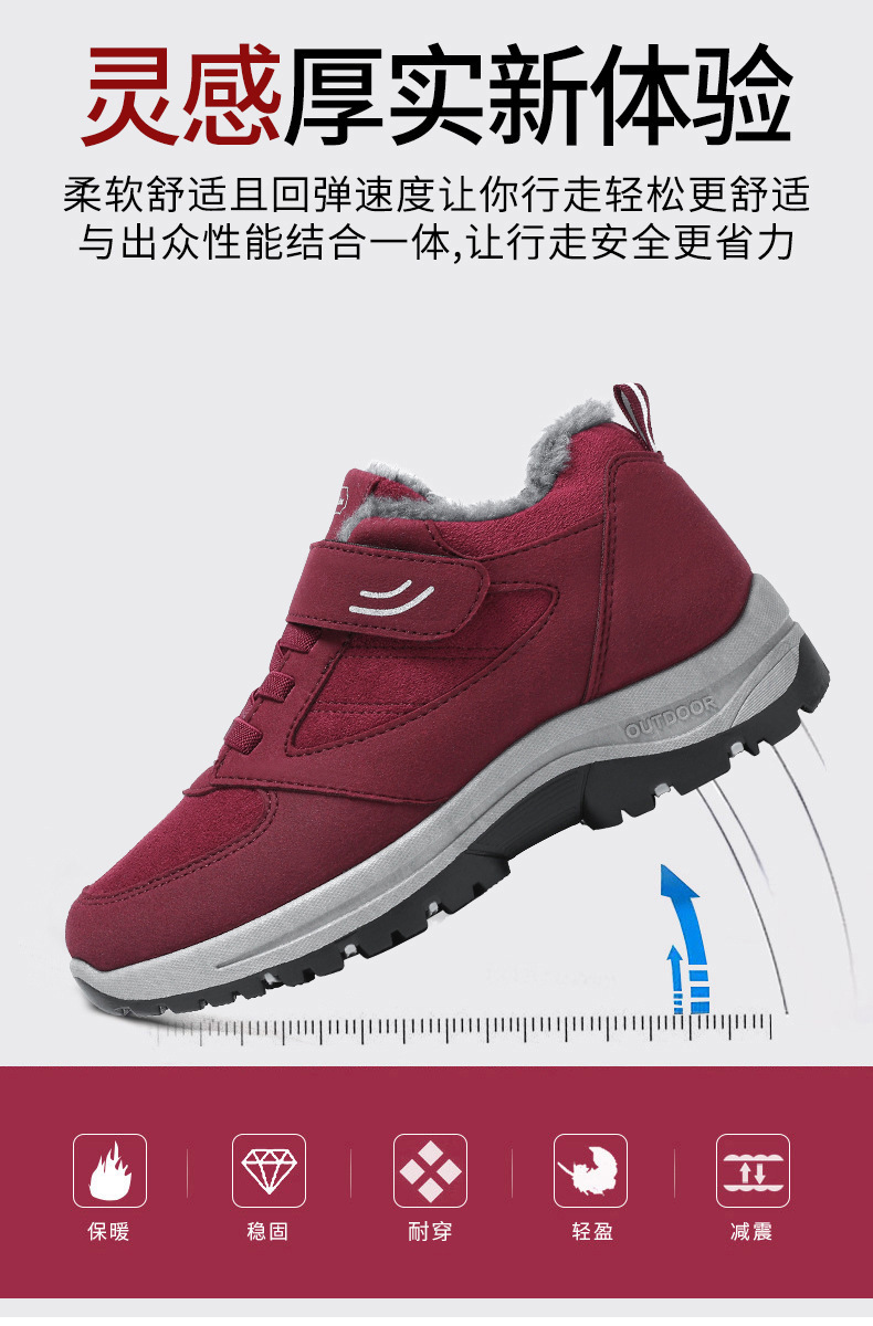 冬季女士超高跟棉靴加绒加厚保暖老人中老年健步男女同款旅游鞋