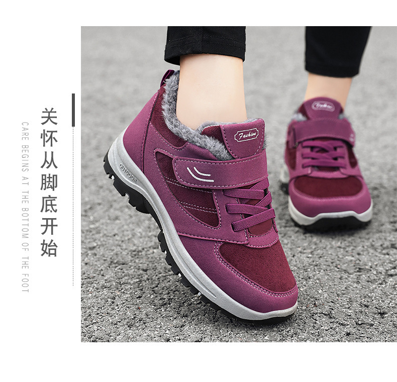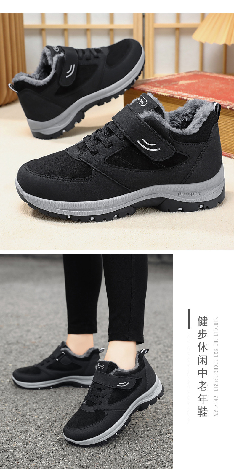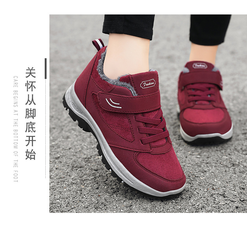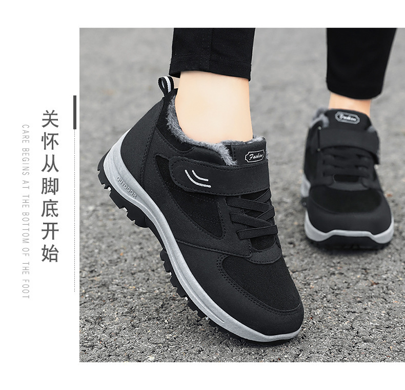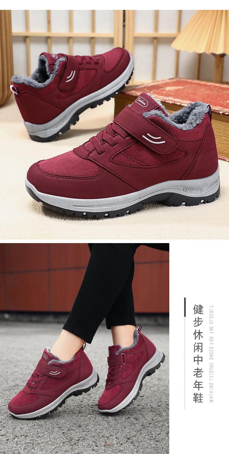 冬季女士超高跟棉靴加绒加厚保暖老人中老年健步男女同款旅游鞋