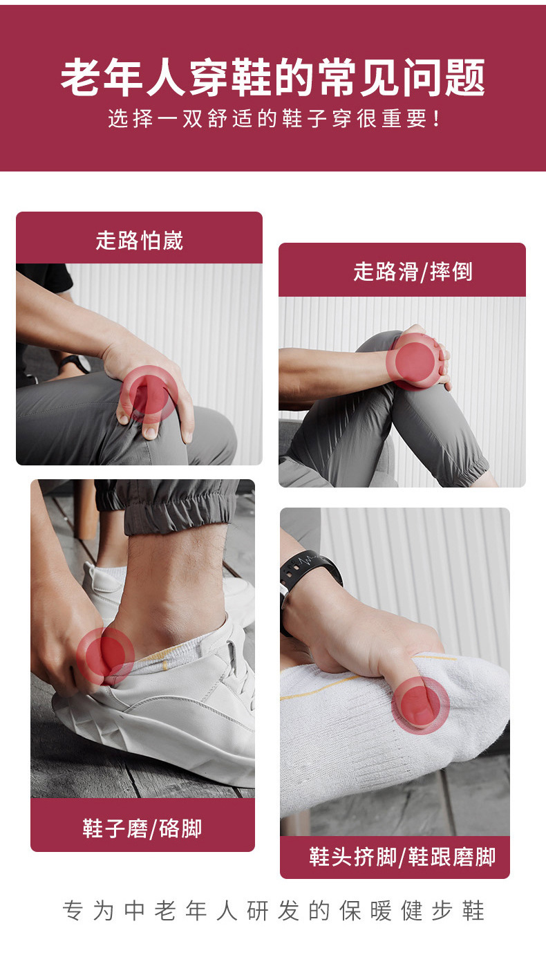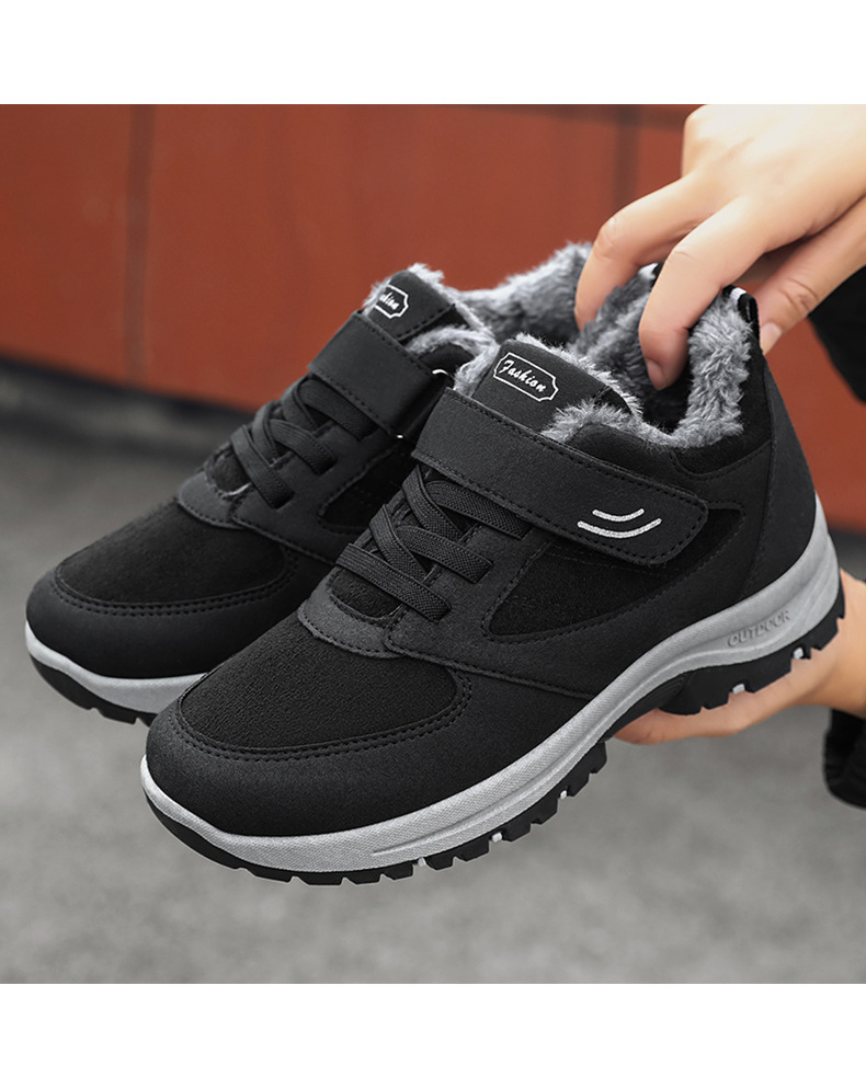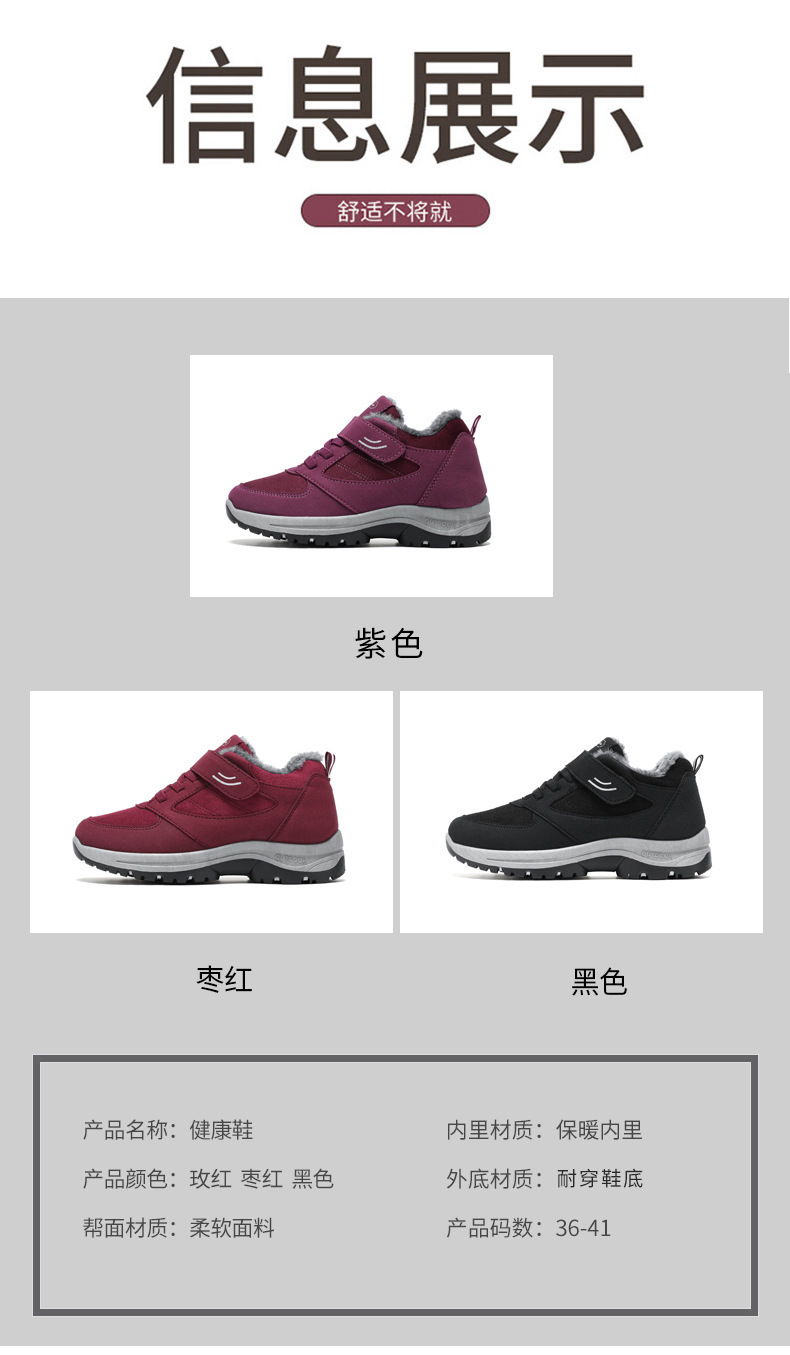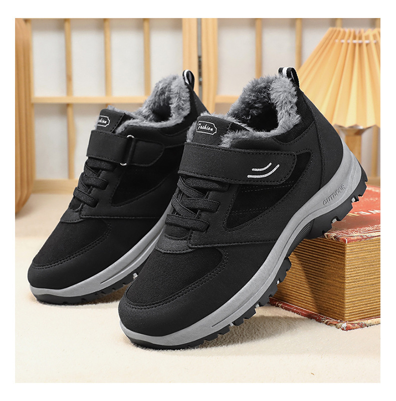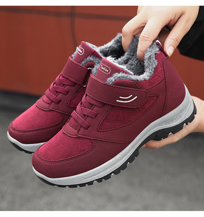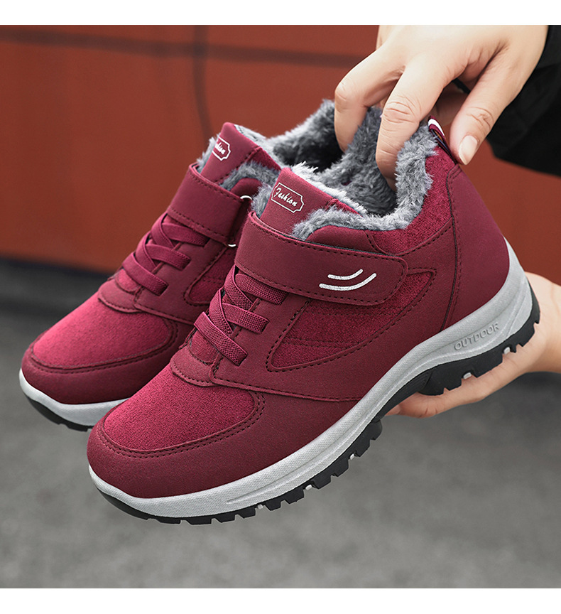 冬季女士超高跟棉靴加绒加厚保暖老人中老年健步男女同款旅游鞋