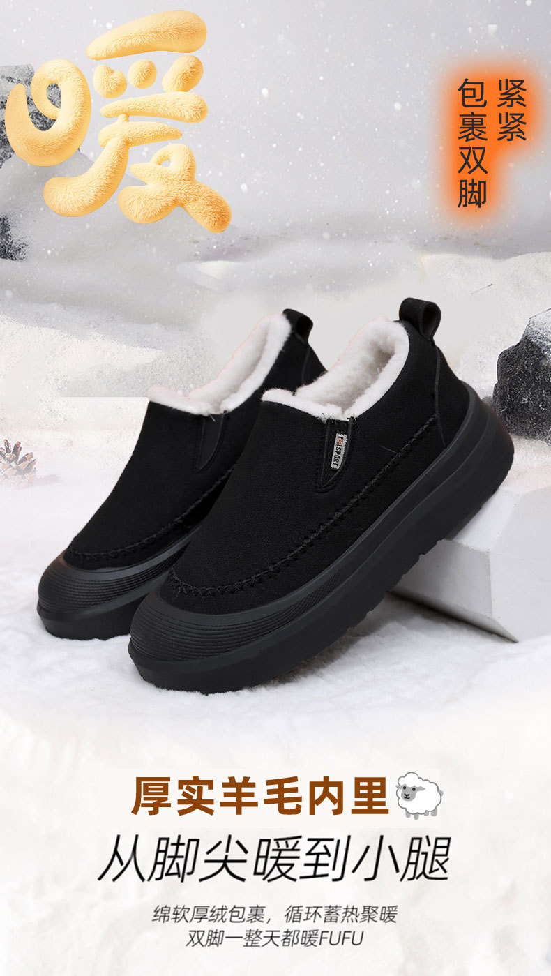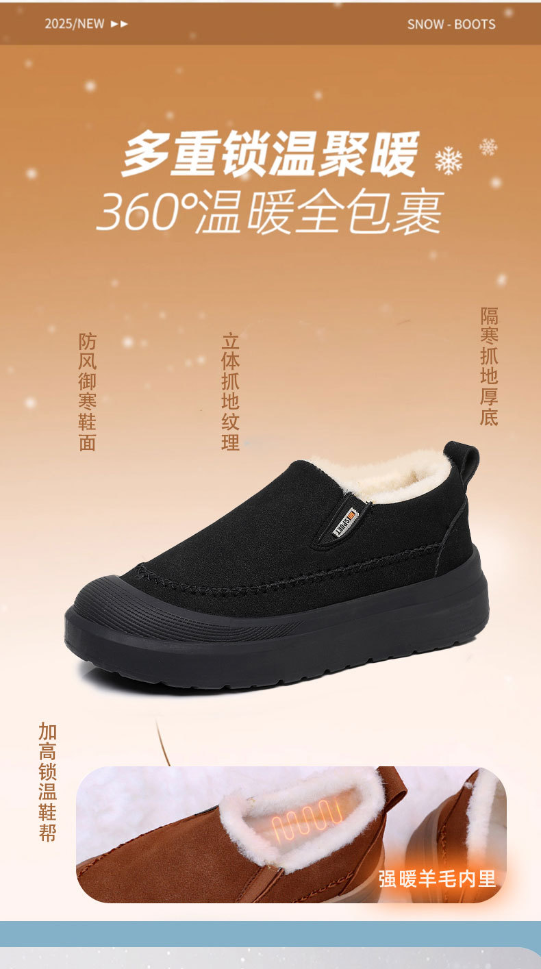 冬季新款棉鞋男鞋加厚底防滑雪地靴加绒一脚蹬软底不累脚户外棉靴