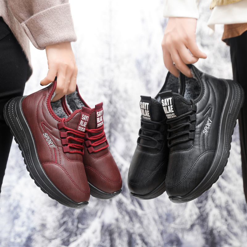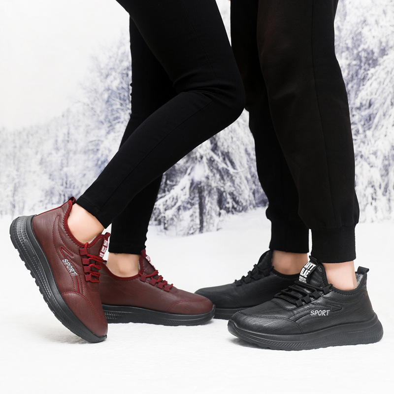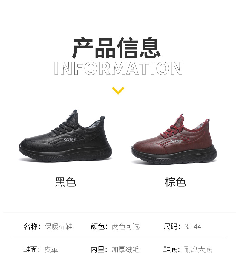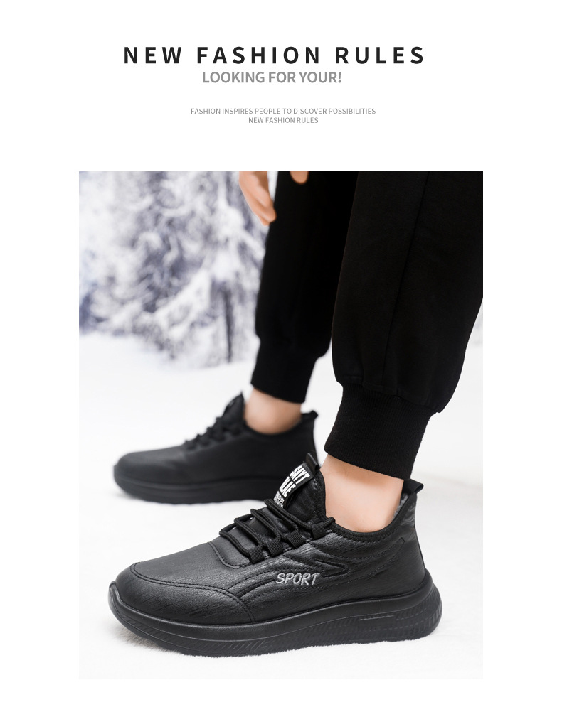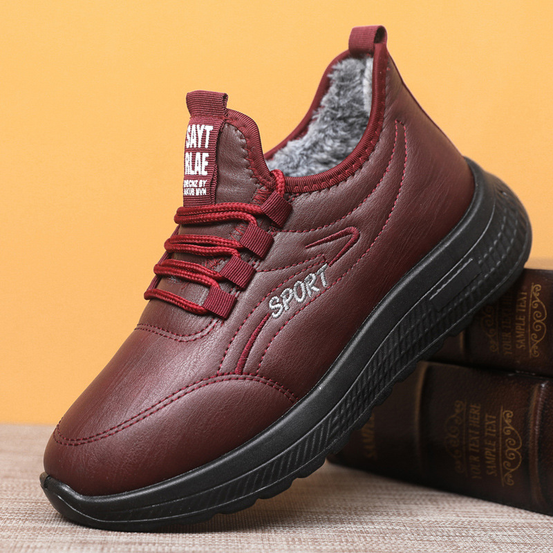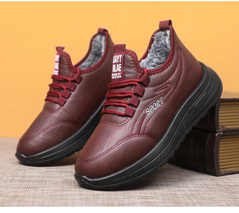 棉鞋男冬季加绒保暖运动休闲鞋皮面防水防滑棉鞋爸爸鞋 妈妈鞋