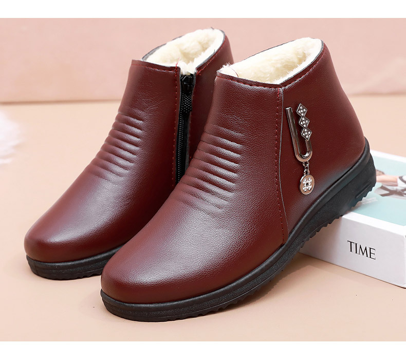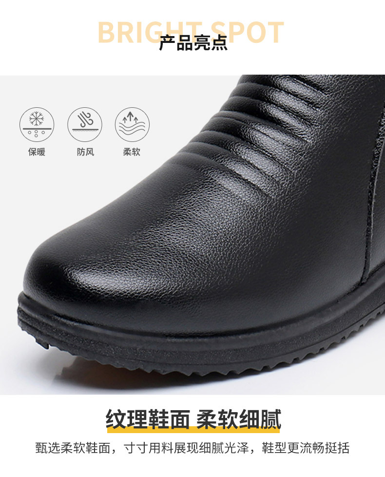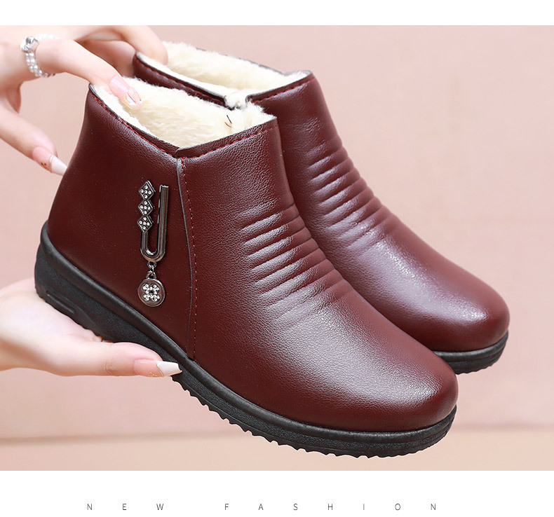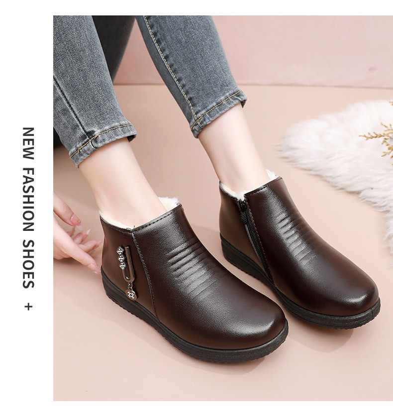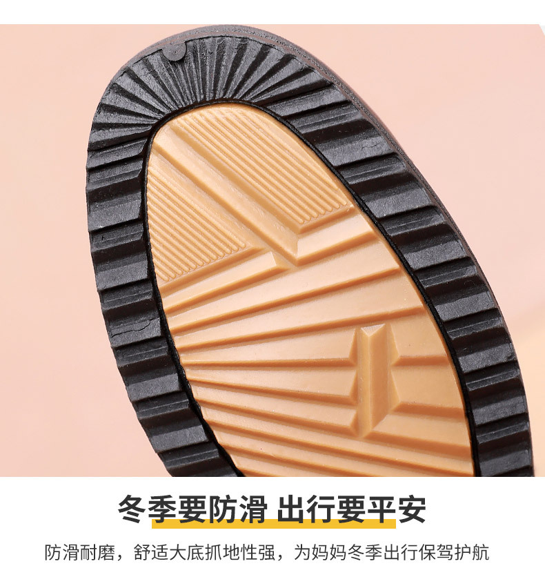 冬季妈妈鞋老人棉鞋软底中老年短靴女加绒保暖靴子平底中年棉皮鞋