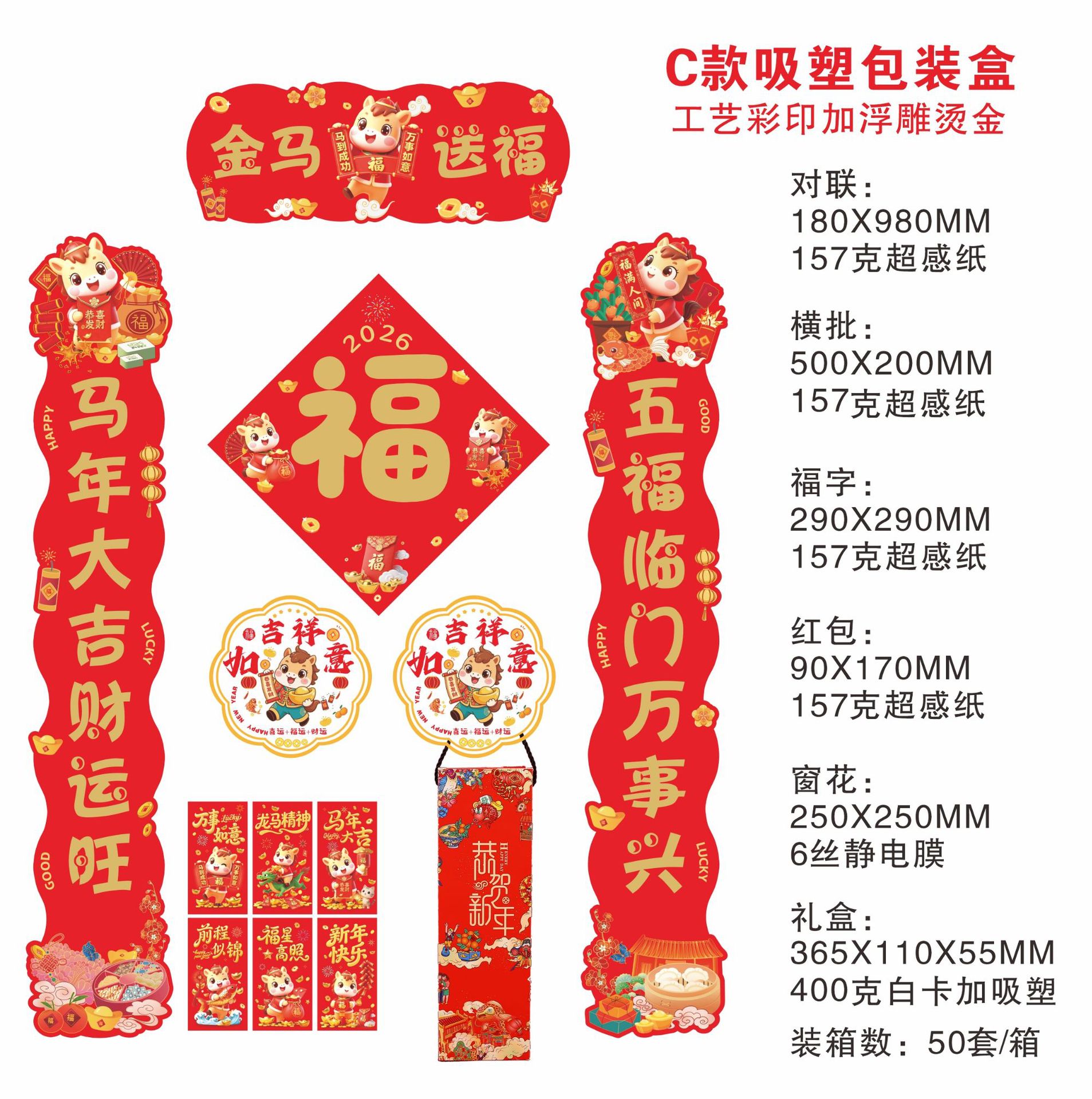 2026马对联定制故宫异形烫金大礼包专版植绒广告春联礼盒印logo