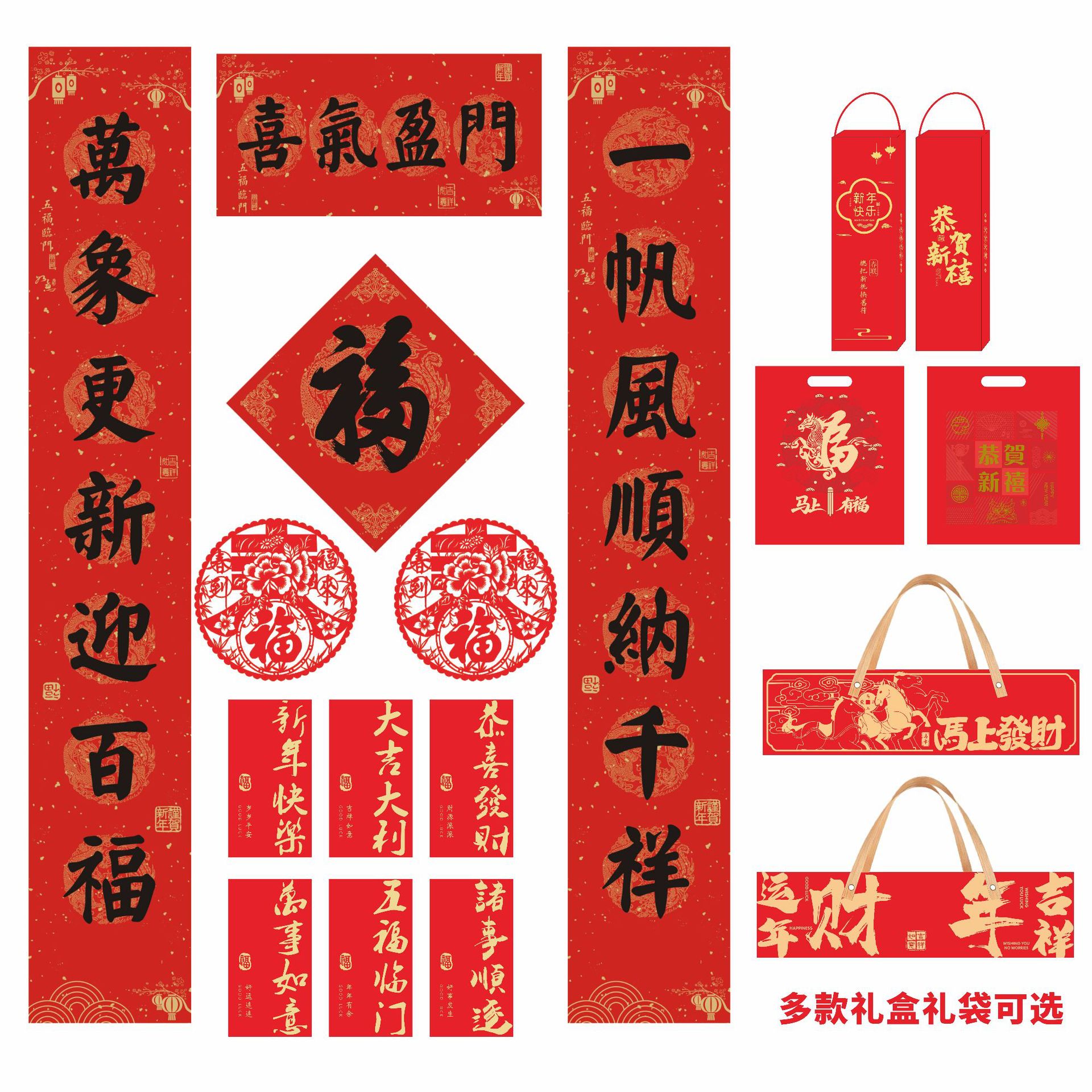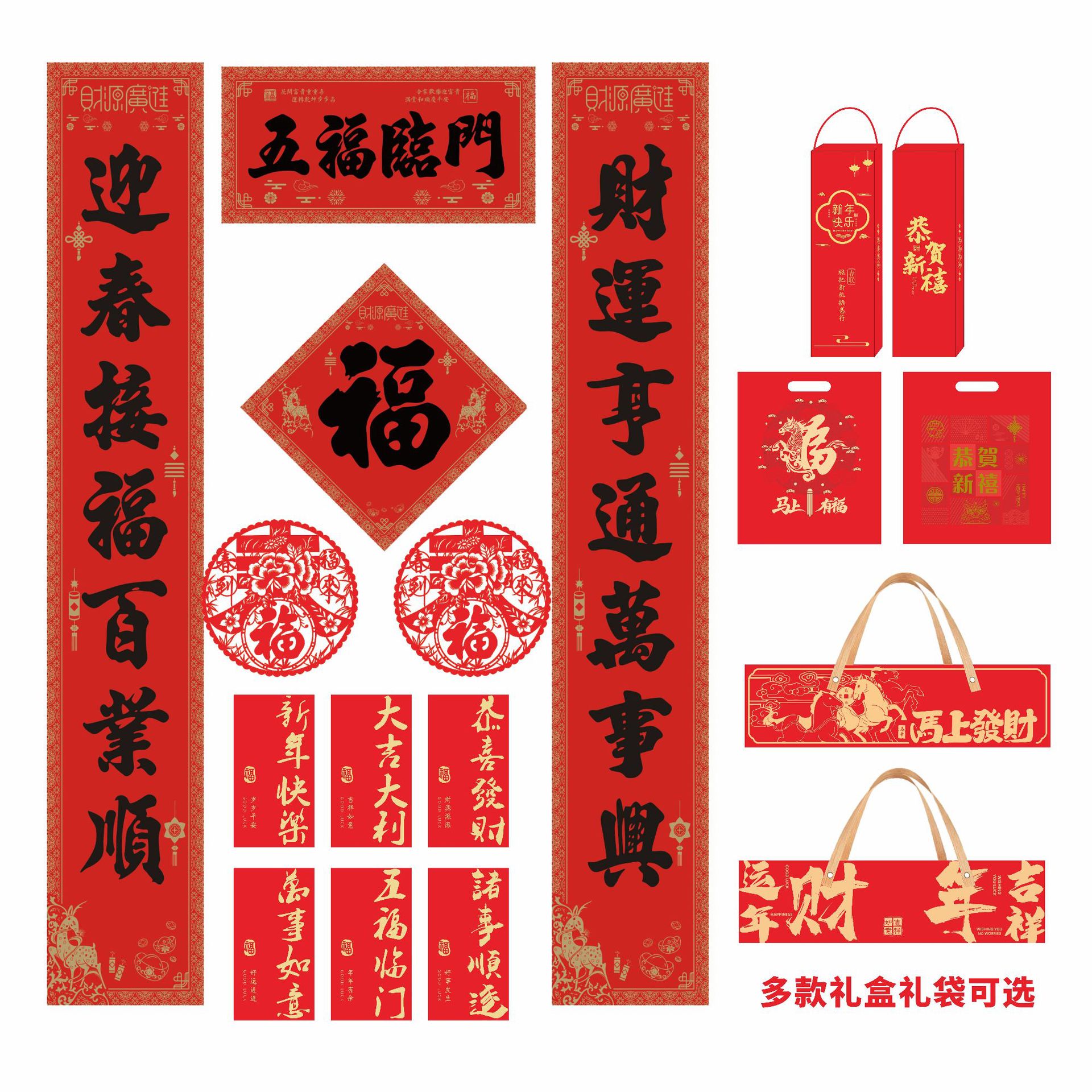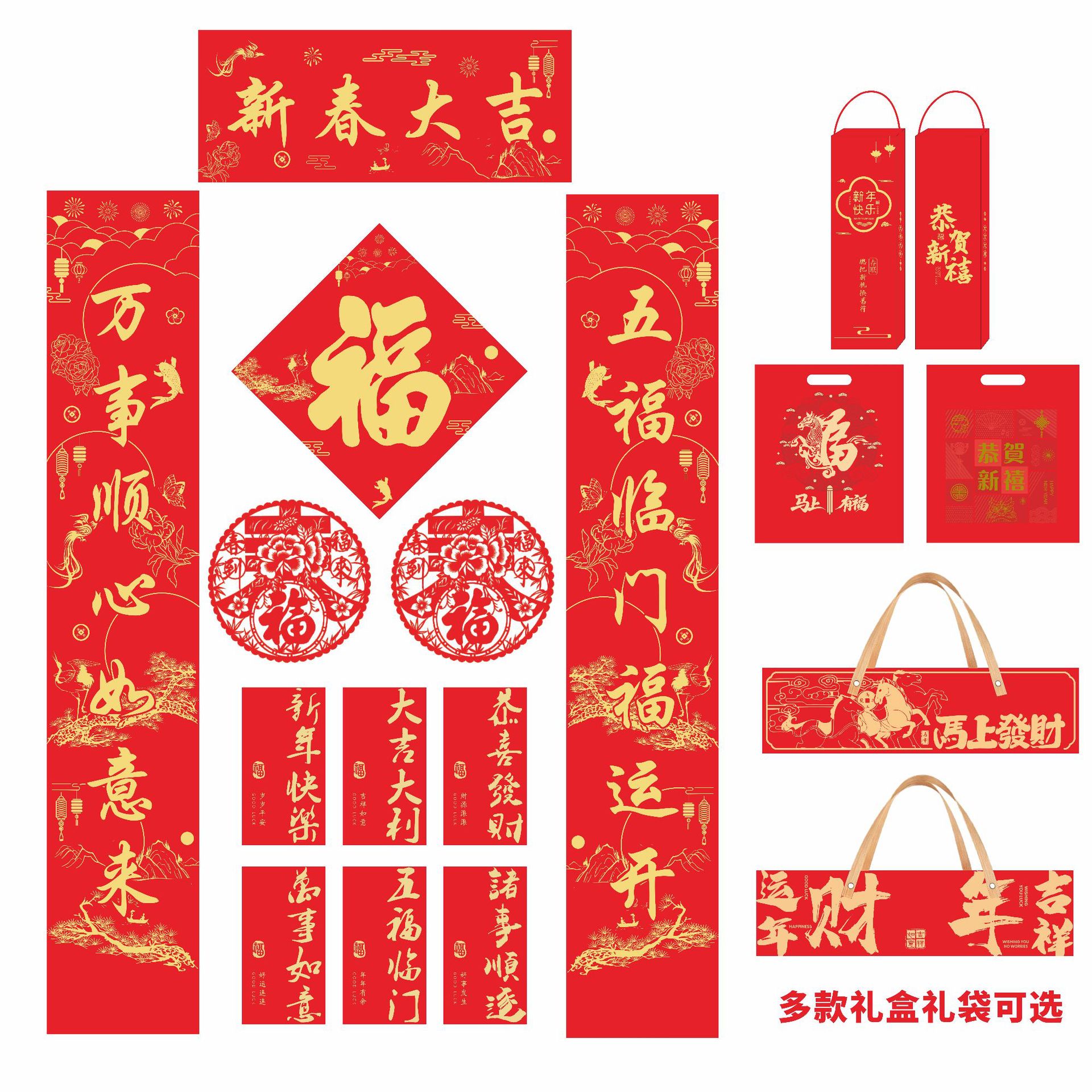 2026 horse year gilding couplet custom flocking silk advertising new year couplet high-end gift box gift bag custom logo couplet