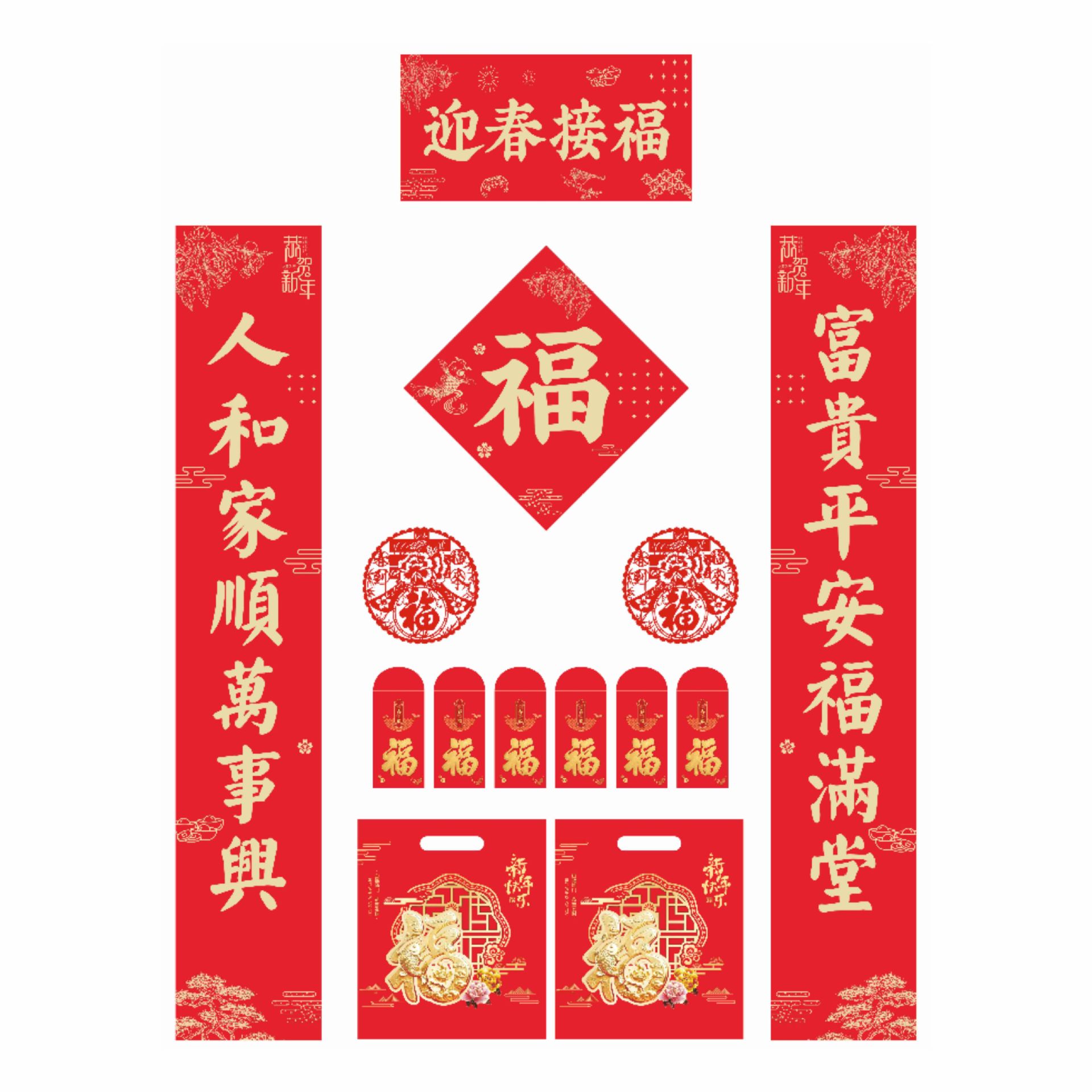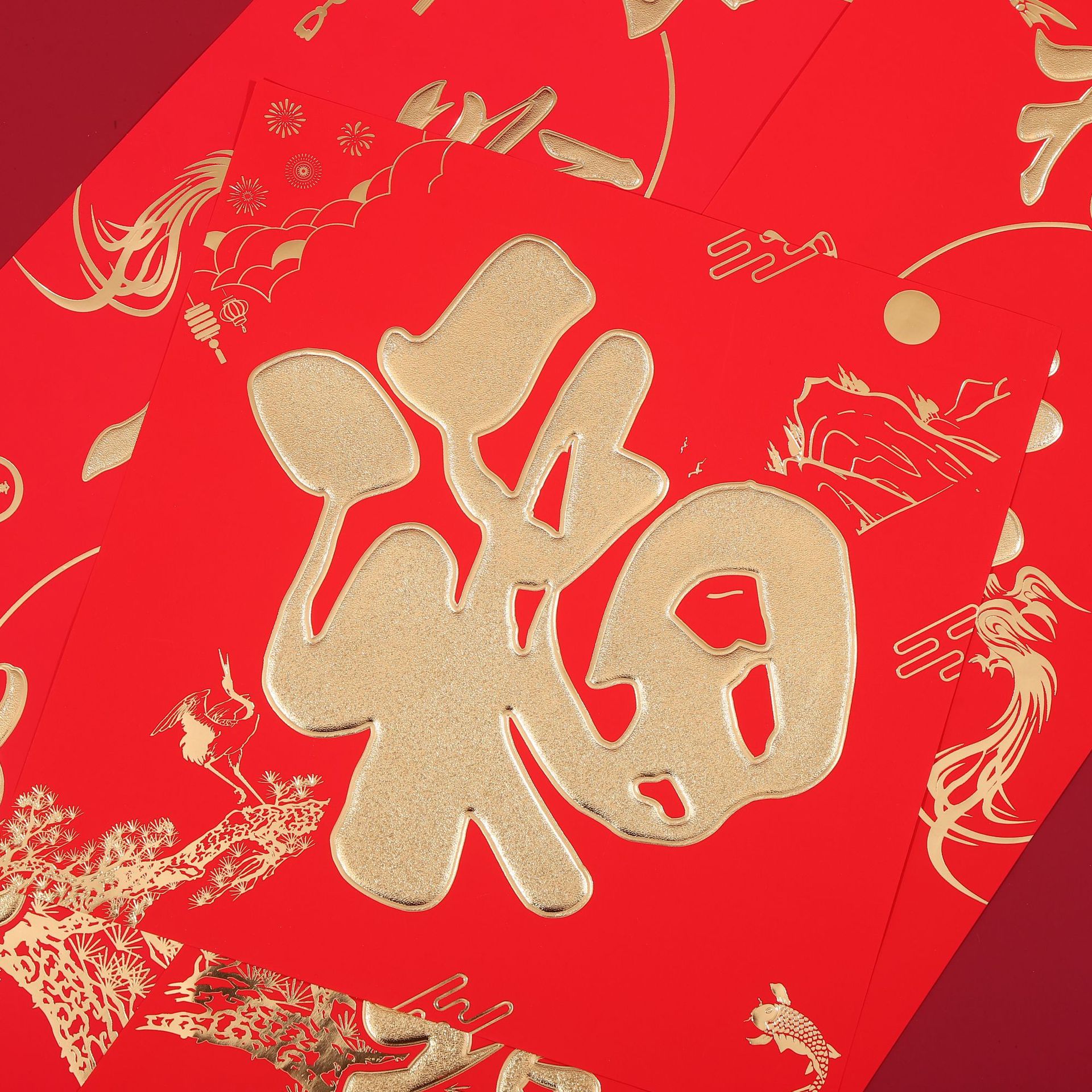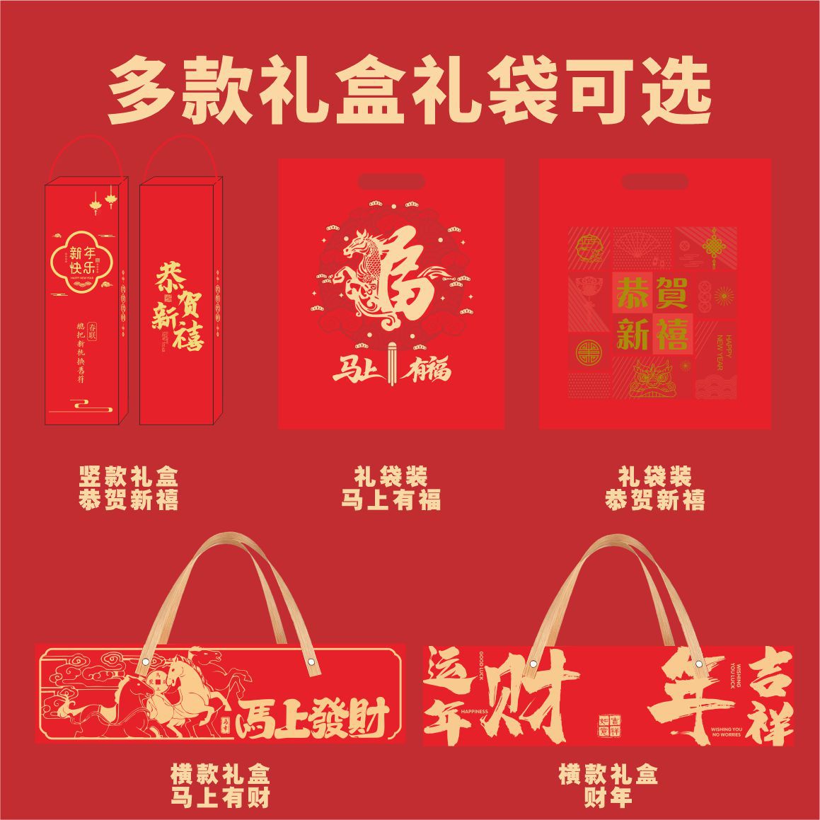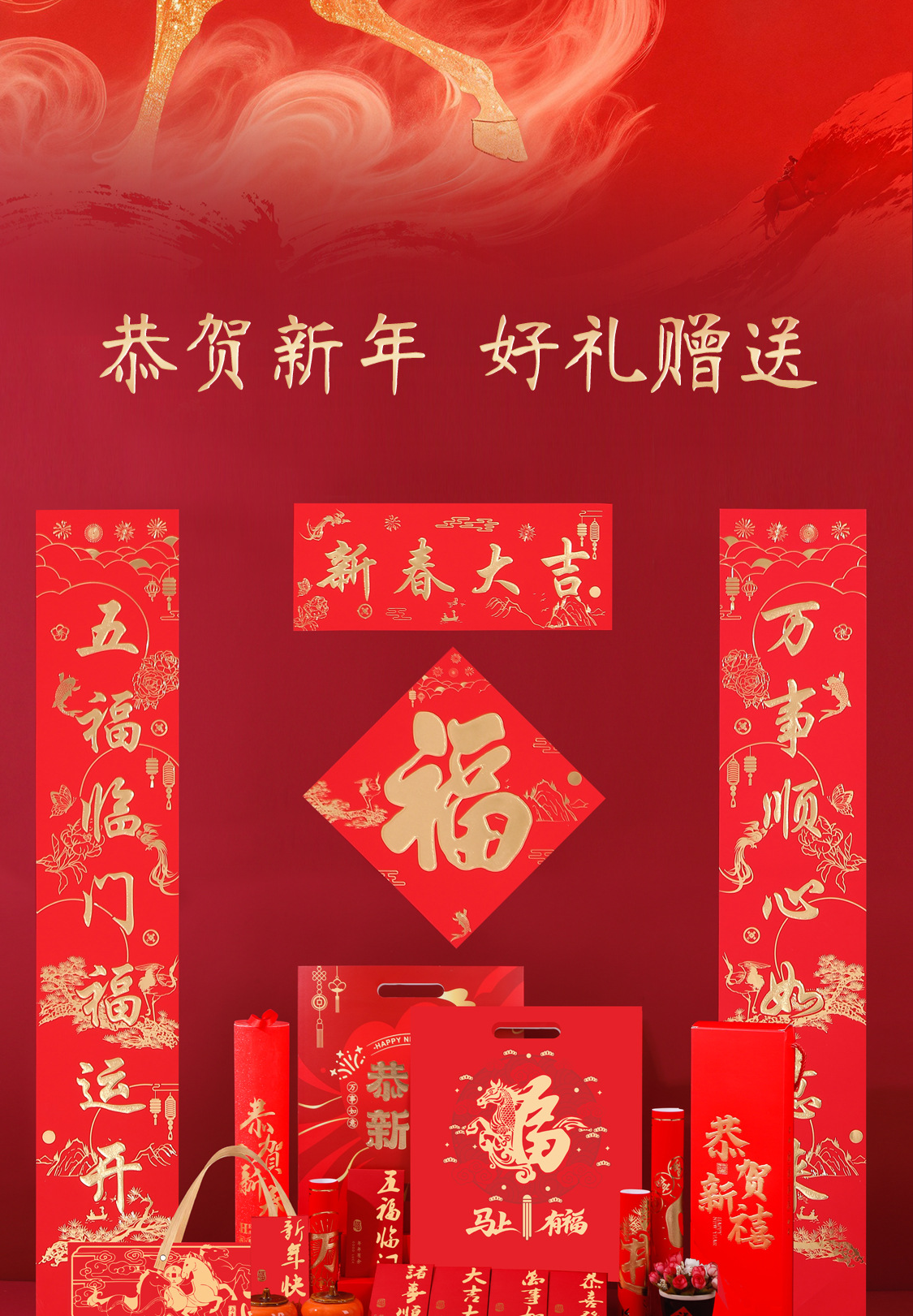 2026 horse year gilding couplet custom flocking silk advertising new year couplet high-end gift box gift bag custom logo couplet