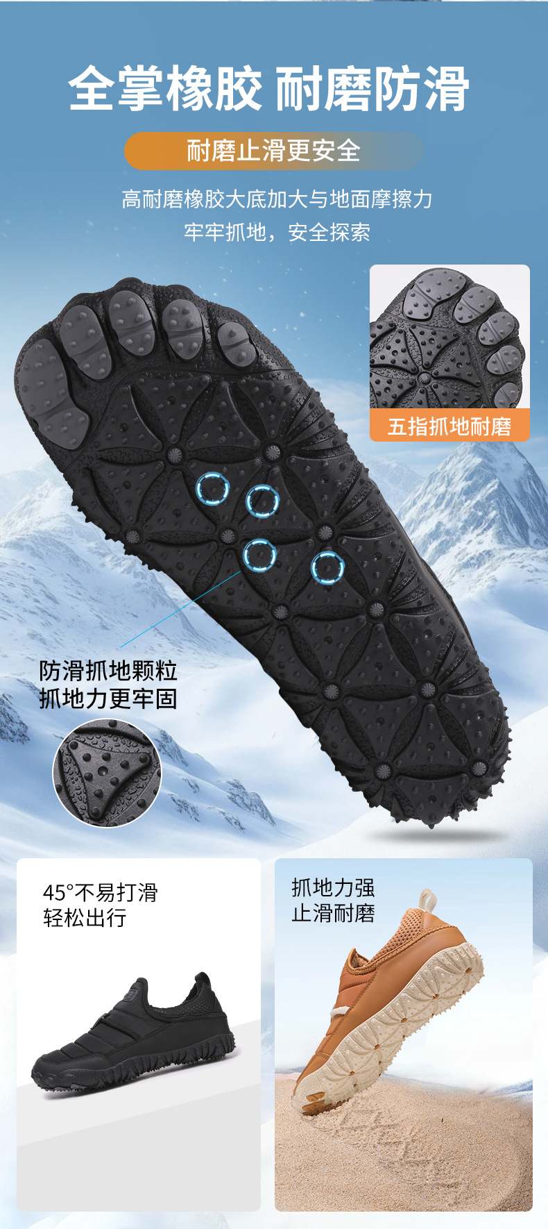 25跨境新款男女五指户外加绒加厚防水防滑耐磨棉鞋户外休闲雪地靴